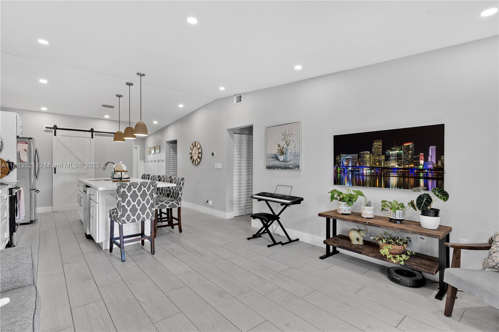 Step into this beautifully remodeled 2 bed-2 bath townhouse at Killian Pines, designed with modern farmhouse charm. The open interior boasts wood-look tile floors, recessed lighting, a stunning kitchen with custom wood cabinetry, Calacatta quartz counters, stainless steel appliances, and tankless water heater (2025). Impact windows & doors, remodeled baths, and a custom walk-in closet elevate the home’s style. A custom barn door opens to an office/laundry space, while the private patio, lined with clusia hedges and bistro lights, is perfect for relaxing or entertaining. Enjoy convenient parking right at your doorstep with plenty of guest spaces. Low HOA: $96/month. No HOA approval—move right in! Walking distance to MDC Kendall, dining, and gyms, plus quick access to highways and shopping.