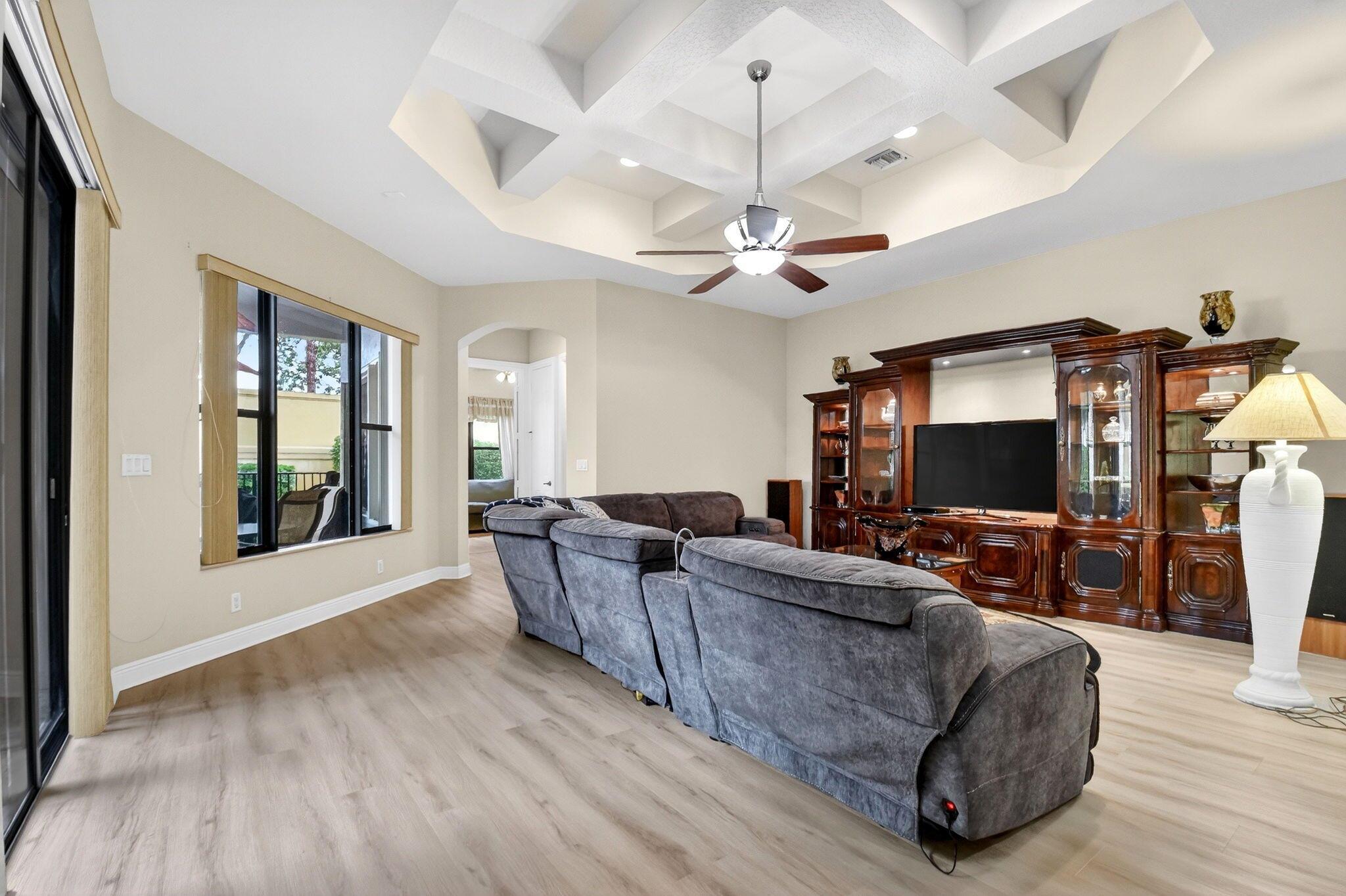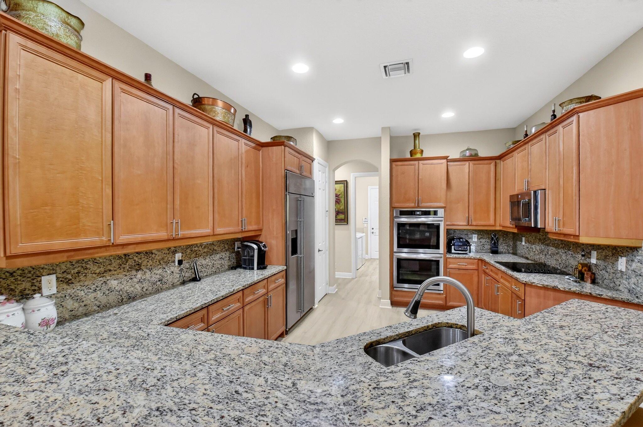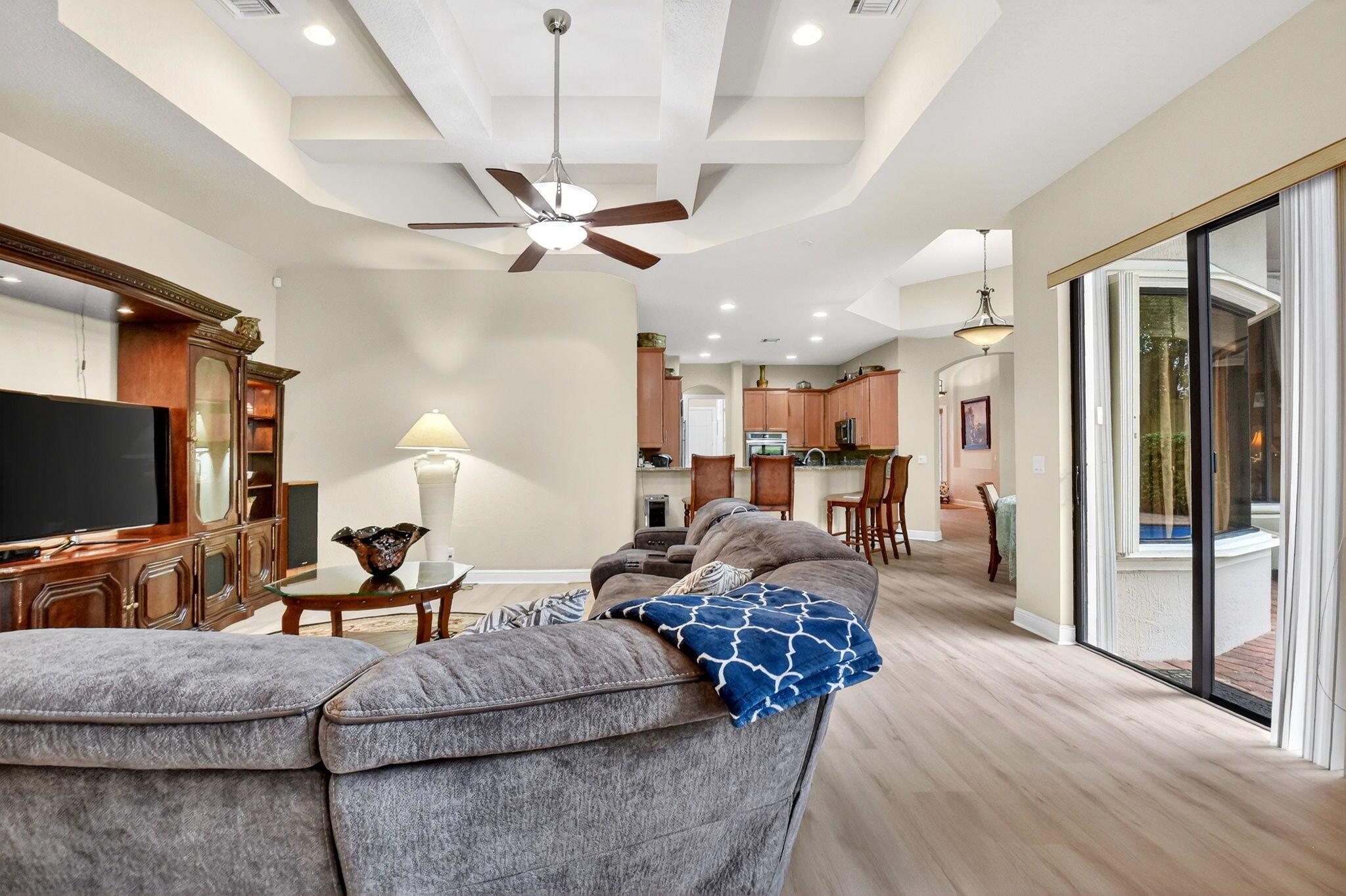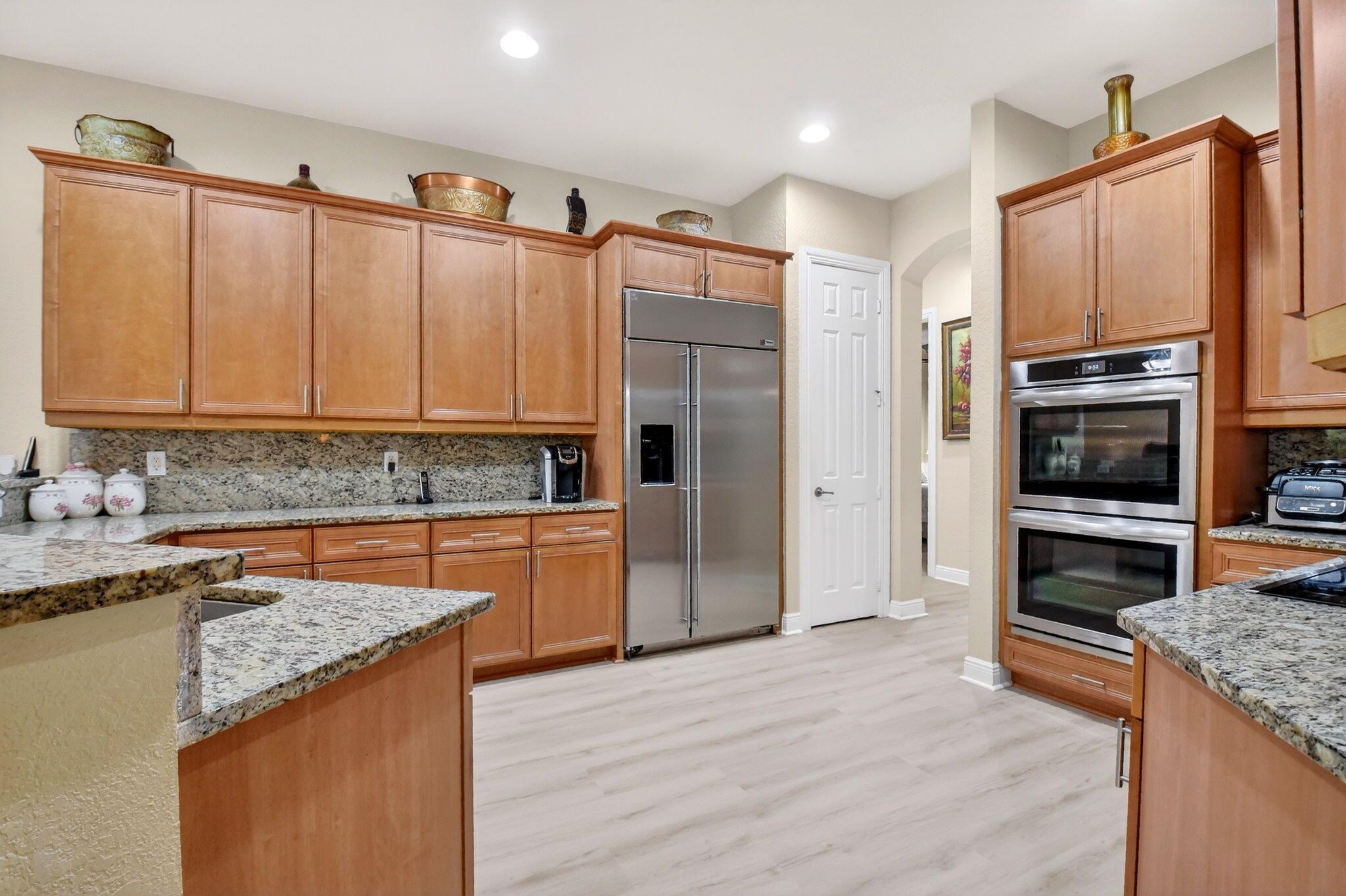 Luxury abounds in this single family pool home, in all-ages, gated Case Bella. A chef's kitchen overlooks the expansive family room. Finished with granite, wood cabinetry, dual wall ovens, a cooktop and a countertop bar. The tall ceilings and abundance of natural light provide a tremendous sense of space.The grand primary bathroom features dual vanities, a separate walk-in shower, a jacuzzi tub and 2 walk-in closets. Retreat to the large back patio with your favorite drink and take a dip in the just resurfaced pool. Many extras include brand new luxury vinyl plank tile throughout, a whole-house generator, natural gas available, accordion shutters, high-hat lighting, coffered ceilings, central vacuum and partially upgraded plumbing.