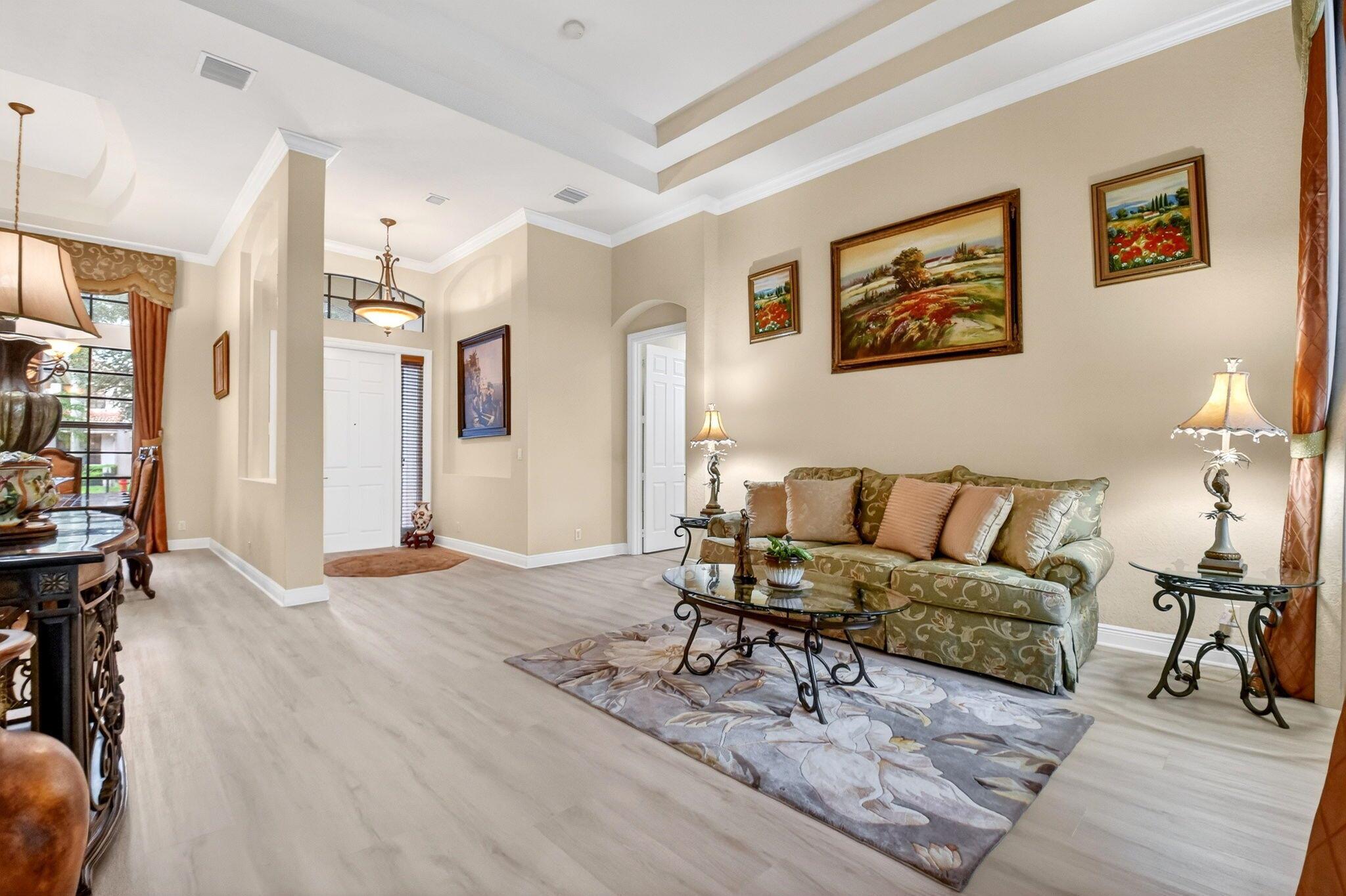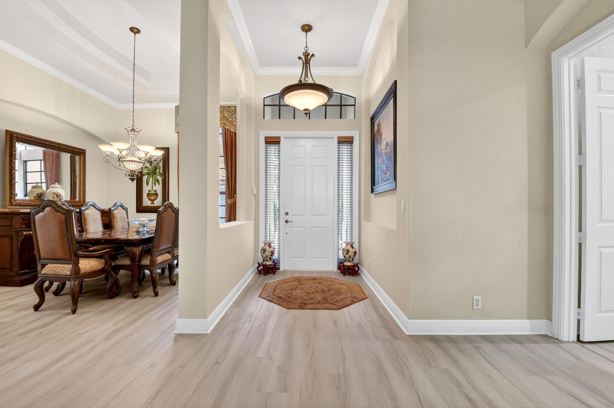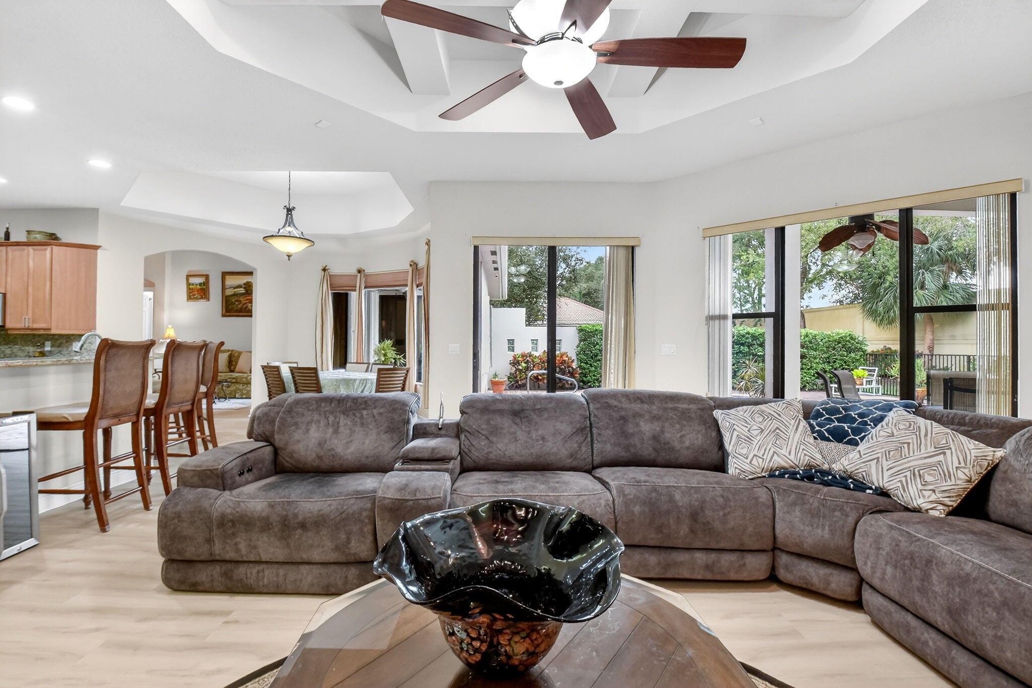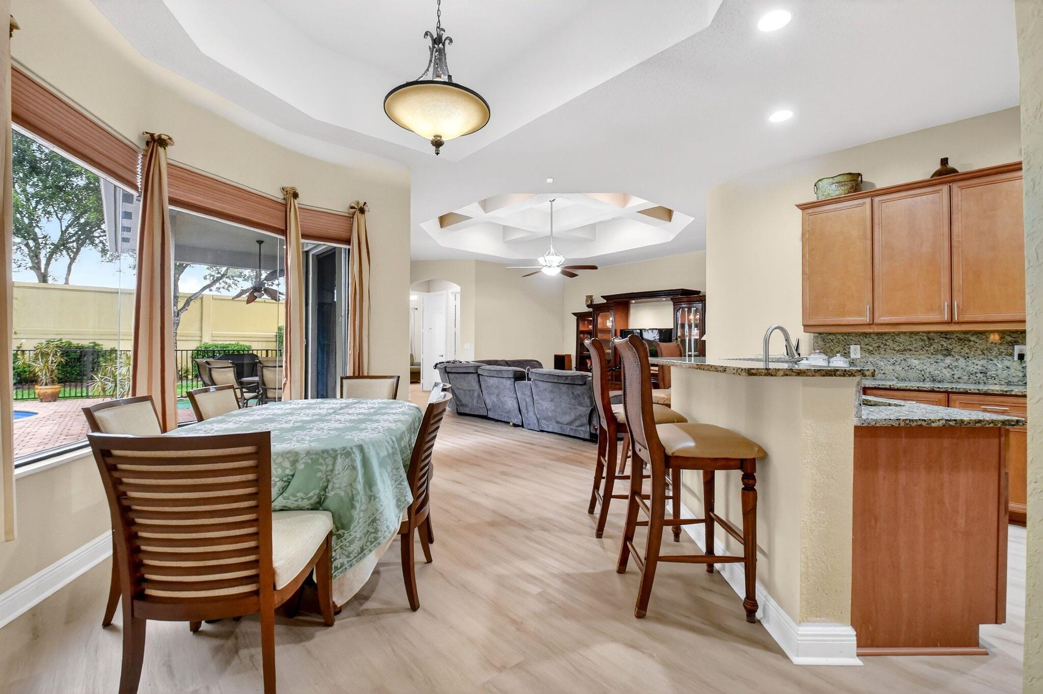 Luxury abounds in this single family pool home, in all-ages, gated Case Bella. A chef's kitchen overlooks the expansive family room. Finished with granite, wood cabinetry, dual wall ovens, a cooktop and a countertop bar. The tall ceilings and abundance of natural light provide a tremendous sense of space.The grand primary bathroom features dual vanities, a separate walk-in shower, a jacuzzi tub and 2 walk-in closets. Retreat to the large back patio with your favorite drink and take a dip in the just resurfaced pool. Many extras include brand new luxury vinyl plank tile throughout, a whole-house generator, natural gas available, accordion shutters, high-hat lighting, coffered ceilings, central vacuum and partially upgraded plumbing.