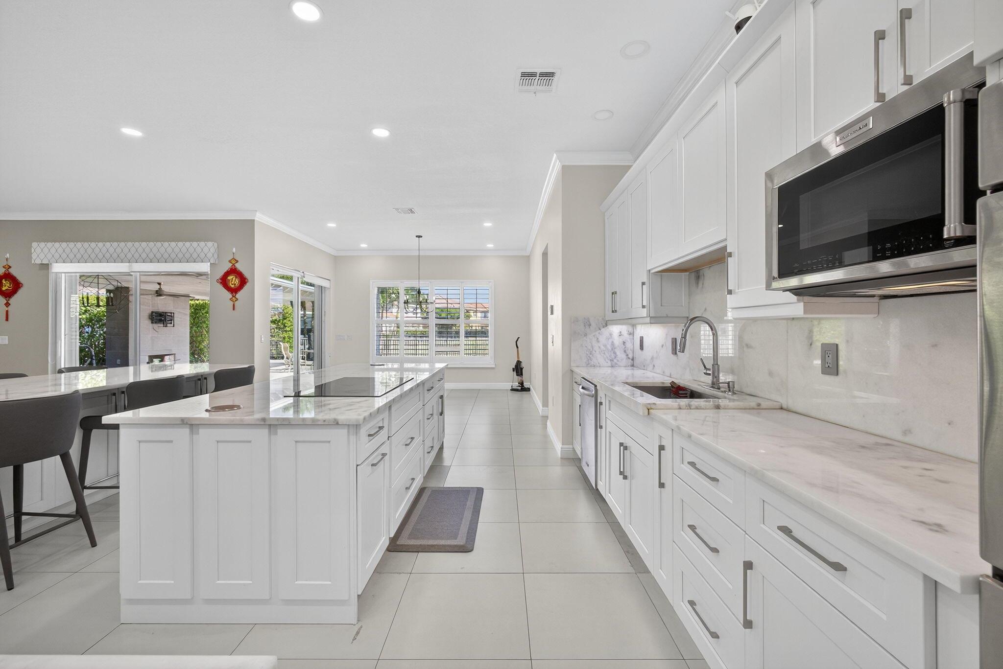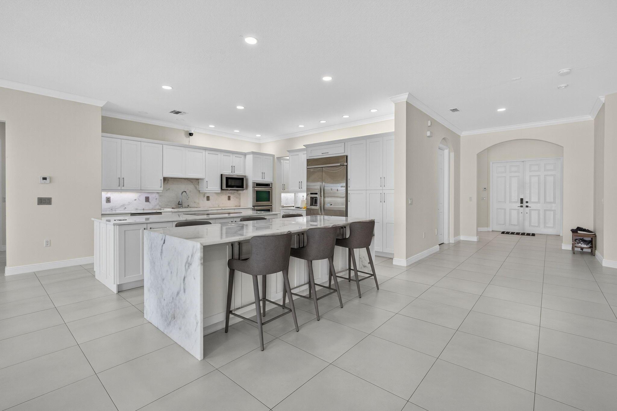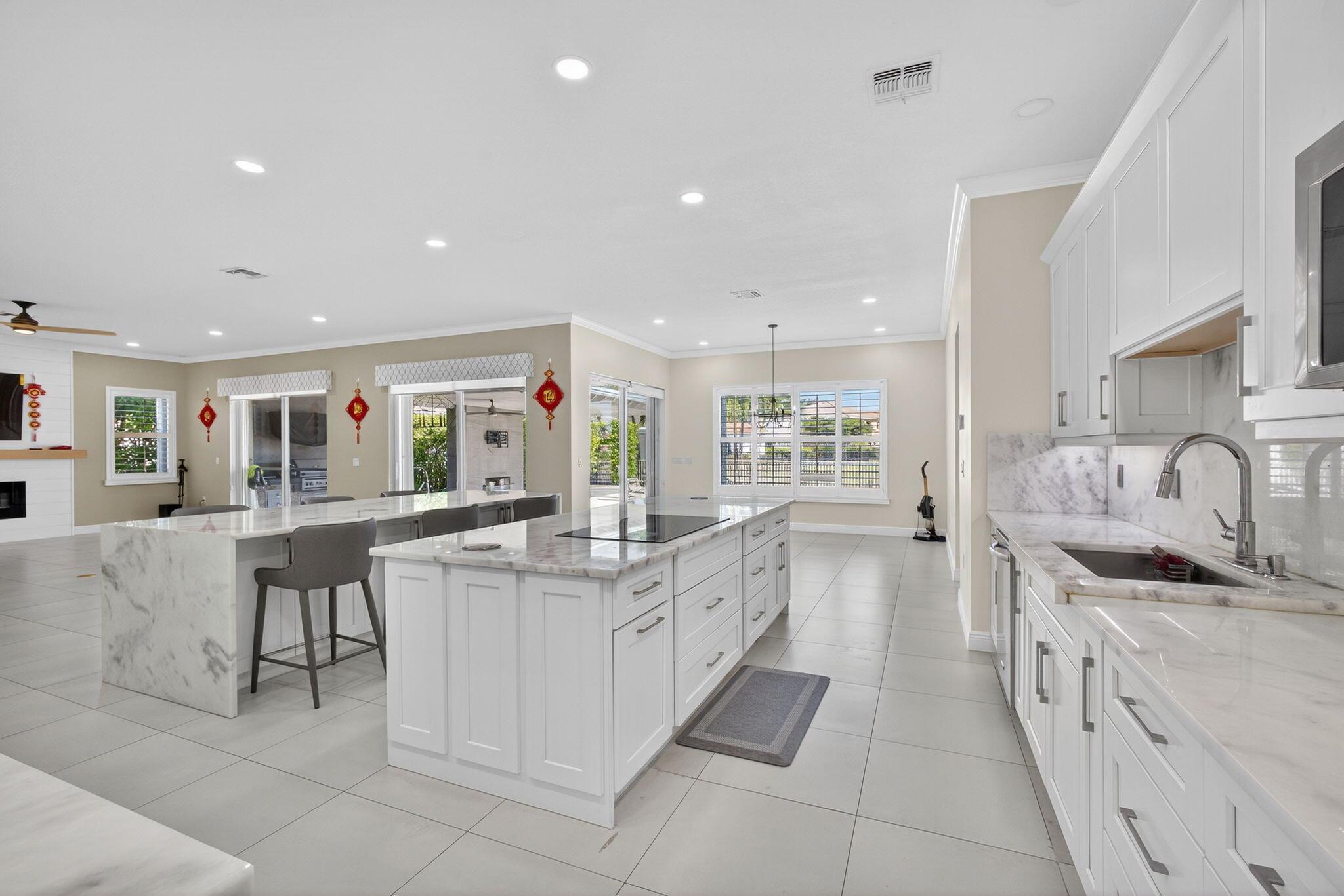 Stunning and spacious 5-bedroom, 5.5-bath estate pool home with bonus room & office and 2-car garage, located on a premium 0.28-acre lakefront lot in the highly sought-after resort community of Olympia. Step inside to a beautifully renovated interior where soaring ceilings, sunlit spaces, and custom details create a warm yet refined ambiance. The gourmet chef's kitchen boasts dual islands, custom cabinetry, double ovens, a built-in pantry, and top-of-the-line appliances. The outdoor living space is a true sanctuary. Overlooking serene lake views, the expansive loggia is complete with a summer kitchen and fireplace, setting the stage for effortless indoor-outdoor living. The heated saltwater pool with sun shelf and infinity-edge spa offers a resort-style escape in your own backyard.