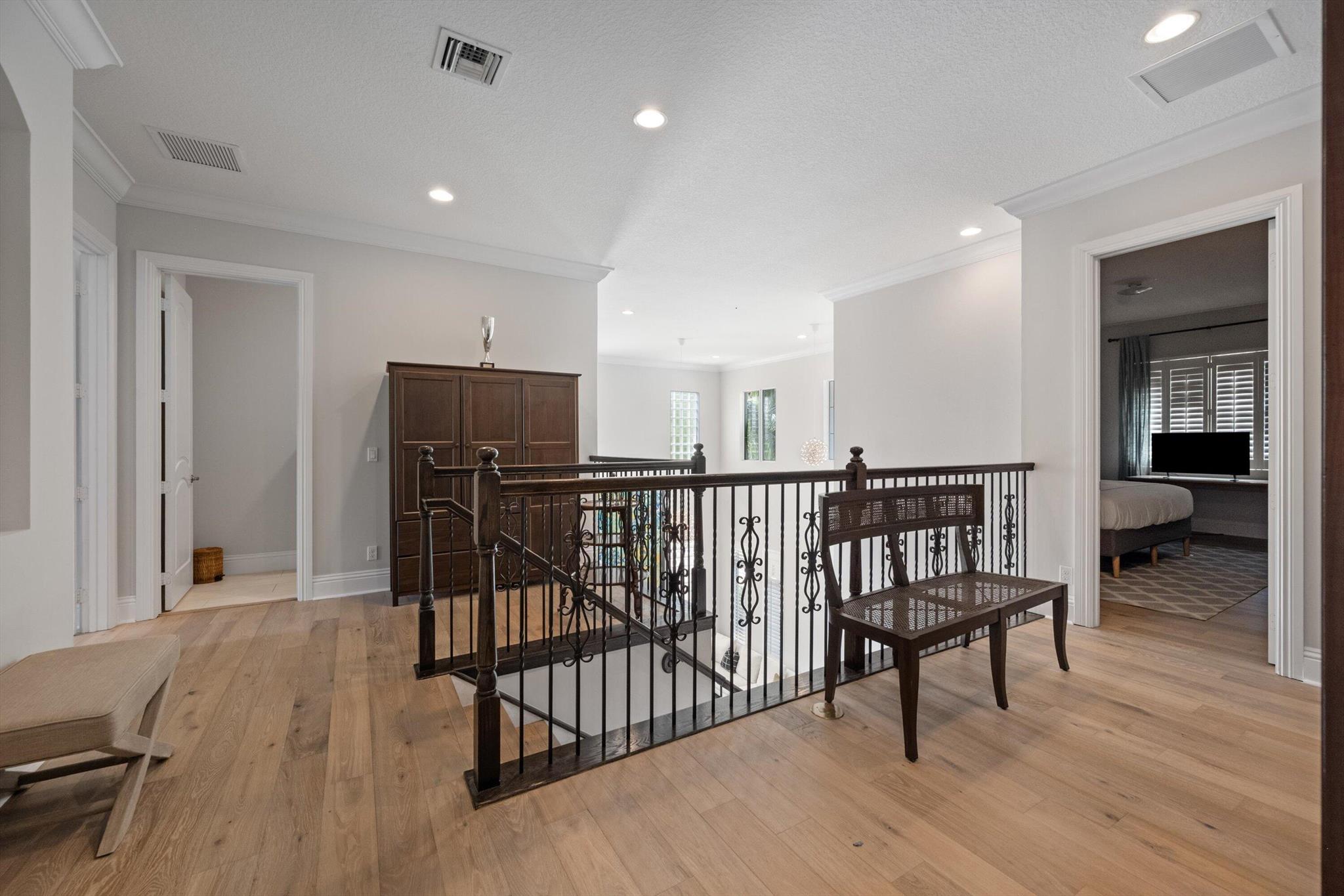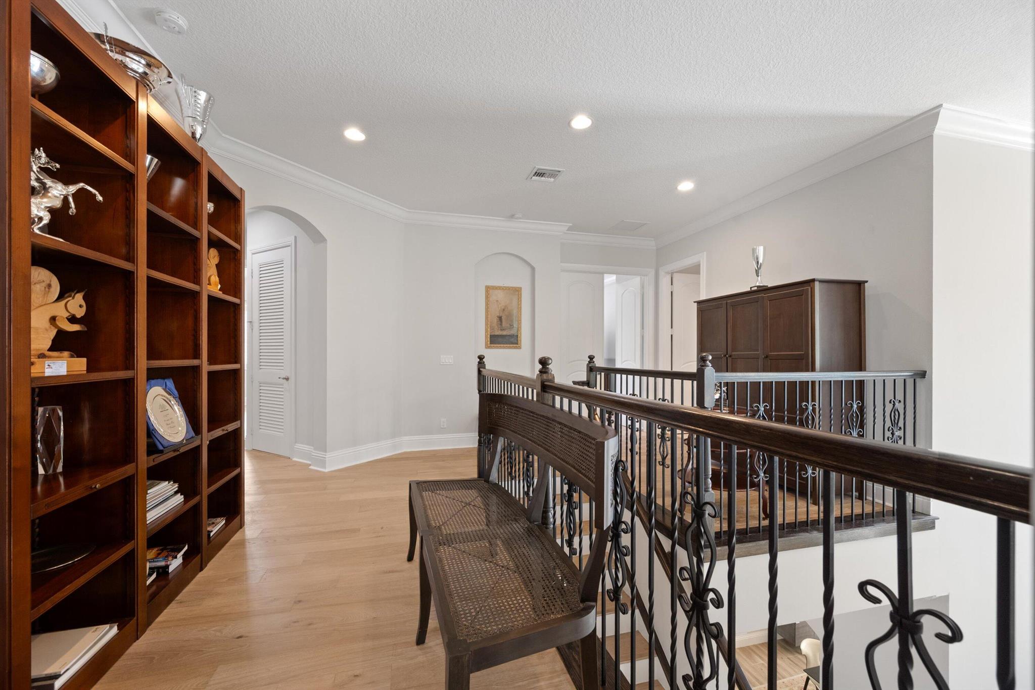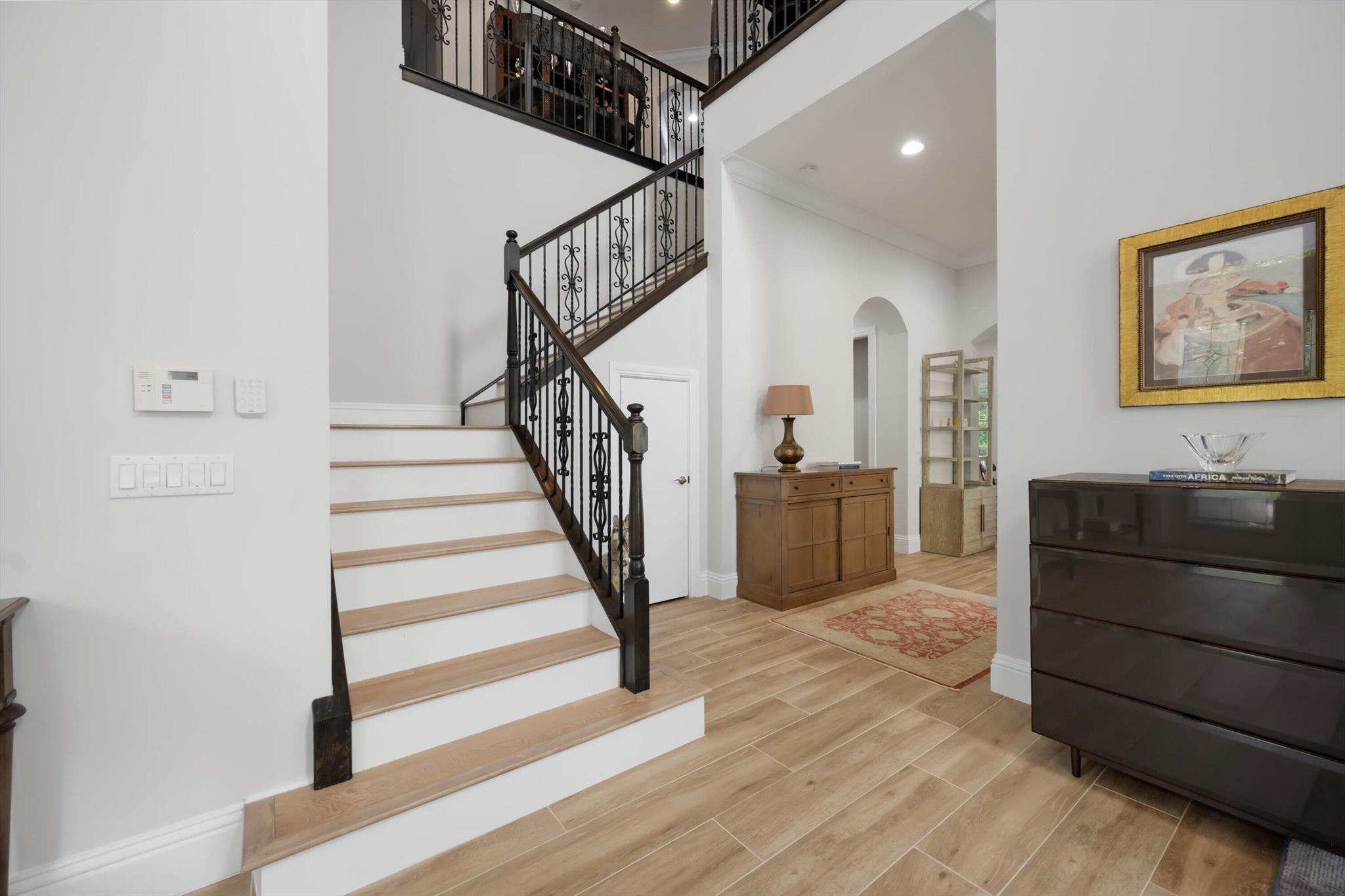 This stunning home is located in the coveted neighborhood of Hunter's Chase within the Palm Beach Polo Club. Featuring a total of 4,300 square feet under air, this waterfront property offers 6 bedrooms, 4 full and 1 half baths, a 3-car garage, and boasts lake and golf course views! Curated with designer touches throughout the two stories, the interior boasts vaulted ceilings, stunning dark wood floors, an eat-in kitchen with a wet bar plus a formal dining room, family room, and a luxurious master suite with its own private patio. Step outside to enjoy the spacious enclosed patio, featuring a summer kitchen plus a stacking glass door system for instant outdoor living. The perfectly manicured backyard is equipped with a large Travertine tile deck, freeform pool, and expansive fenced yard.