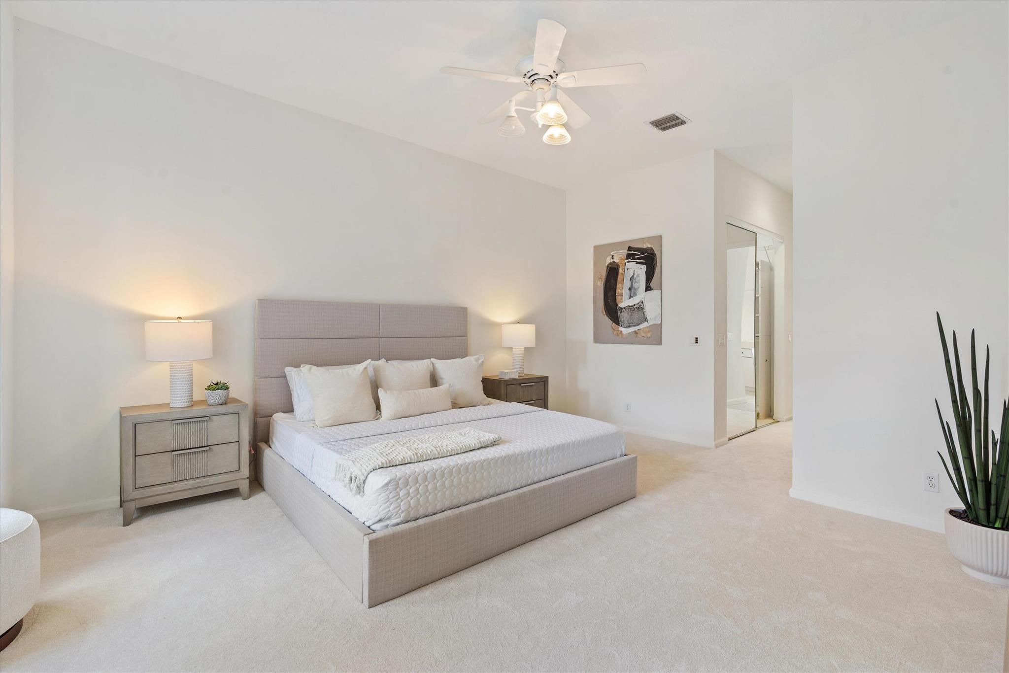 Roof Replaced in 2021! This beautifully maintained Heritage model in Cascades, offers over 2,400 sq ft of living space and it is a true 3-bedroom, 3-bath layout. This home has been freshly painted inside with new flooring in the 2nd bedroom and Primary. The spacious floor plan begins with a double-door entry opening to bright living and dining areas with plenty of room for entertaining. The kitchen is a standout, designed with 42'' cabinetry for added height and style, granite countertops, stainless steel appliances, and three large pantry and storage areas with pull-out drawers for maximum organization and convenience. A breakfast nook adds an inviting spot for casual dining, while the open design flows naturally into the main living areas.