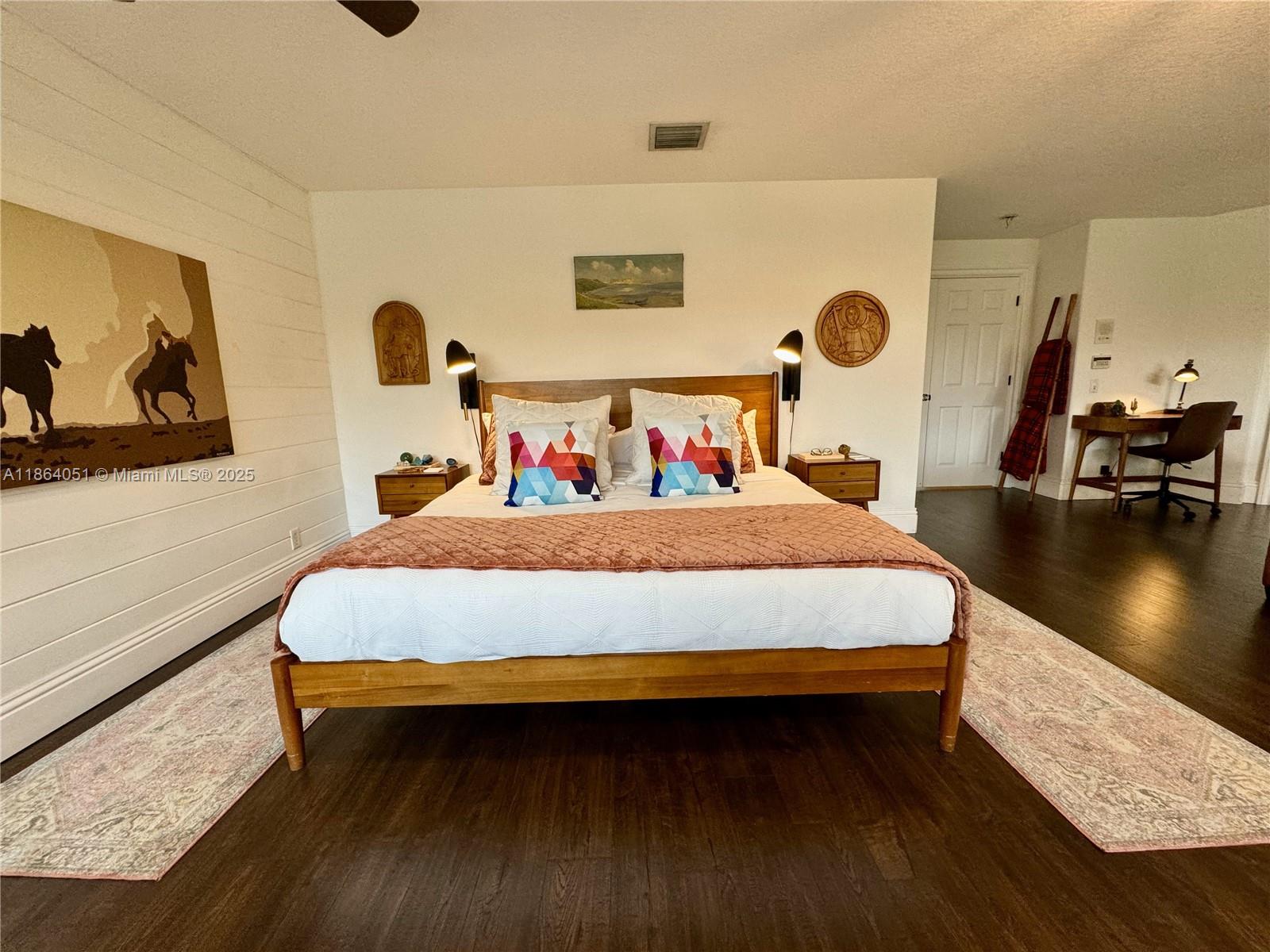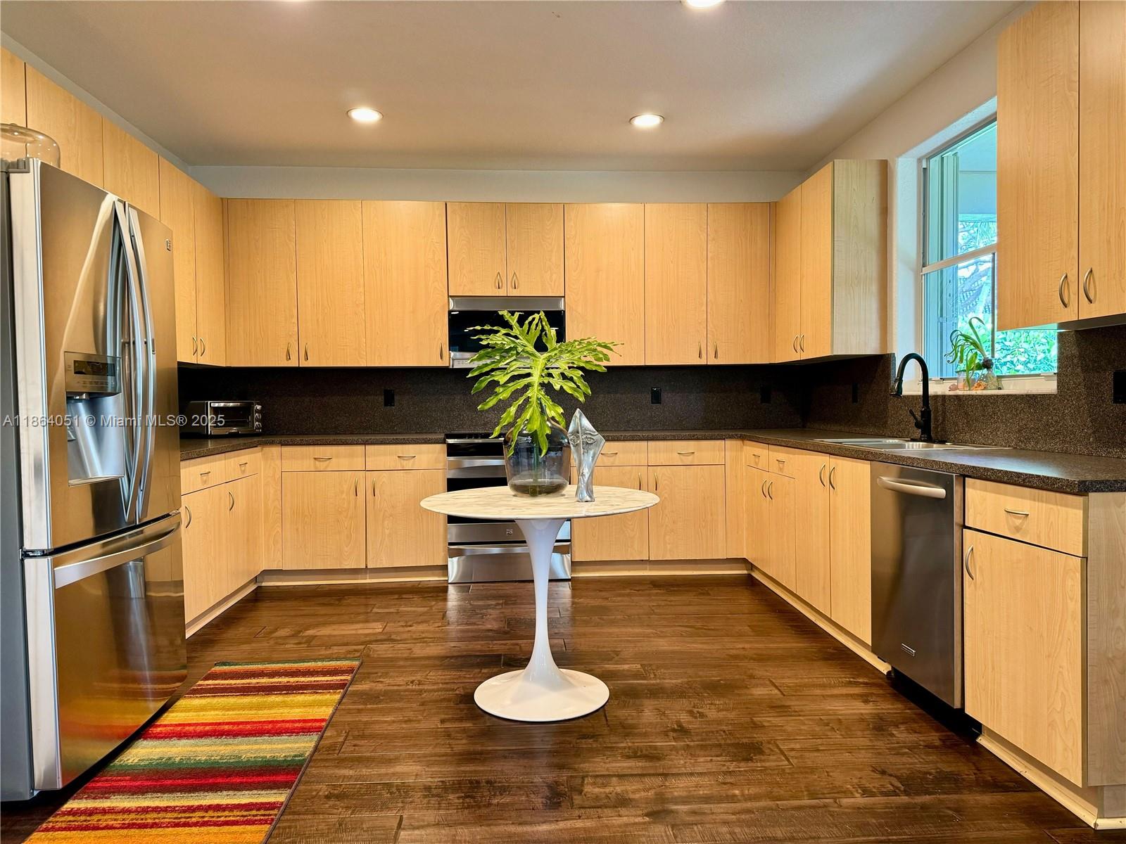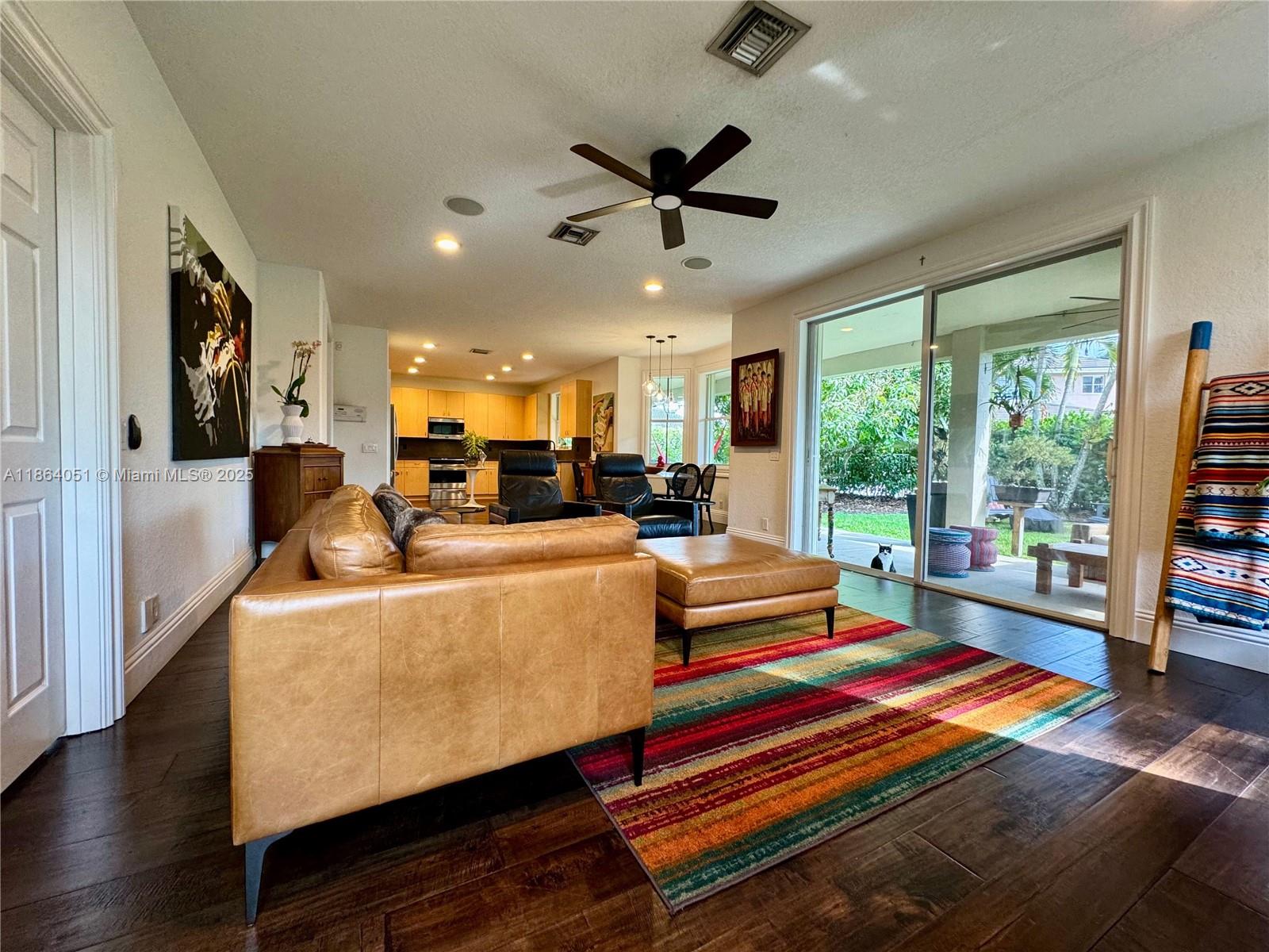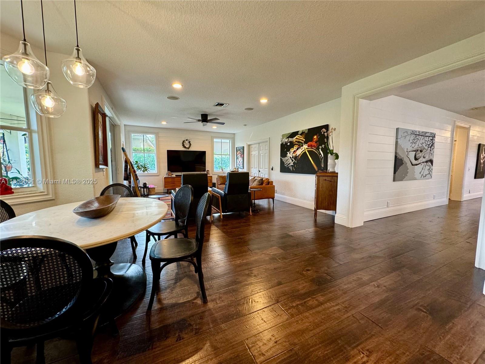 Stunning, Renovated 6-Bed/4-Bath Home with Designer Finishes! This elegant residence showcases rich dark wood engineered flooring throughout and custom trim work on all windows and doors. Enter into a dramatic double-height living room, flowing into a formal dining area perfect for entertaining. The expansive kitchen is a chef’s dream, seamlessly connected to a spacious TV room and second formal dining space. Step outside to a backyard oasis featuring a beautifully extended covered sitting area — ideal for outdoor gatherings. Upstairs, you’ll find four generously sized bedrooms plus a luxurious oversized primary suite with abundant closet space and a dedicated storage room. Additional highlights include brand-new A/C units, premium updates throughout.