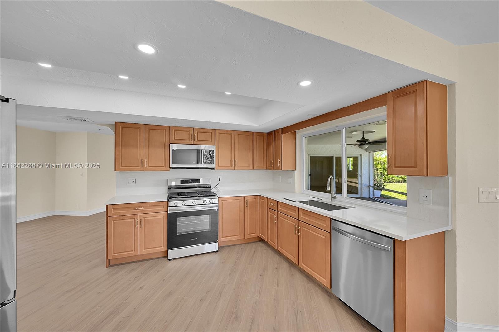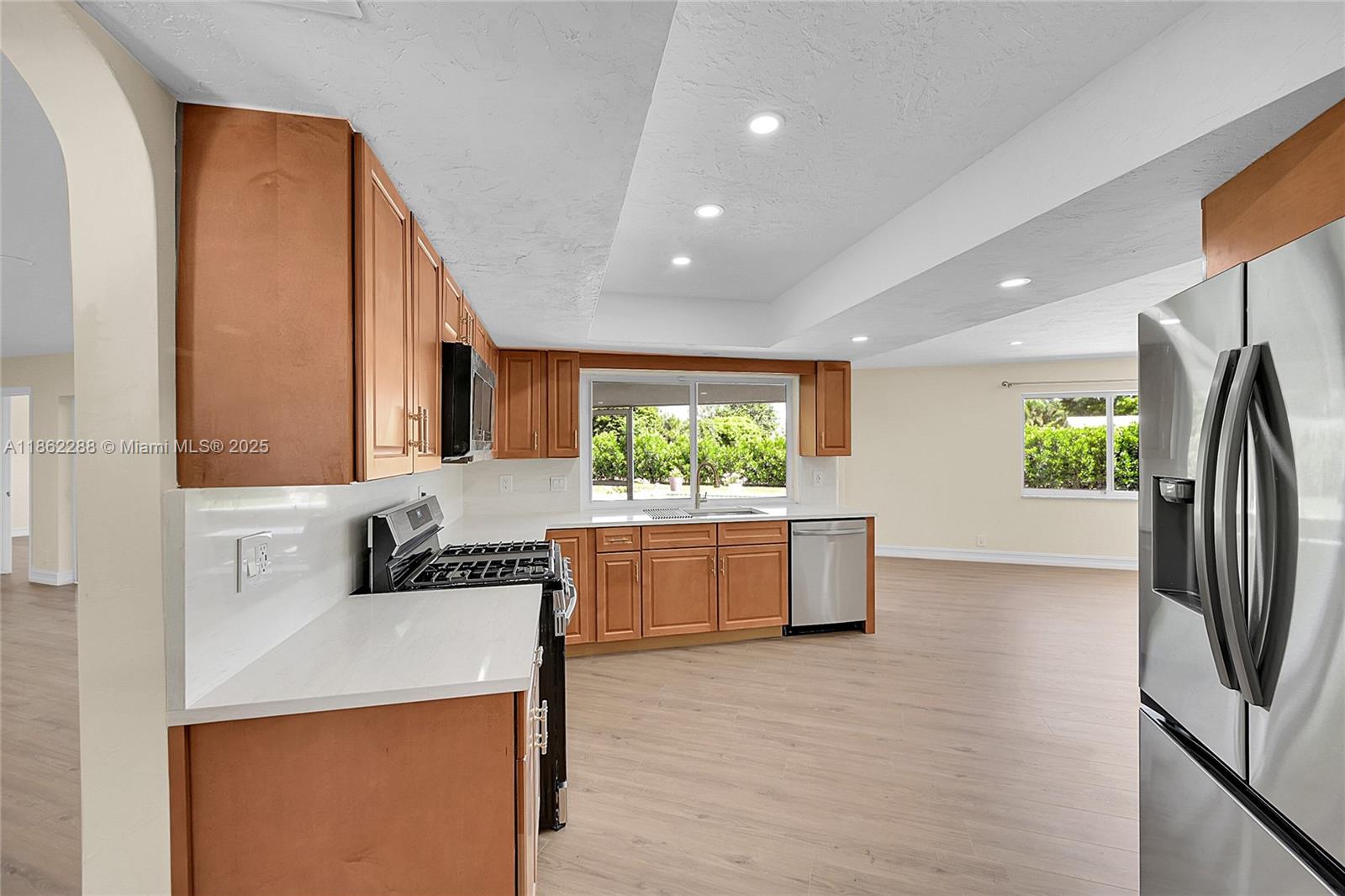 Move-in ready and freshly updated, this 4-bedroom, 3-bath Spanish/Mediterranean style home offers elegance, privacy, and resort-style living. Features include a brand-new, fully remodeled kitchen with brand new appliances opening to the family room, bar, and 25’ screened porch; huge living room for entertaining; and a private Mother-In-Law suite with separate entrance and kitchenette. Enjoy a large pool with mosaic detail, expansive fenced private yard with new professional landscaping, and quiet canal views with no rear neighbors. Additional upgrades include impact glass throughout, new plumbing, wide driveway, and spacious garage with built in storage. Located in the secure, highly desirable City of Atlantis, with no HOA, this home is a rare find blending charm, comfort, and convenience.