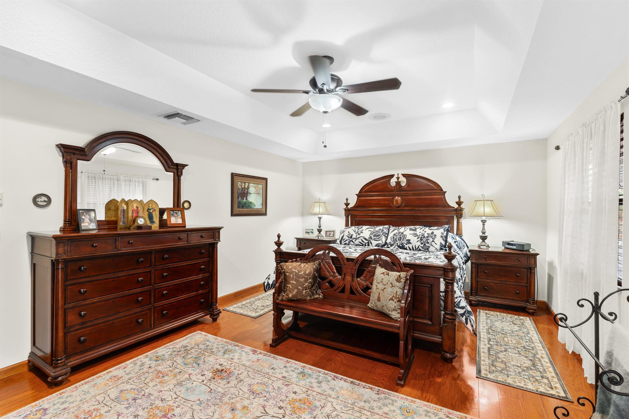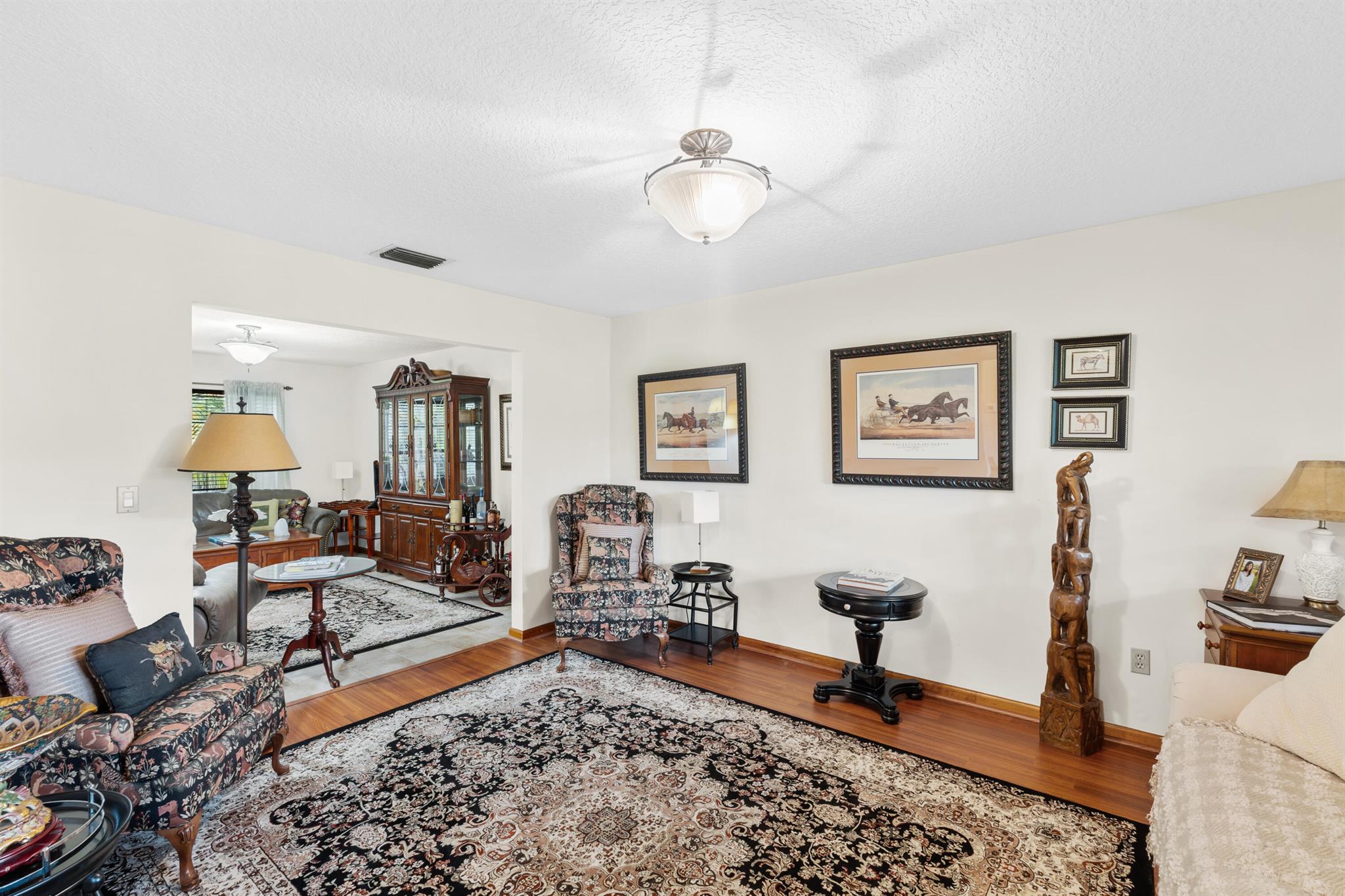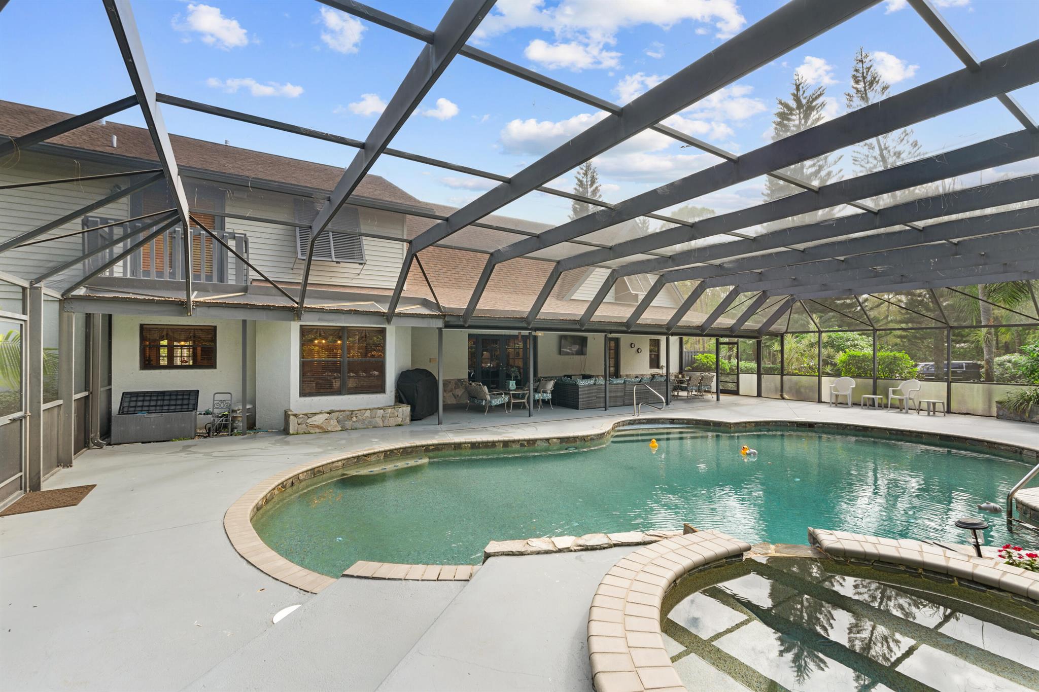 Experience refined equestrian living on 5+ acres in the exclusive, gated community of Homeland. This spacious Northern-style Colonial offers 5 bedrooms, multiple living and dining spaces, and a family room with a stately gas fireplace. The gourmet kitchen features wood cabinetry, paneled & stainless appliances, a copper farmhouse sink, and gas cooktop. Enjoy upgraded air quality with 3 REME HALO(r) systems and UV lights throughout. Equine facilities include a 3-stall concrete block barn with tack room, 4 irrigated paddocks, and 3 wells. A whole-house generator provides peace of mind. Outdoor living shines with a screened self-cleaning pool, spa, and expansive deck. Wake up each day to horses grazing just beyond your porch.
