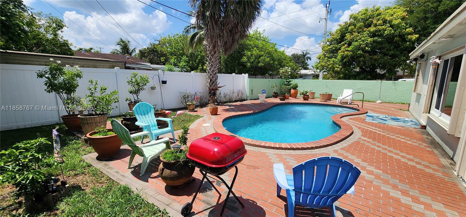 Cozy corner 3/2 with refinished inground pool nested in the well-established and thriving neighborhood of Driftwood. This home is larger than most Driftwood Bungalows with nearly 1600 sq. ft. It has been well maintained with updated tile floors, kitchen, hurricane impact windows/doors, security, privacy fence & a mango fruit tree. Its proximity to a host of shopping makes everything very convenient. You can see the Hard Rock Casino’s Guitar Shaped hotel and its beaming light from your home from 1.5 miles away. Also, you are 20 min to Hollywood Beach. Great space with a great pool!