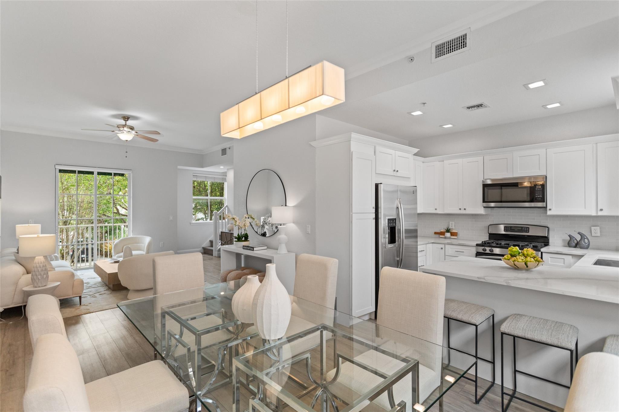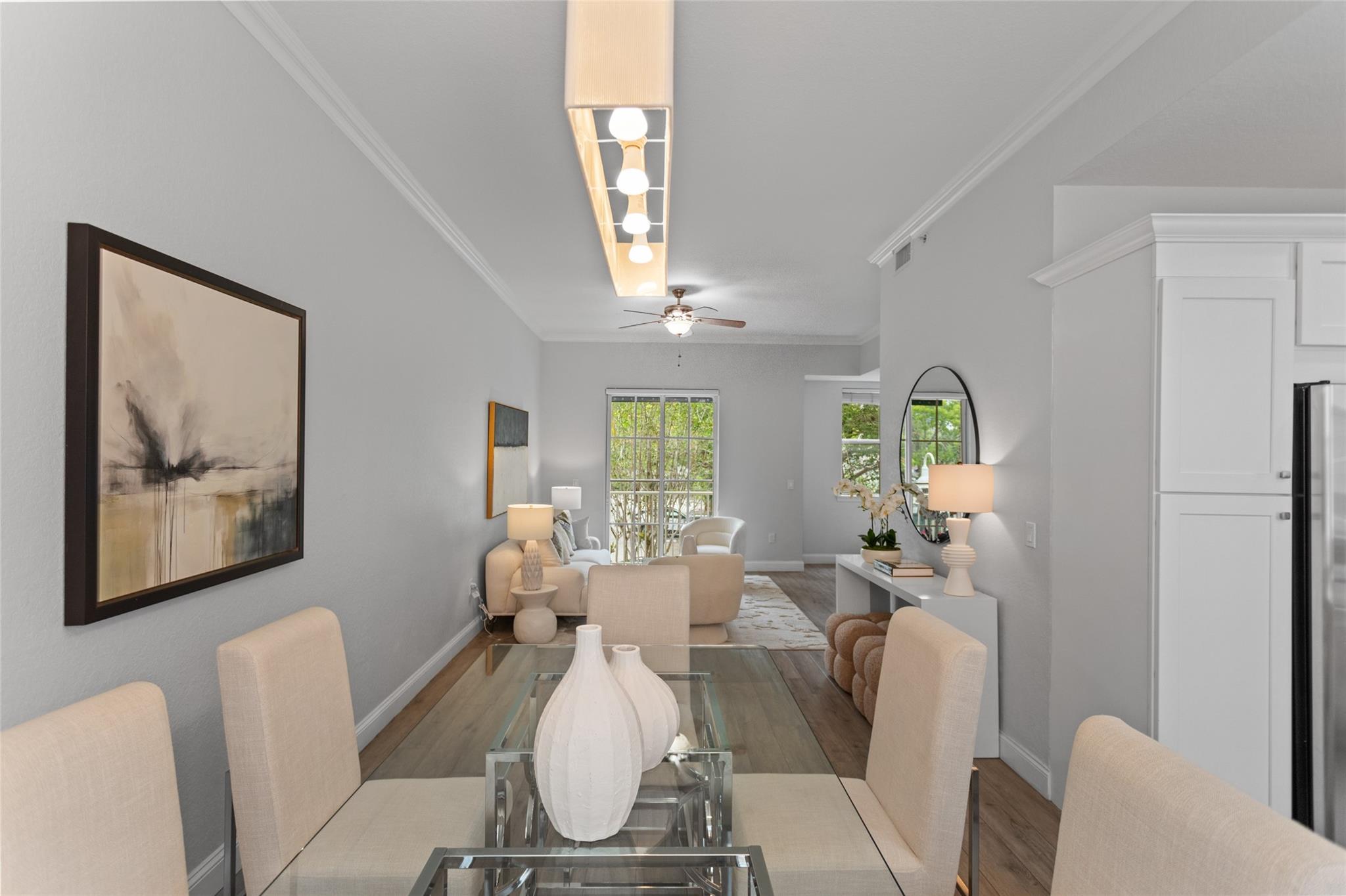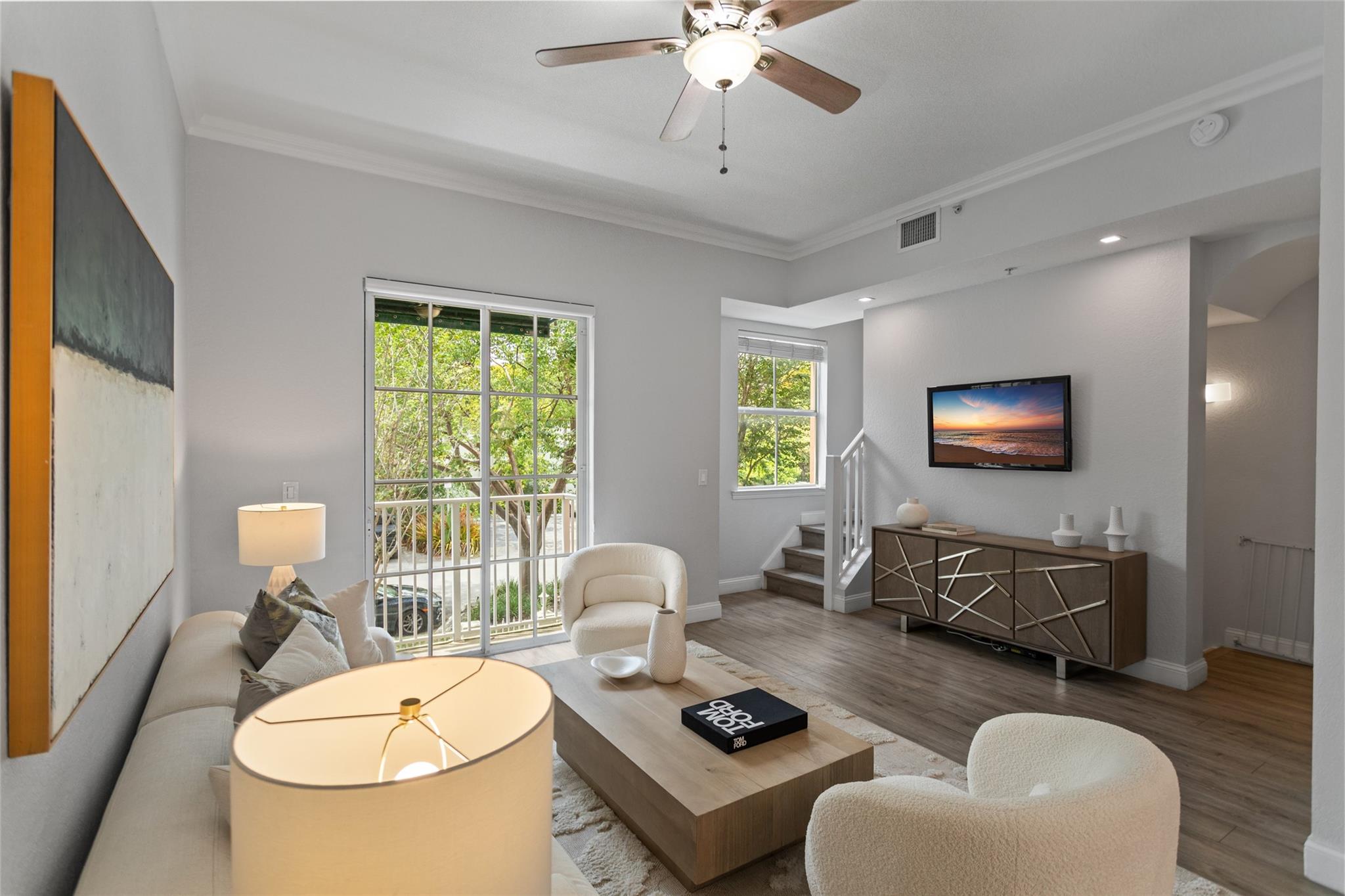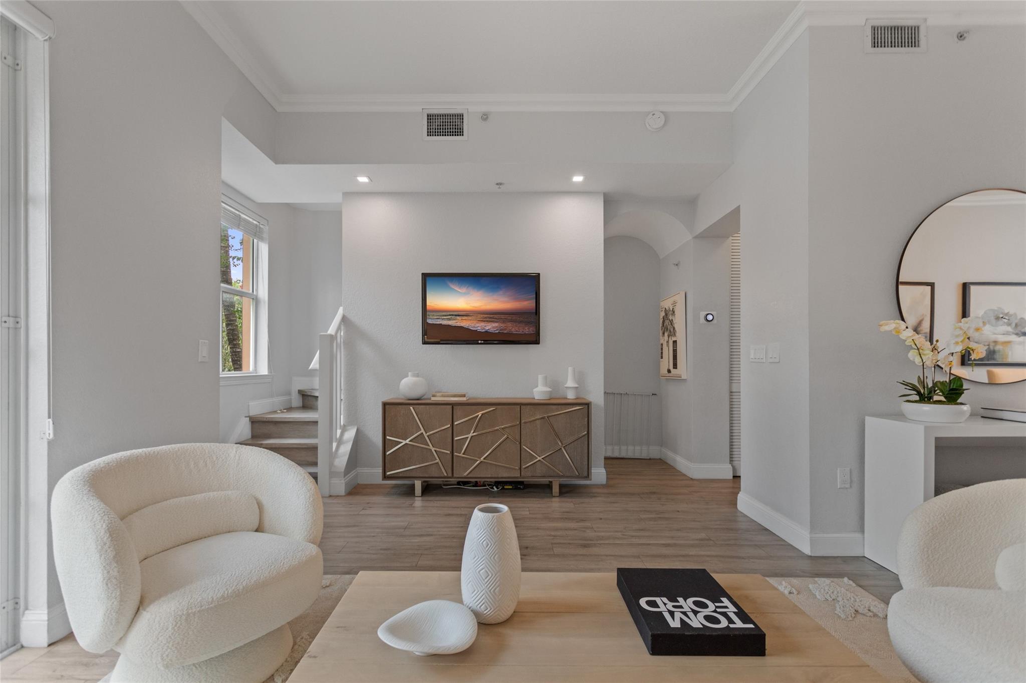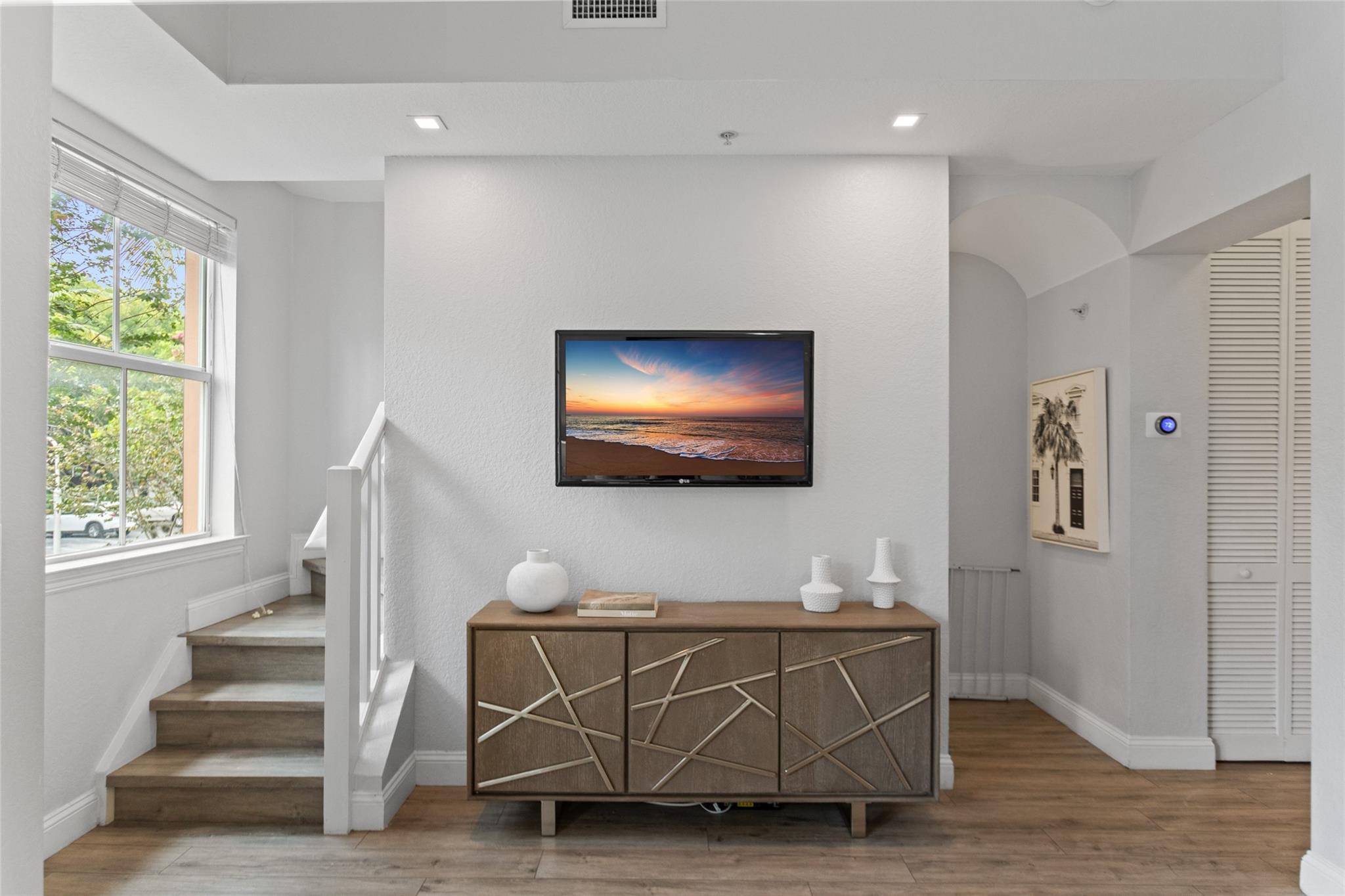 THIS IS CURRENTLY THE LEAST EXPENSIVE TOWNHOME IN VICTORIA PARK! Impeccably maintained 3-level townhome offering 3 bedrooms, 3.5 bathrooms, and an attached 2-car garage. Features include a 2018 A/C, gas tankless water heater, FULL IMPACT WINDOWS AND DOORS and new laminate flooring throughout. The modern kitchen boasts quartz countertops with waterfall design, a gas stovetop, updated cabinetry, and a custom buffet serving area—ideal for entertaining. Additional highlights include a new washer and gas dryer, custom closet organizers and a private front courtyard with low-maintenance turf grass. The community pool is a quick 30 second walk. Quarterly HOA fees include roof repairs, exterior insurance, exterior painting and landscape maintenance. Conveniently located near EVERYTHING!