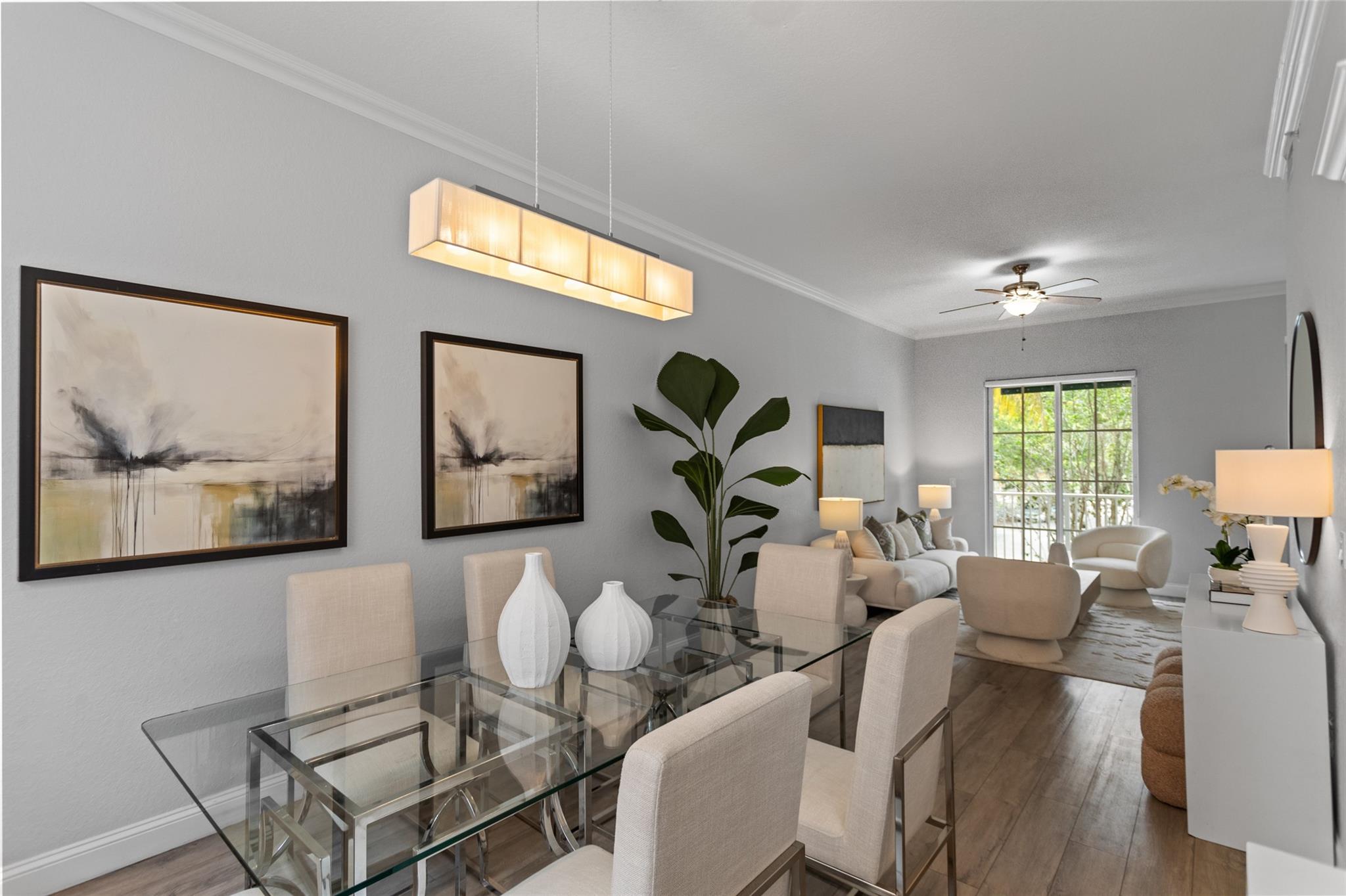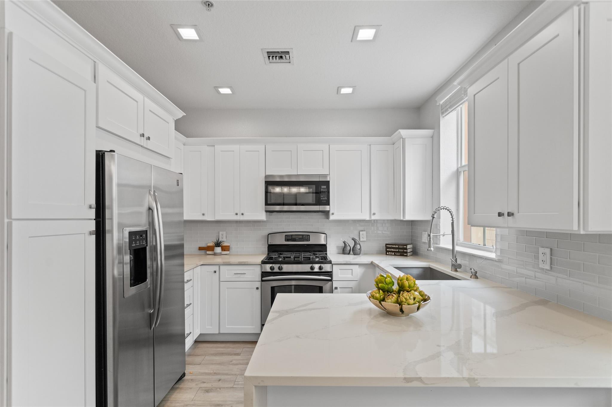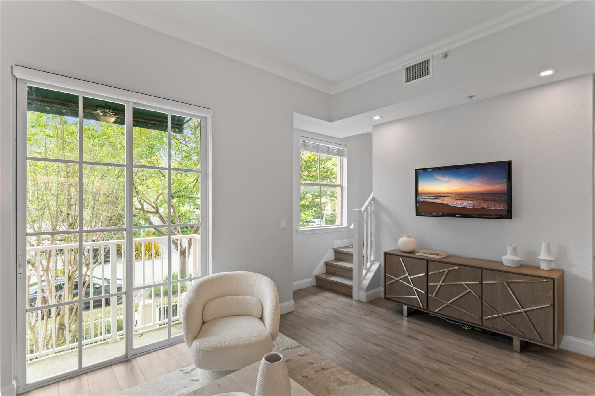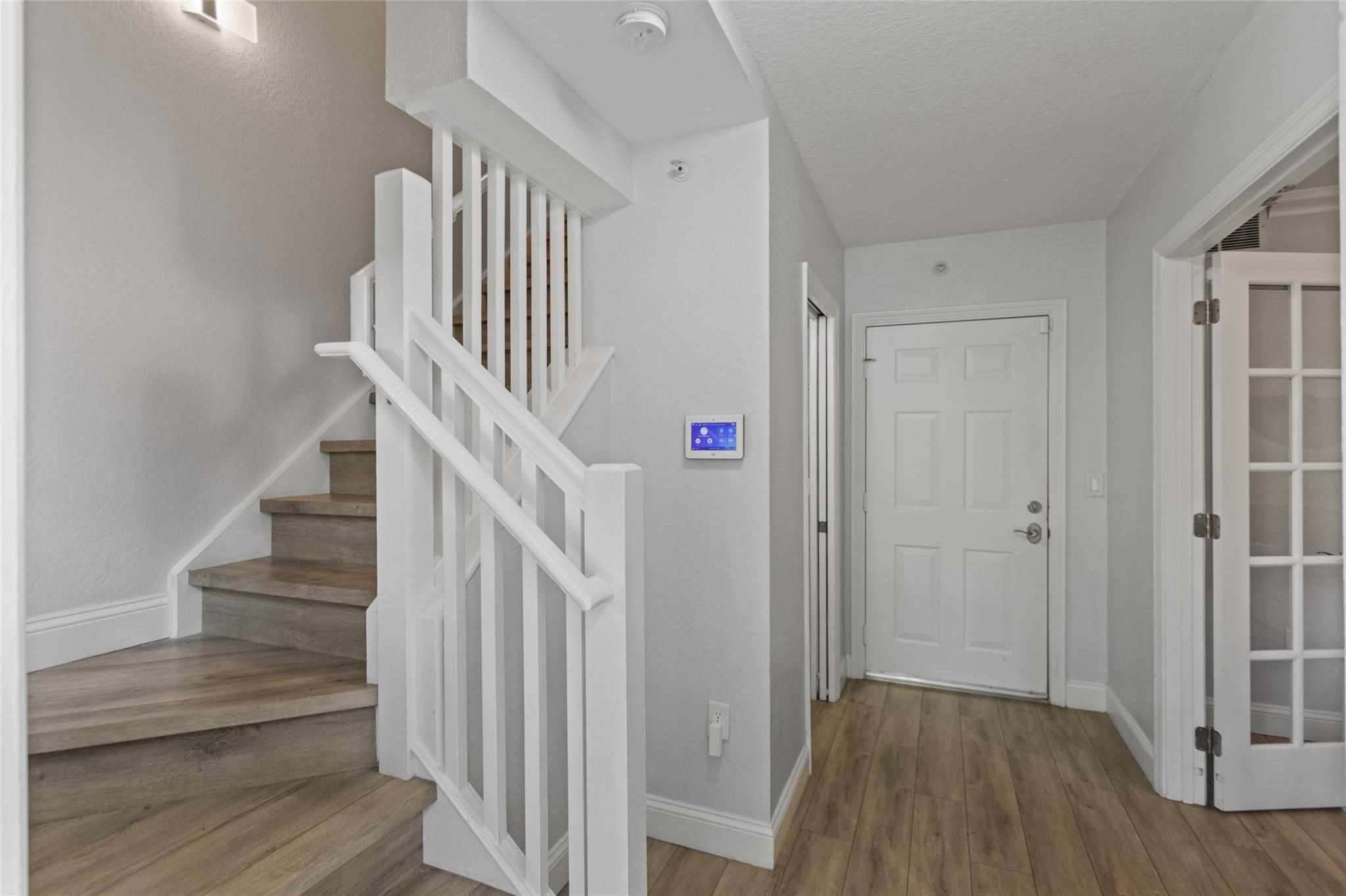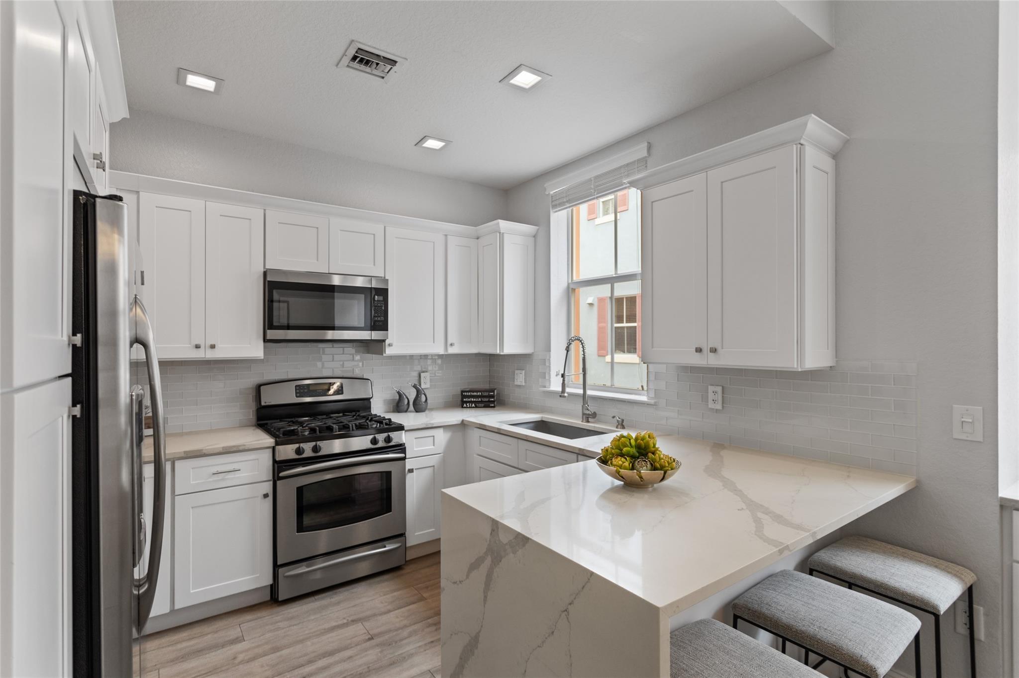 THIS IS CURRENTLY THE LEAST EXPENSIVE TOWNHOME IN VICTORIA PARK! Impeccably maintained 3-level townhome offering 3 bedrooms, 3.5 bathrooms, and an attached 2-car garage. Features include a 2018 A/C, gas tankless water heater, FULL IMPACT WINDOWS AND DOORS and new laminate flooring throughout. The modern kitchen boasts quartz countertops with waterfall design, a gas stovetop, updated cabinetry, and a custom buffet serving area—ideal for entertaining. Additional highlights include a new washer and gas dryer, custom closet organizers and a private front courtyard with low-maintenance turf grass. The community pool is a quick 30 second walk. Quarterly HOA fees include roof repairs, exterior insurance, exterior painting and landscape maintenance. Conveniently located near EVERYTHING!