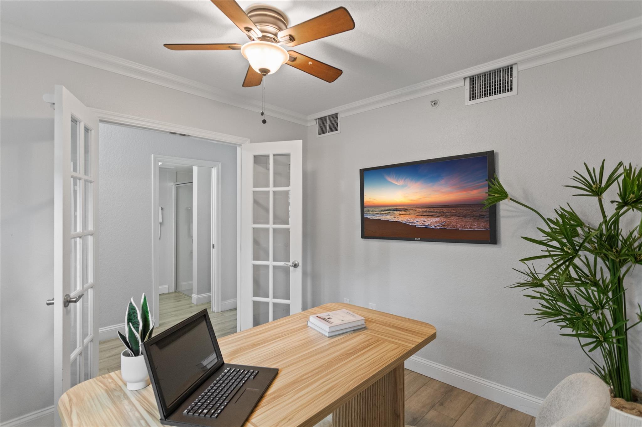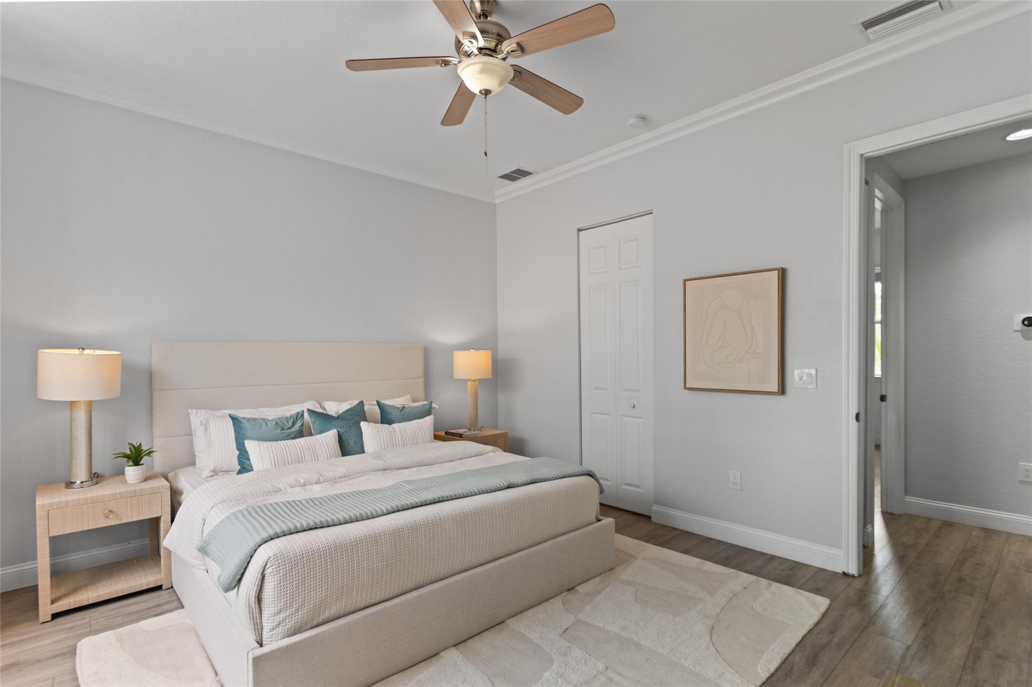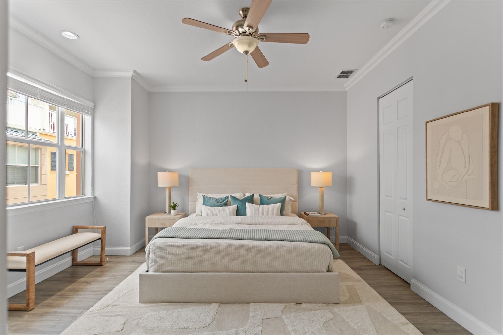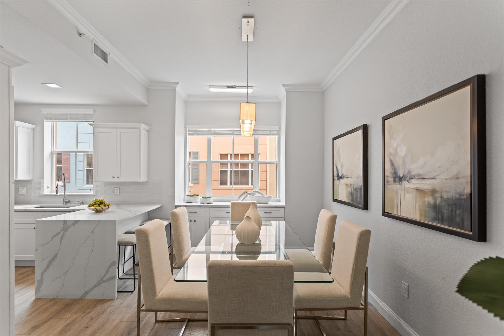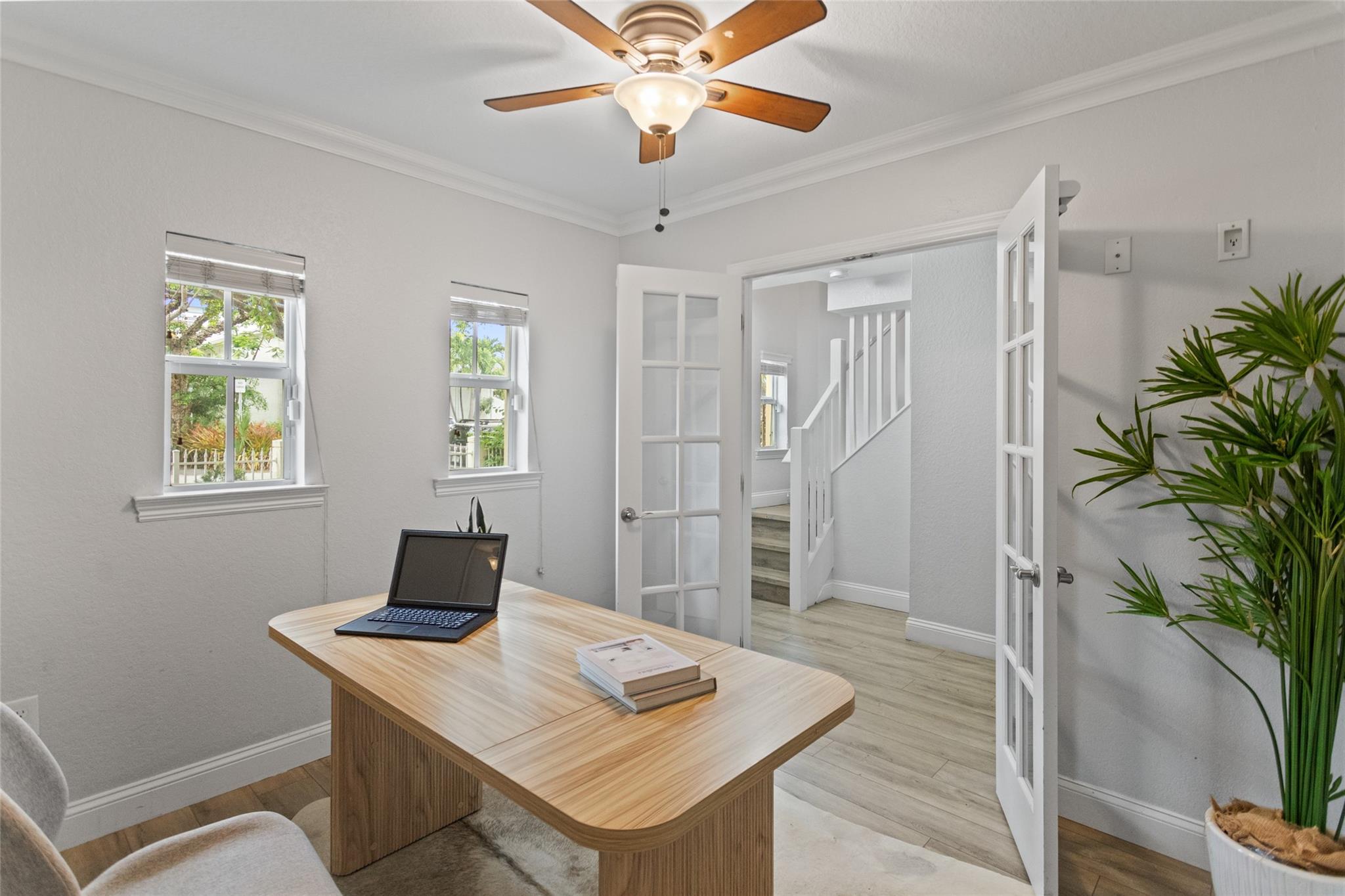THIS IS CURRENTLY THE LEAST EXPENSIVE TOWNHOME IN VICTORIA PARK! Impeccably maintained 3-level townhome offering 3 bedrooms, 3.5 bathrooms, and an attached 2-car garage. Features include a 2018 A/C, gas tankless water heater, FULL IMPACT WINDOWS AND DOORS and new laminate flooring throughout. The modern kitchen boasts quartz countertops with waterfall design, a gas stovetop, updated cabinetry, and a custom buffet serving area—ideal for entertaining. Additional highlights include a new washer and gas dryer, custom closet organizers and a private front courtyard with low-maintenance turf grass. The community pool is a quick 30 second walk. Quarterly HOA fees include roof repairs, exterior insurance, exterior painting and landscape maintenance. Conveniently located near EVERYTHING!