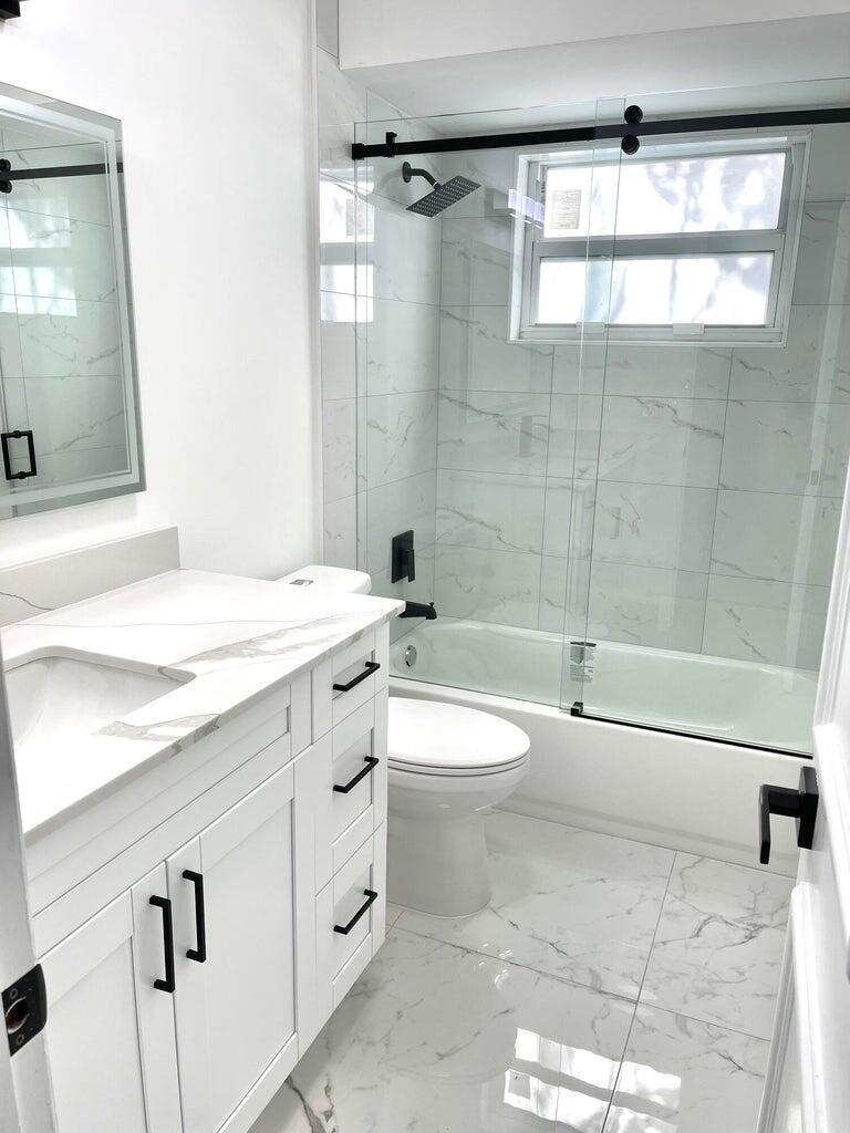 Beautifully Renovated Home in East Boca Raton. Completely renovated with modern finishes throughout. Featuring impact windows and doors, a newer roof (2022), quartz countertops, premium Samsung appliances, and elegant porcelain tile flooring. The wide-open kitchen flows seamlessly into the family room with views of the backyard, perfect for entertaining. Freshly painted inside and out. Oversized driveway provides ample parking. Located in a highly sought-after A-rated school district, on a quiet street yet just minutes from Mizner Park, the beach, and downtown Boca. Local parks are within walking distance. No HOA fees. A great neighborhood offering the very best of Boca living.