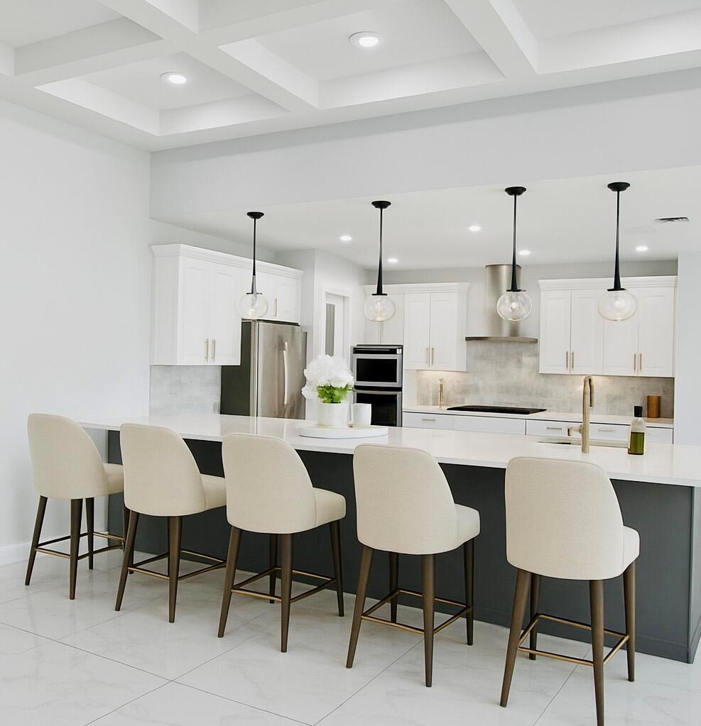 Stunning 2023 Custom -Build Home - Corner in Port Saint Lucie.Welcome to 2092 SW Airoso Blvd, a beautifully designed custom home, this move in ready residence offers 4 Spacious Bedrooms a dedicated Office /Studio and 3 Full Bathrooms,12ft in main living areas. Metal Roof, Impact Resistant Windows.The open concept living area is adorned with Large Porcelain title flooring. 2 Car Garage, Sprinkler system..Chef-style Kitchen featuring Massive Center Island. A cozy fireplace. Patio with Pavers and Gutters.. Located just minutes from shopping center, schools, parks, and Beach.Schedule your private tour today-