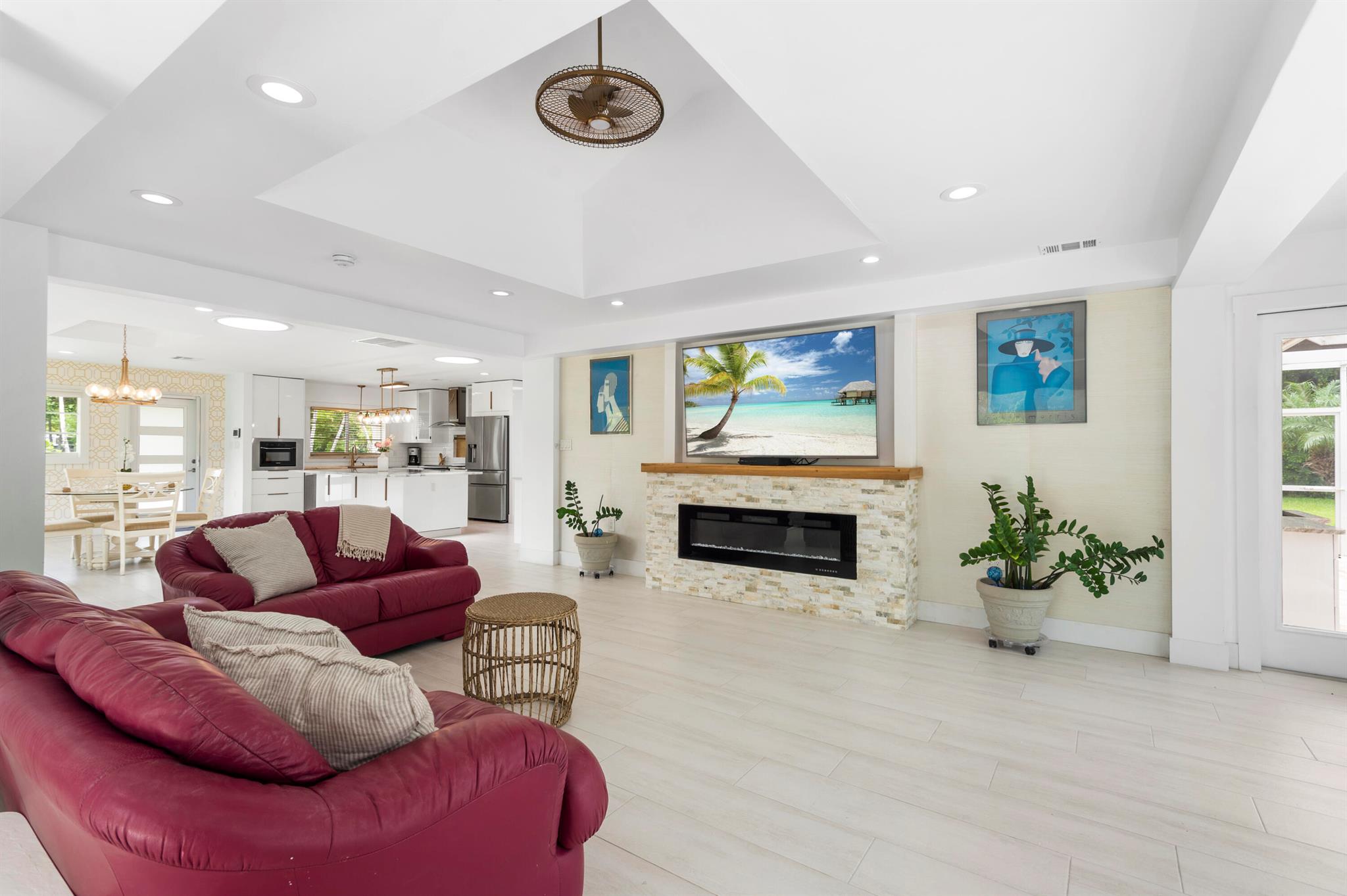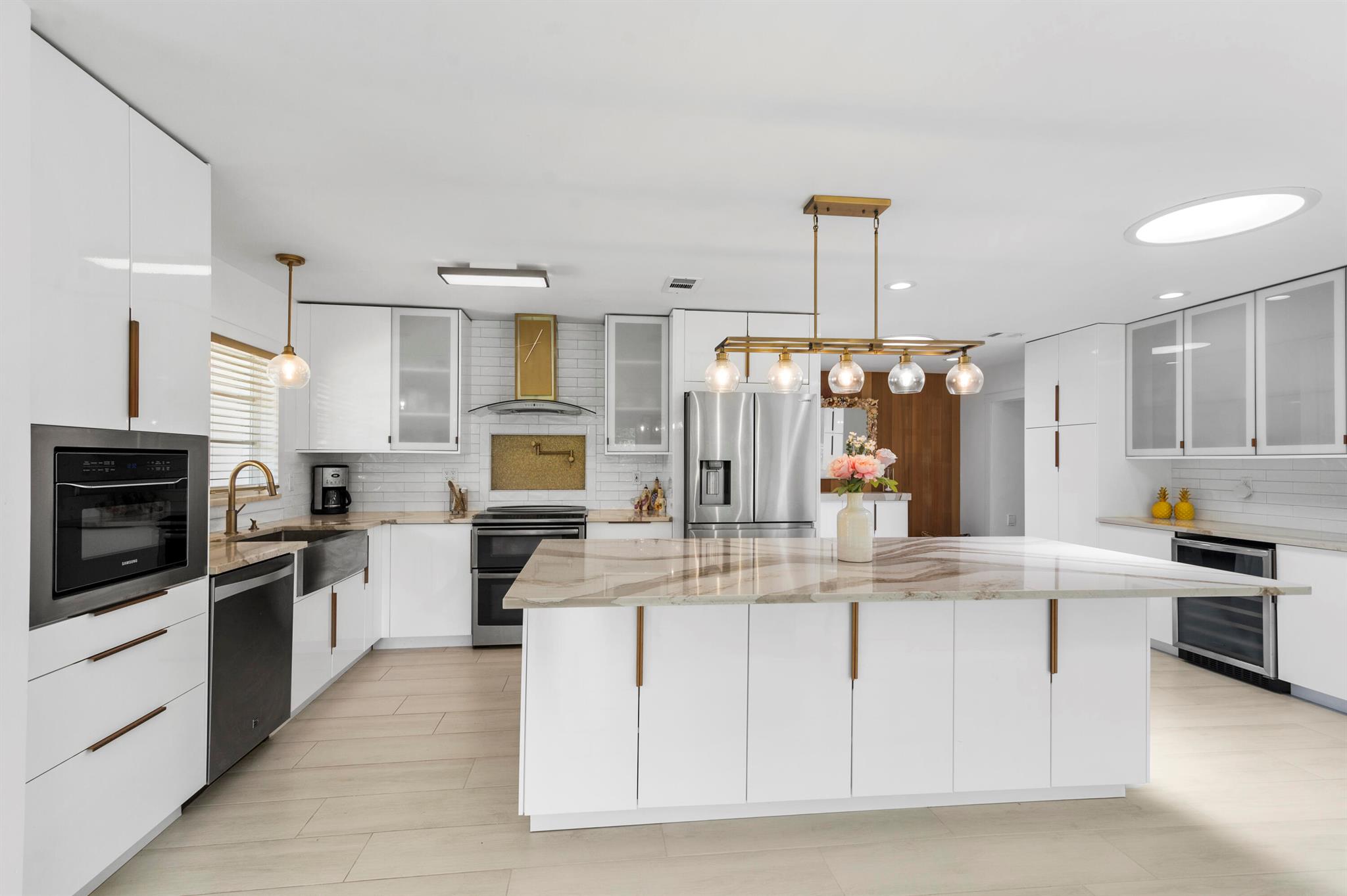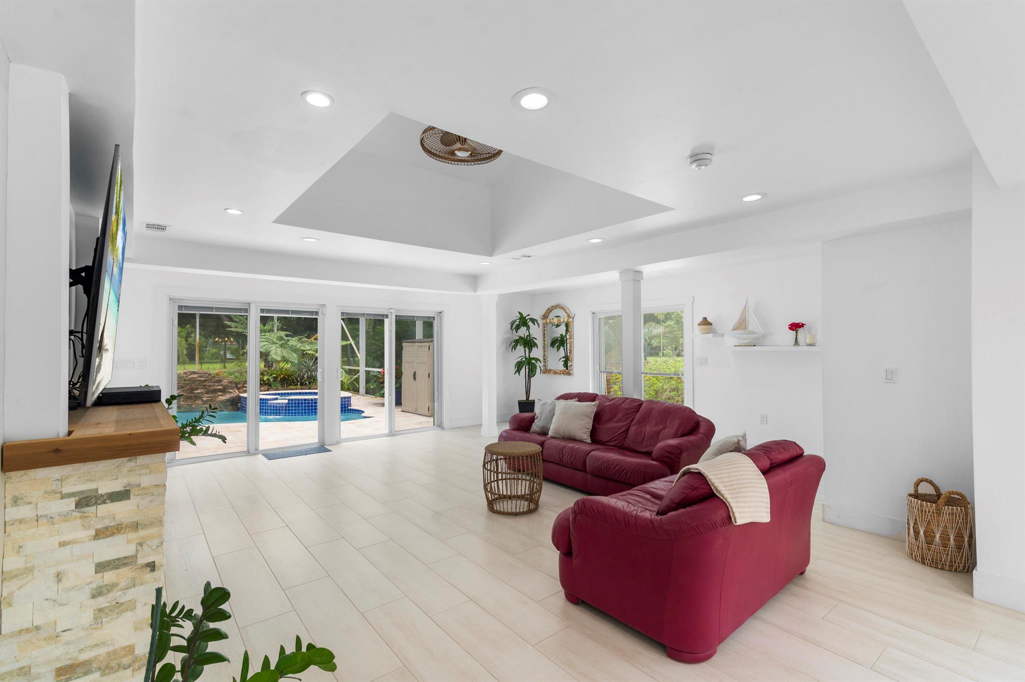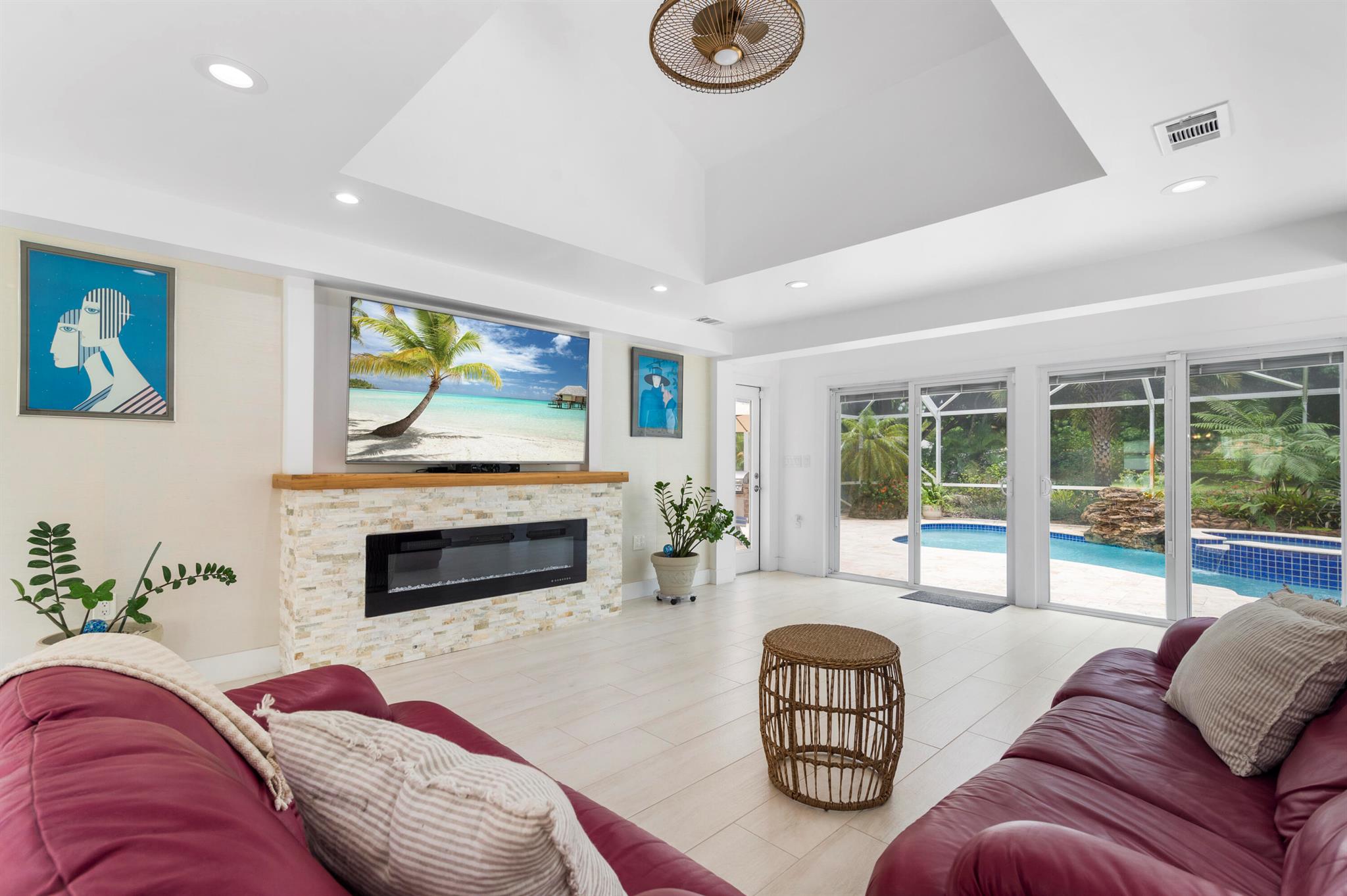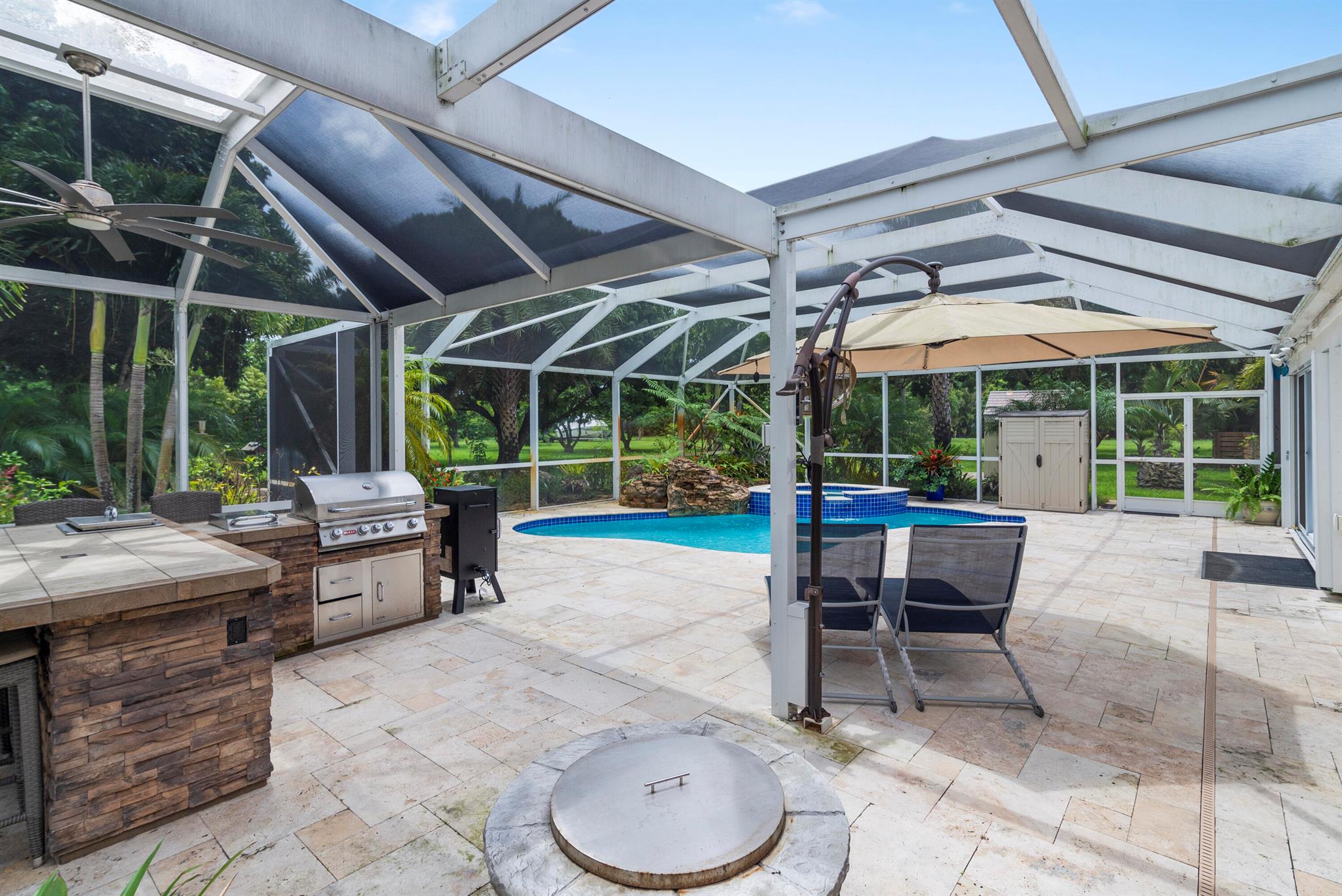 Open, spacious floor plan! Modern cabinets throughout, high end ceiling fans and light fixtures, one skylight and four sun tunnels, two custom fireplaces, three TV's, lots of closet/storage space, fully owned ADT alarm system with cameras, modern European white kitchen with quartz counter tops, stainless steel appliances, tankless water heater, set up for central vacuum, all sliding glass doors have built in blinds, screened in salt pool offer a resort like getaway with travertine patio, full summer kitchen, tropical plants, smoker, bar with patio furniture, storage sheds. Two full size refrigerators/freezer, two wine coolers, over 2.3 acres of 112 fruit trees and sprinkler system. New impact windows and accordion shutters. Enjoy a no HOA neighborhood.