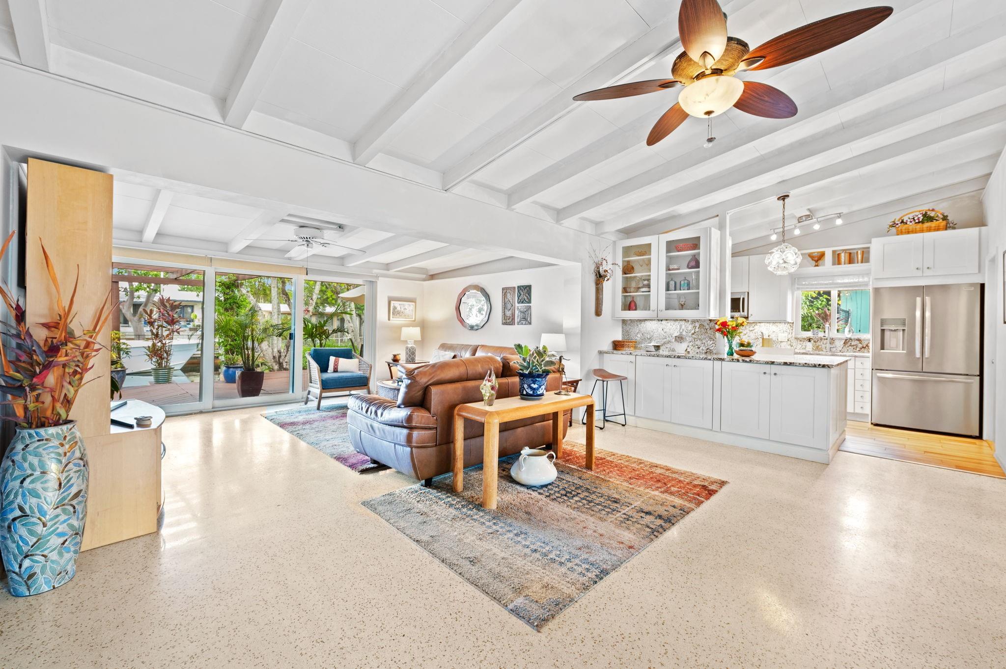 Beautifully maintained Lauderdale Isles home with thoughtful updates that help bring peace of mind. Impact windows & doors, 15' of cast iron pipe replaced under the home plus new line to city, new electrical, generator hookup, remodeled kitchen and baths—all with permits. Enjoy 65' on an ocean-access canal with no fixed bridges to the ocean, with water & electric at the 40' dock ready for your boat. Sun-filled interior with terrazzo floors and vaulted ceilings that combine vintage charm with modern comfort. Sprinklers keep lush gardens vibrant and blooming. Spacious laundry with extra storage. 1-car garage with workbench & storage. Convenient to highways, airport, and just 10-15 minutes to beaches, dining, and nightlife. A welcoming home where waterfront living feels easy and enjoyable.
