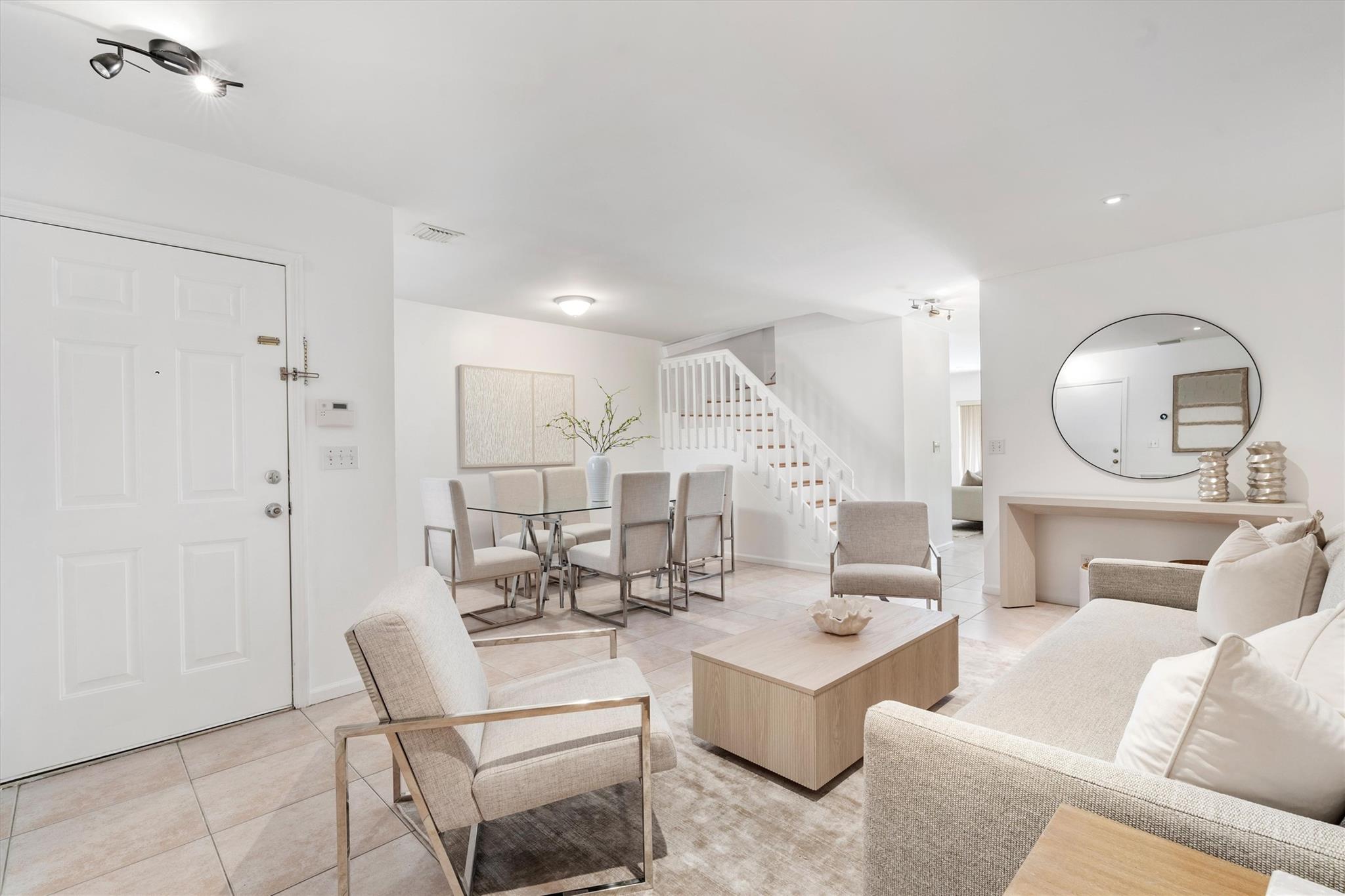 Freshly painted, well maintained and centrally located 3 bed, 2.5 bath, 1 car garage townhome in Coral Springs' gated community of Cobblestone Walk. Spacious dining and living areas, great natural light, tile and laminate flooring, and your own private covered patio. The kitchen features wood cabinets, ample counter space and newer stainless steel fridge and dishwasher. Upstairs you will find all 3 bedrooms as well as the laundry room. The spacious primary suite has a large walk-in closet, tray ceilings, double vanity sinks, new toilet, and separate tub and walk-in shower. The home has a newer AC as well as accordion hurricane shutters. HOA requires 640 credit score, can lease after 1 year, max 2 pets 25 lbs each. Close proximity to schools, shopping, dinning, and the Sawgrass Expressway.