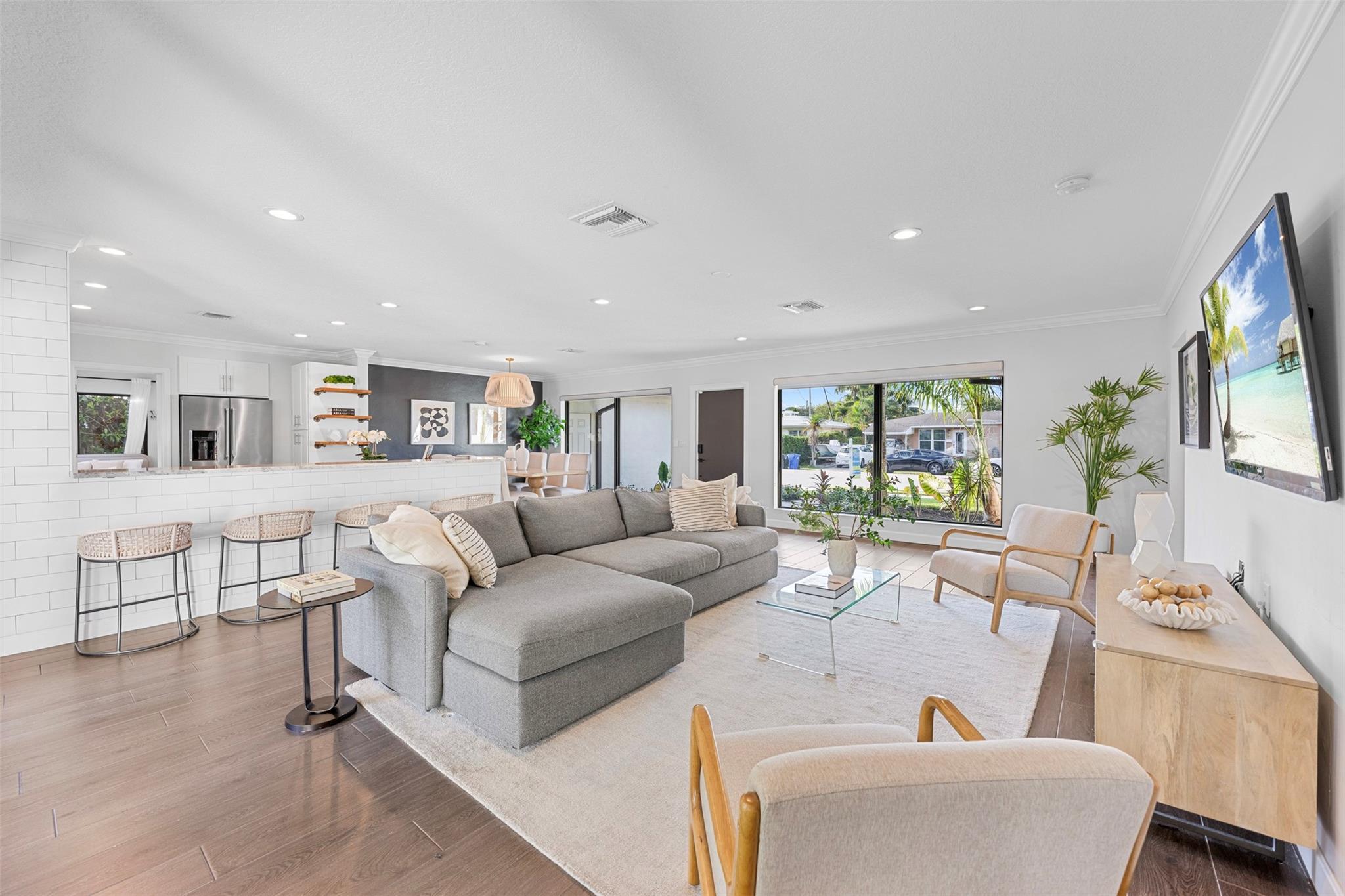 4 BR 3 BA pool home sitting on 75' of deep water with no fixed bridges and an oversized 1 car air conditioned garage. This home sits on an oversized waterfront lot almost 10,000 SF. 30% larger than neighbors. Also one of the widest canals in Citrus Isles. Nicely updated and open concept floorplan featuring impact windows & a new salt water pool. Heat the pool for free with the solar pool heater. A state-of-the-art Central A/C air scrubber enhances air quality, Reverse Osmosis water filters on every sink and shower heads. Triple stage reverse osmosis filter for drinking water. Ideal location in the middle of everything - FLL airport (under 10min) Downtown & Las Olas (under 10 min) The Beach (less than 3 miles) and I95/I595 and Turnpike (less than 5 min). Come experience life on the water.