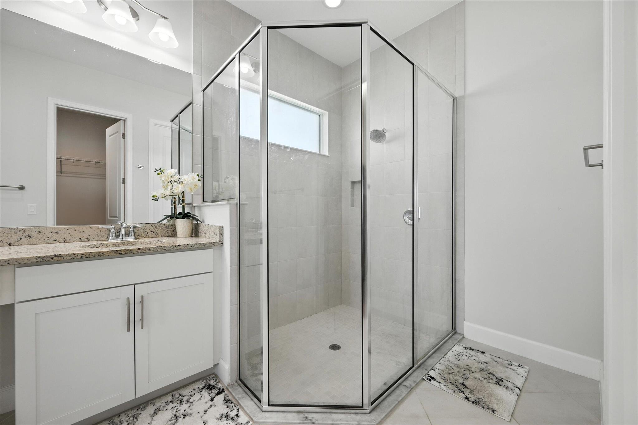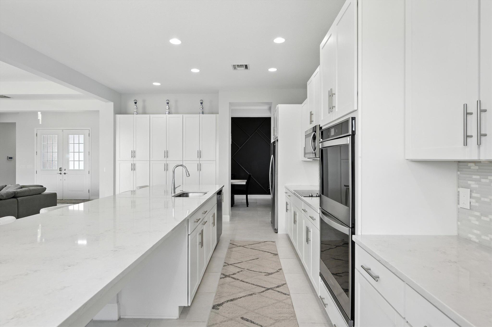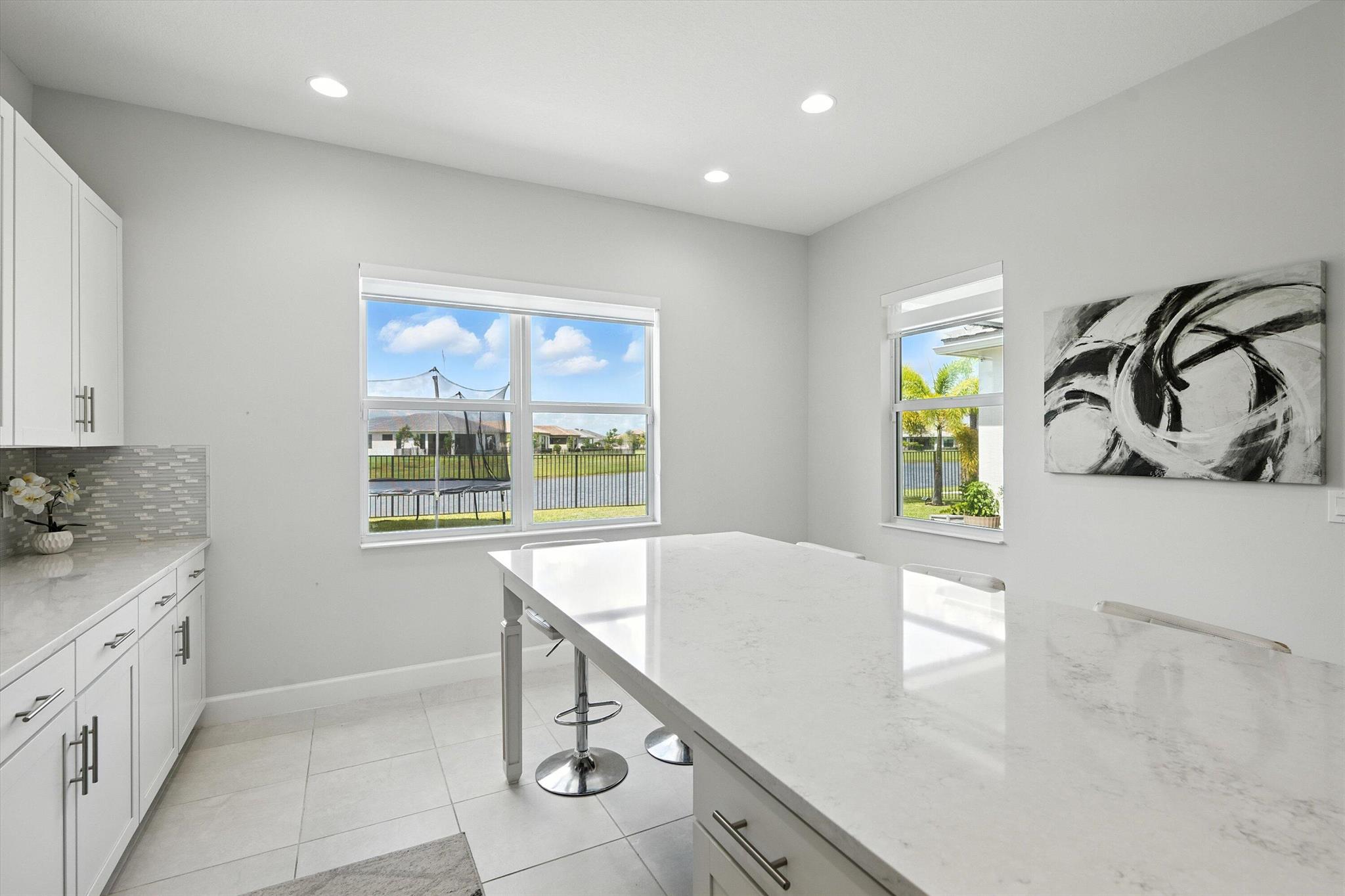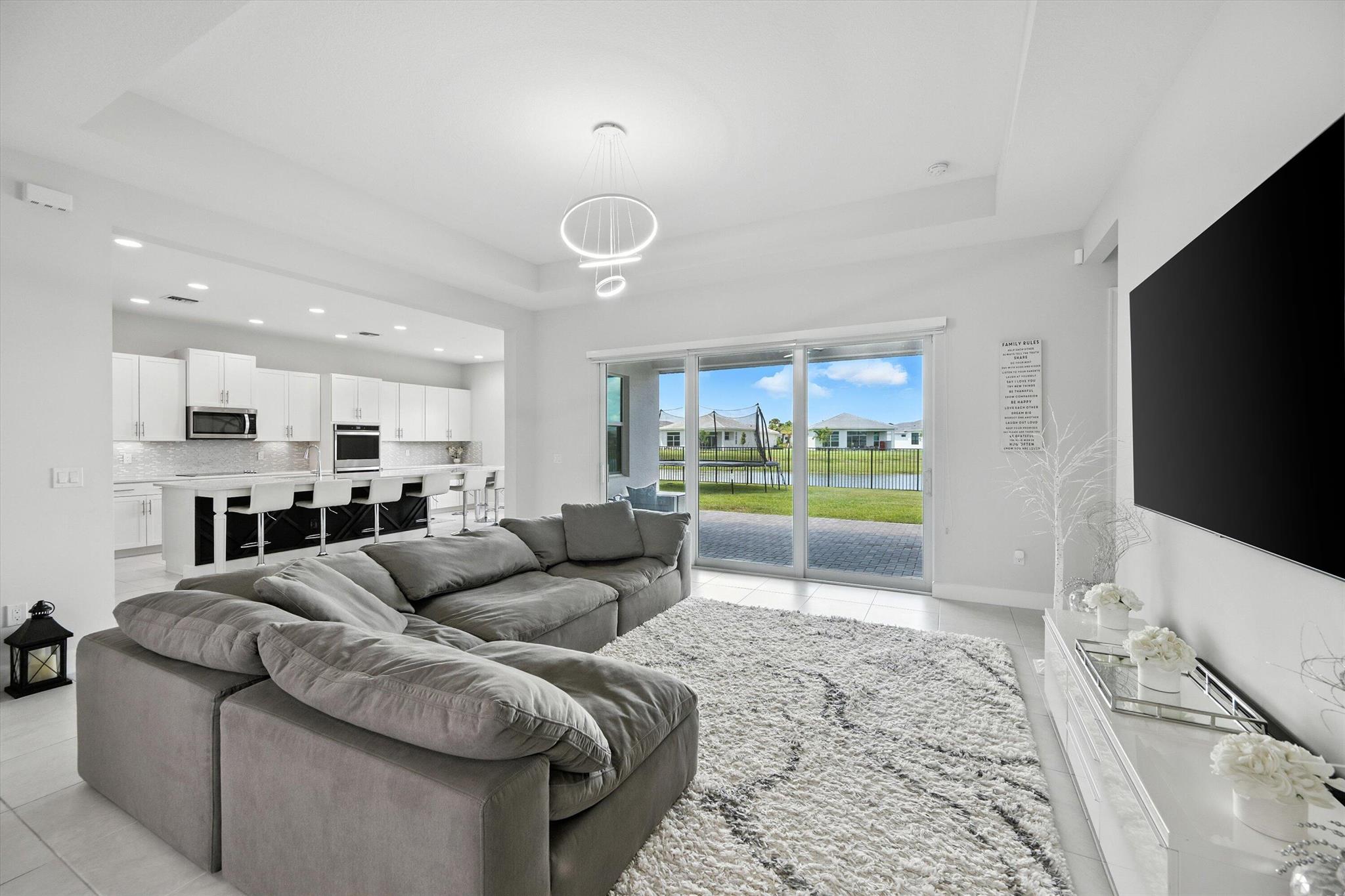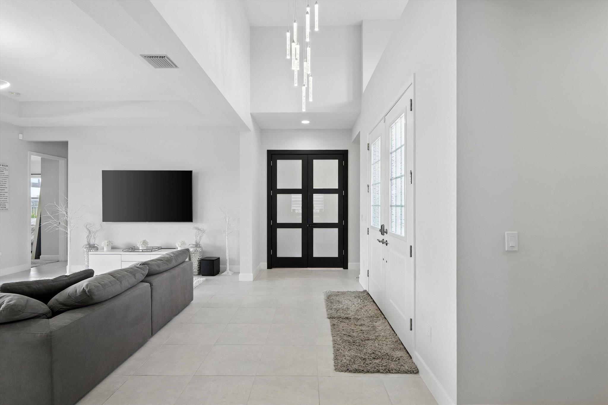 Welcome to this stunning Sandhill model in the desirable Orchards community of Westlake. Offering 3 bedrooms, PLUS a den/office, 3 bathrooms, and a 2-car garage, this home spans 2,410 sq. ft. of thoughtfully designed living space and sits on a beautiful lake view lot. From the moment you arrive, the curb appeal stands out with modern black double doors that open to a bright and inviting interior. White walls and tile flooring flow throughout the main living areas, creating a fresh and airy atmosphere. The living room is filled with natural light thanks to expansive sliding glass doors that frame the picturesque lake views.