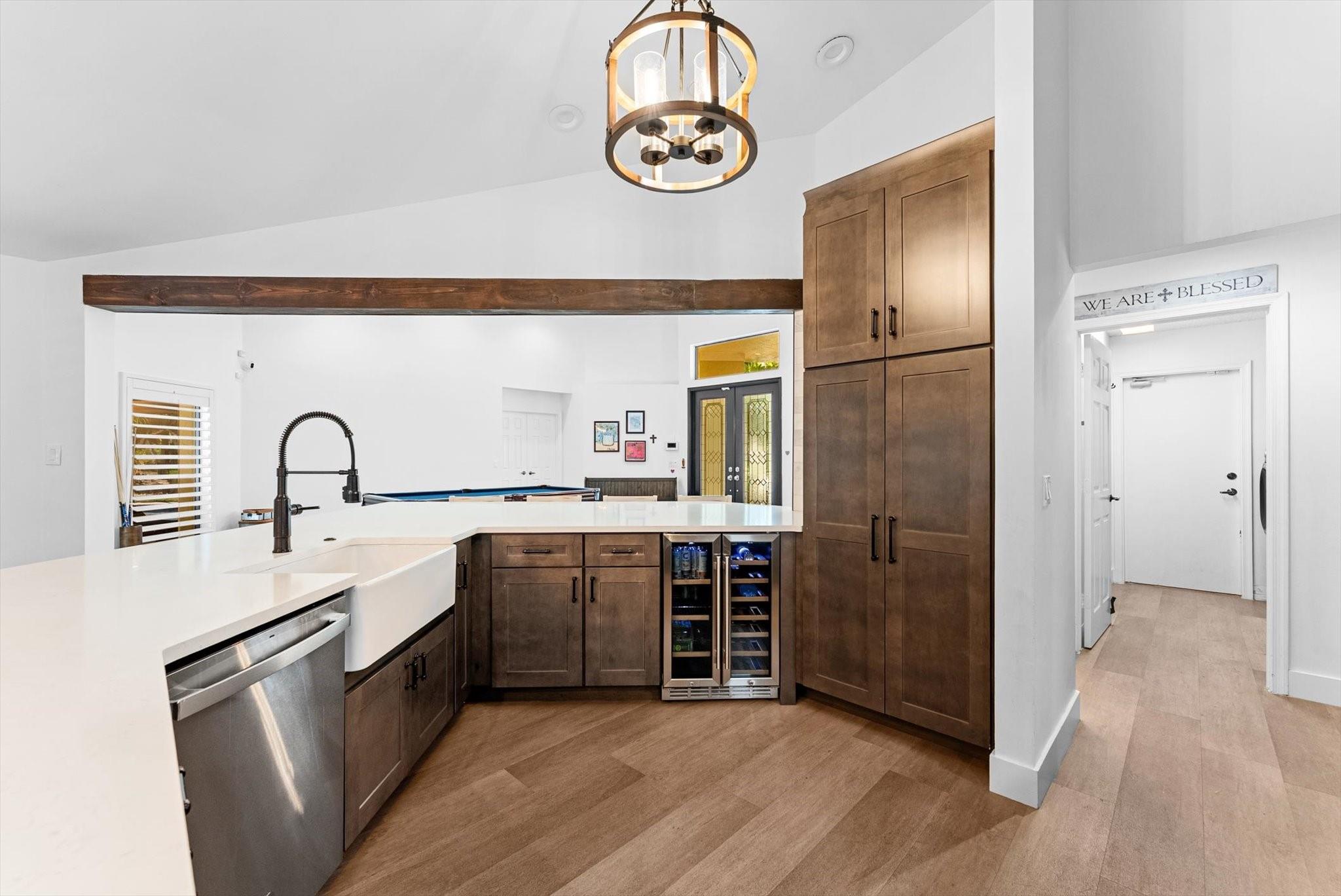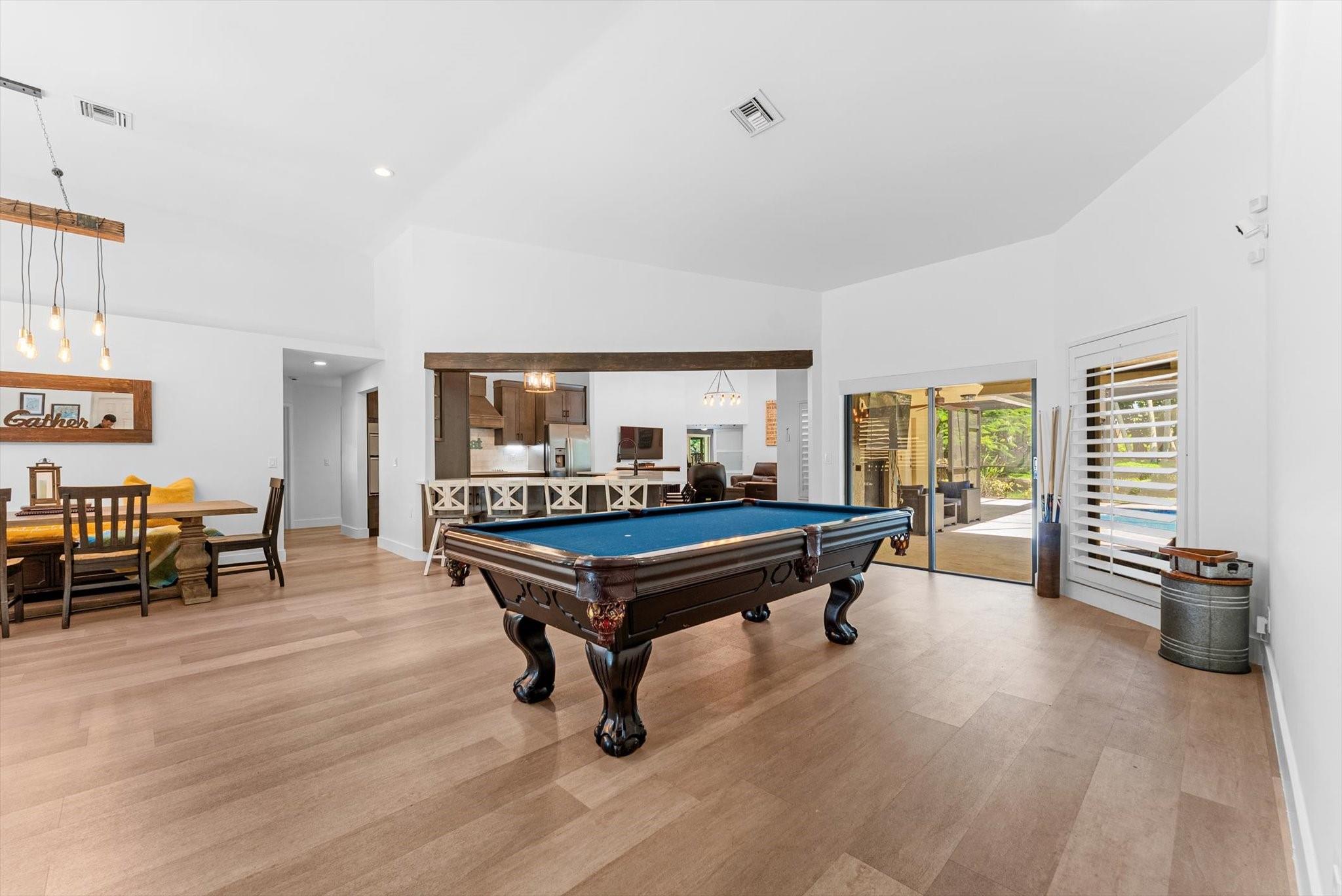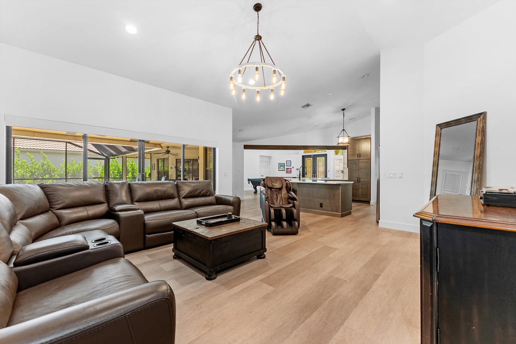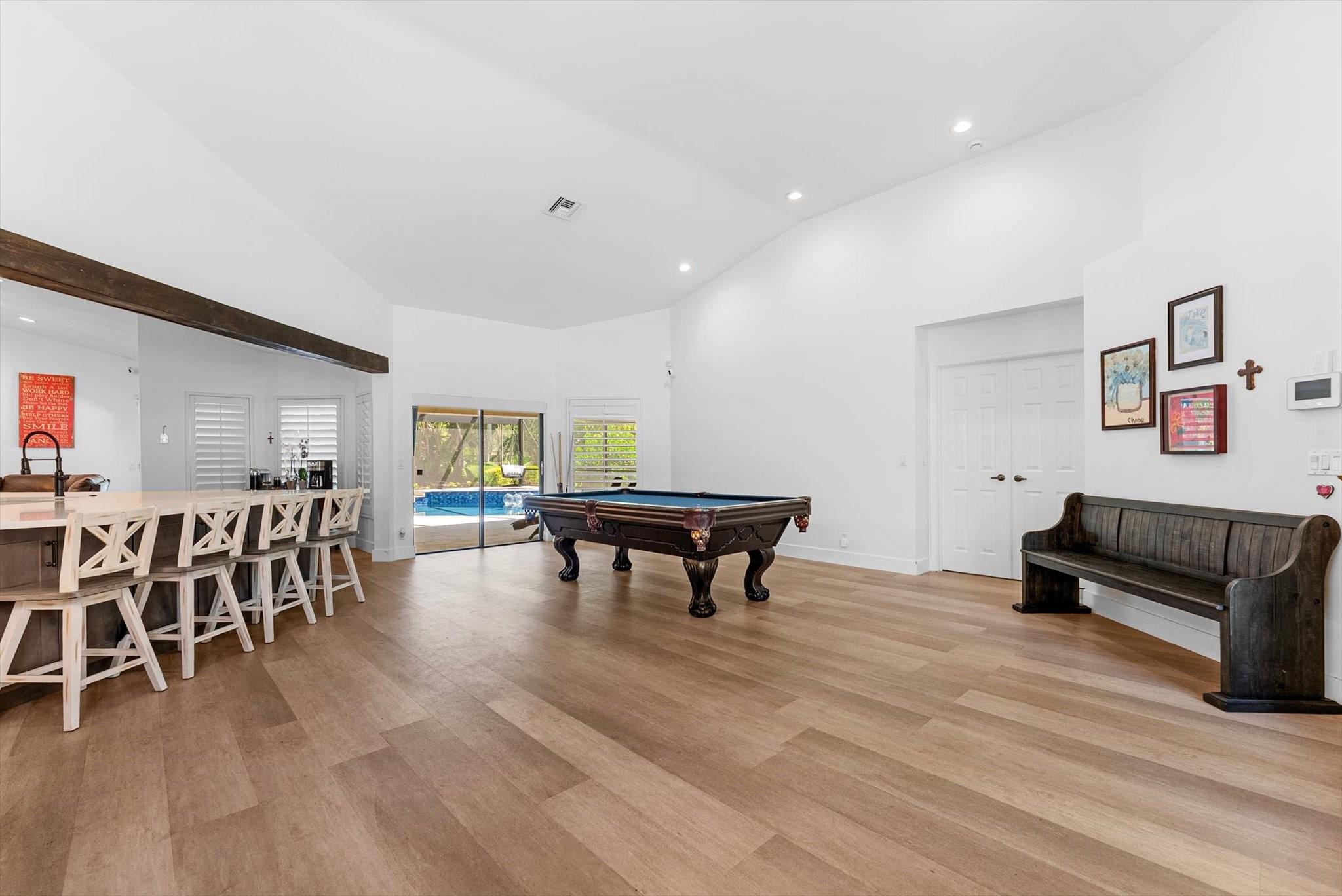 Entertainer's Dream located in the private gated neighborhood of Tequesta. This meticulously updated 5 bedroom, 3 bathroom residence offers luxurious living at it's finest. Move-in-ready, this spacious home has an abndance of natural light that features warm finishes throughout. Recently updated kitchen with custom cabinetry, quartz counters, waterproof flooring and wine fridge is the center attraction to the family room, dining and living rooms. Revel in breathtaking views of the new heated saltwater pool equipped with a 10 person spa, cold plunge and private garden featuring a cozy fire pit, ideal for fun evenings with family and friends. The primary suite is complete with soaking tub, dual sinks, private toilet room and walk in shower. AC 2024, pool and screen 2024 roof 2014, W/D 2016