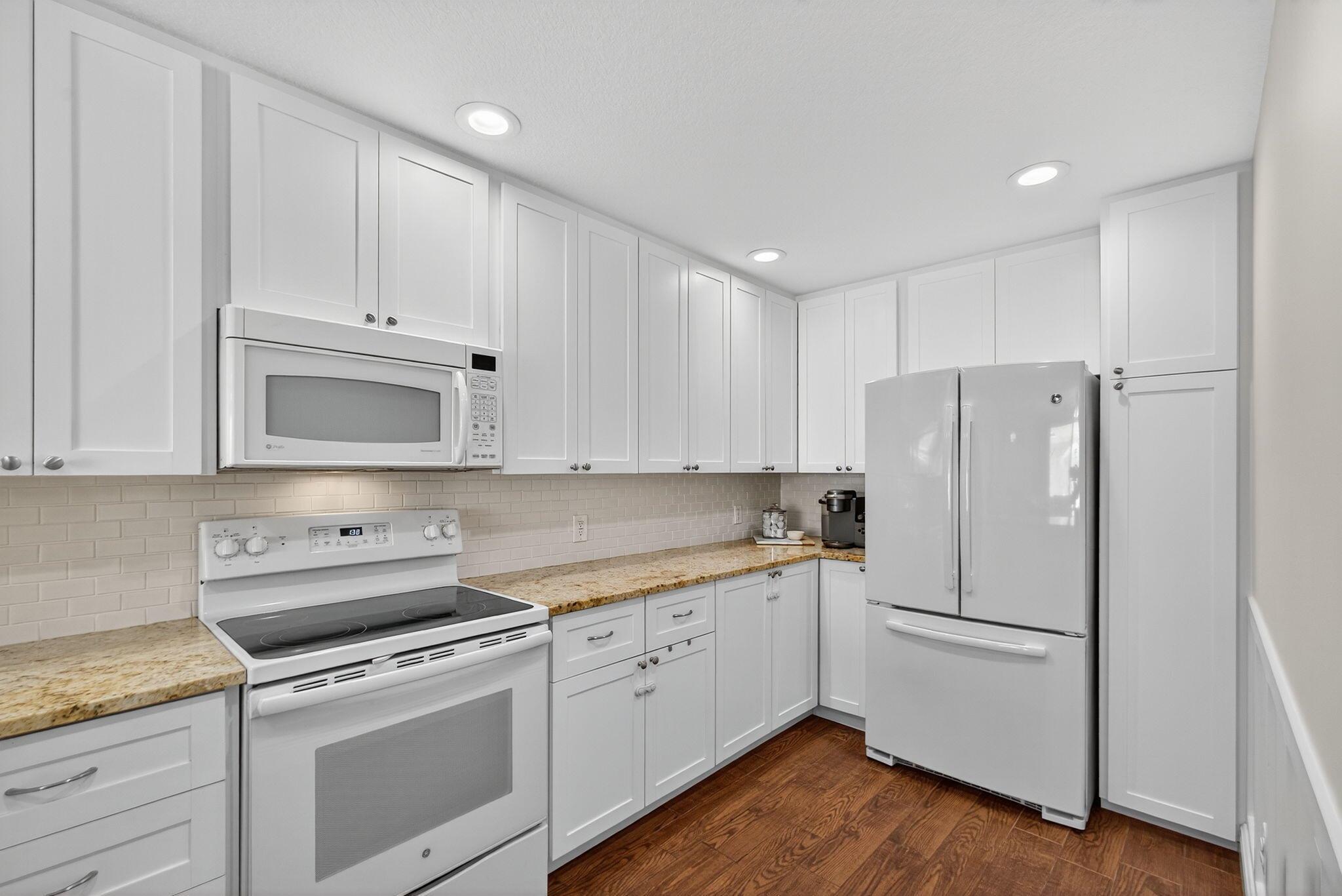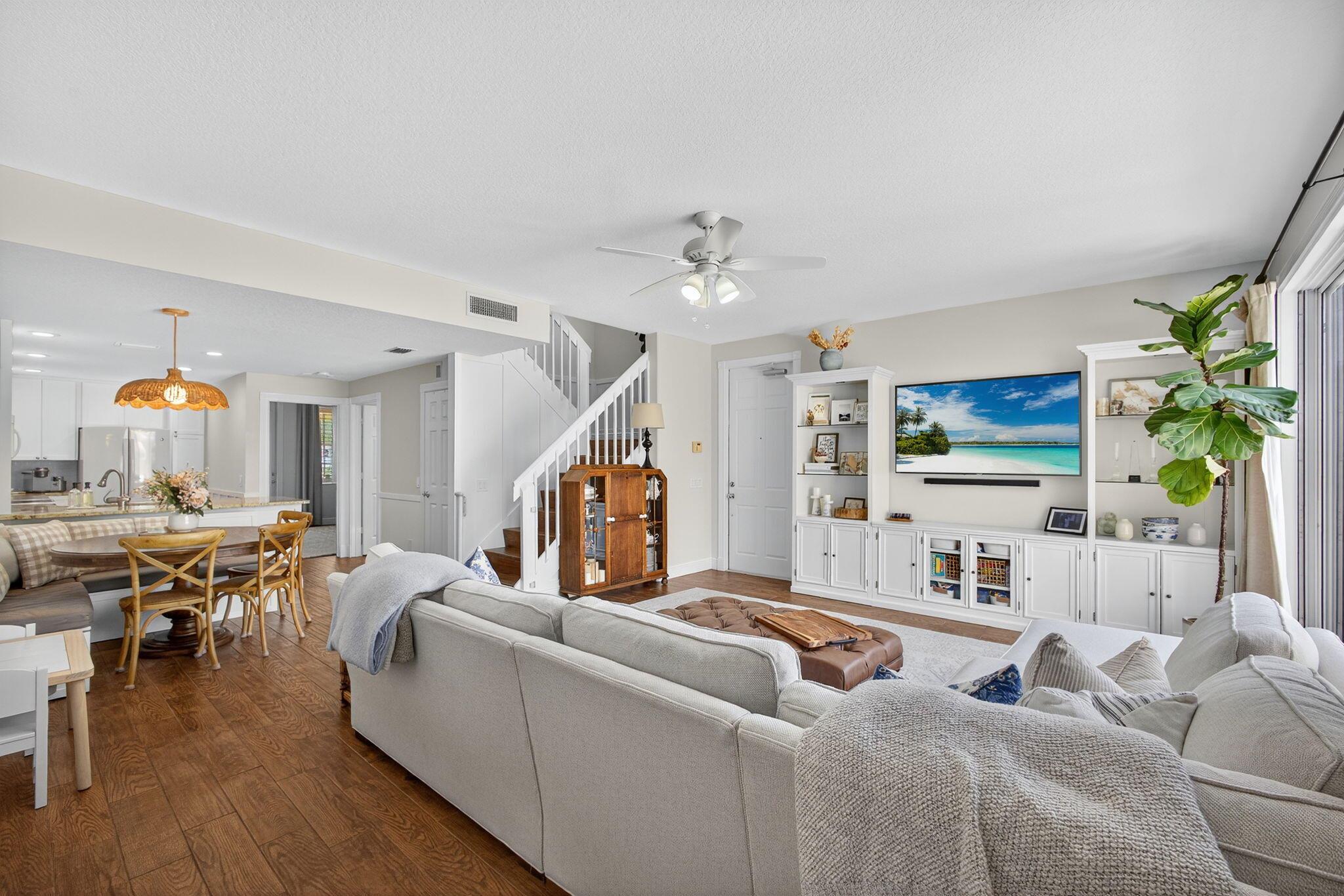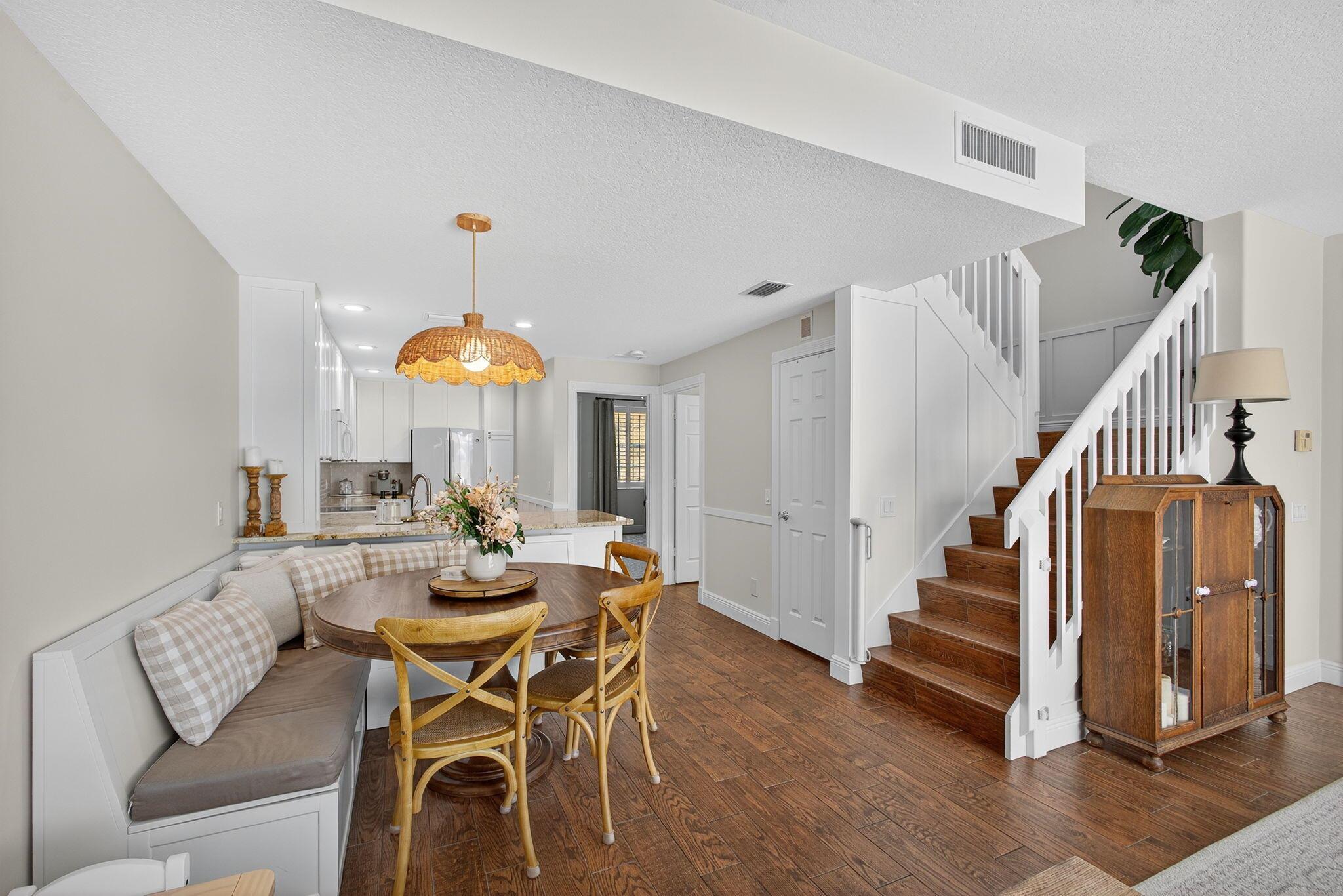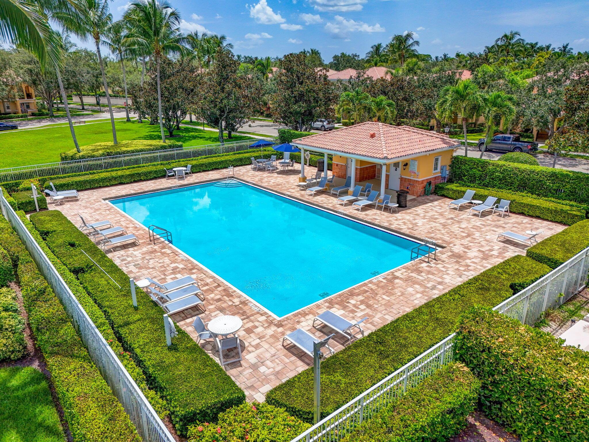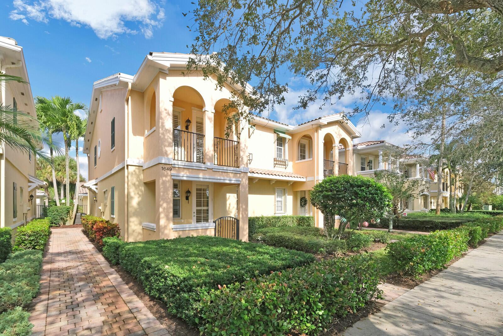 This charming 3-bed, 3-bath townhome offers 1,830 sq. ft. of bright living space with gorgeous wood-look tile and laminate in bedrooms. Enjoy a spacious courtyard perfect for relaxation, and a detached 2-car garage. The open kitchen boasts soft-close cabinets, a new dishwasher and newer appliances. AC 2018, HWH 2024, Roof 2003. This pet-friendly community features a pool, tennis court, basketball court, playground, and a recreation room. Internet and cable is included. Walk to downtown Abacoa for a baseball game, concerts, food truck invasions, or visit Jupiter's beaches just 15 minutes away. Conveniently located 20 minutes from PBI, this home combines charm, convenience, and a perfect location! All A+ rated schools. Drapery and blackout shades excluded. Photos Coming.