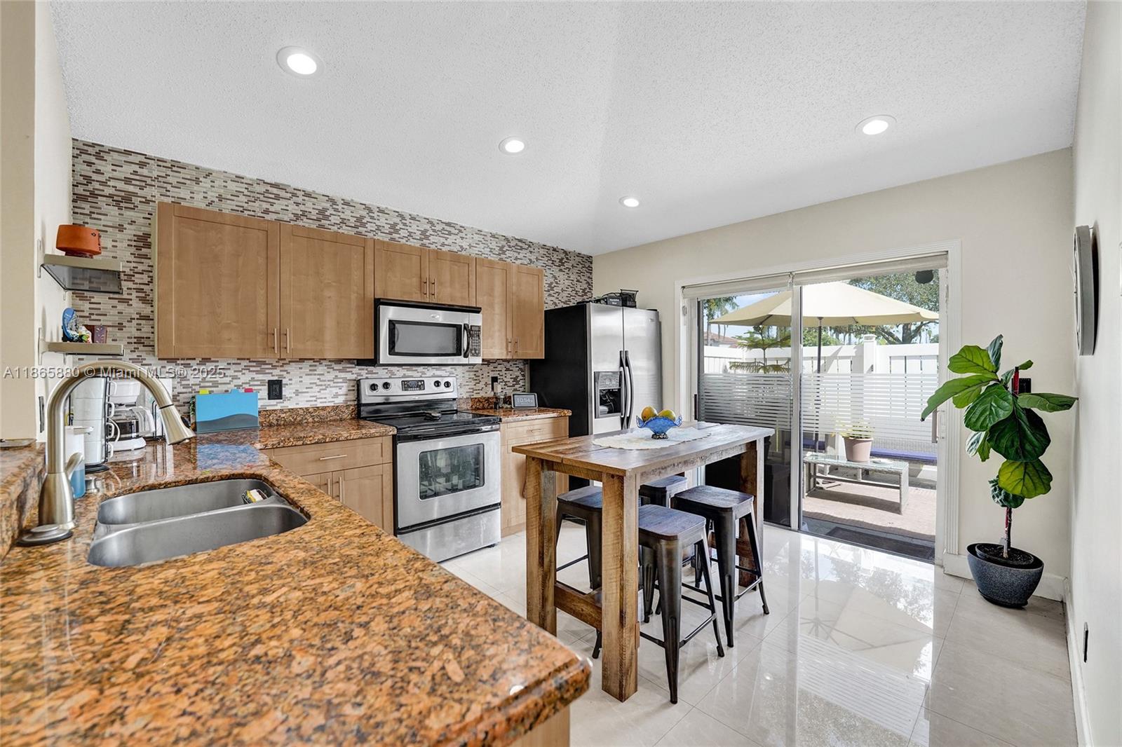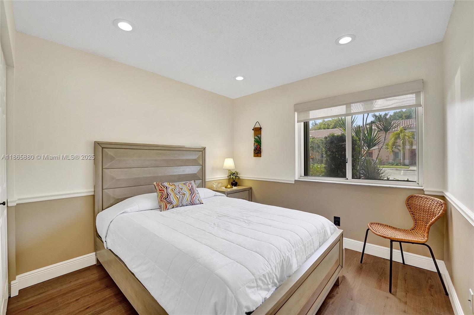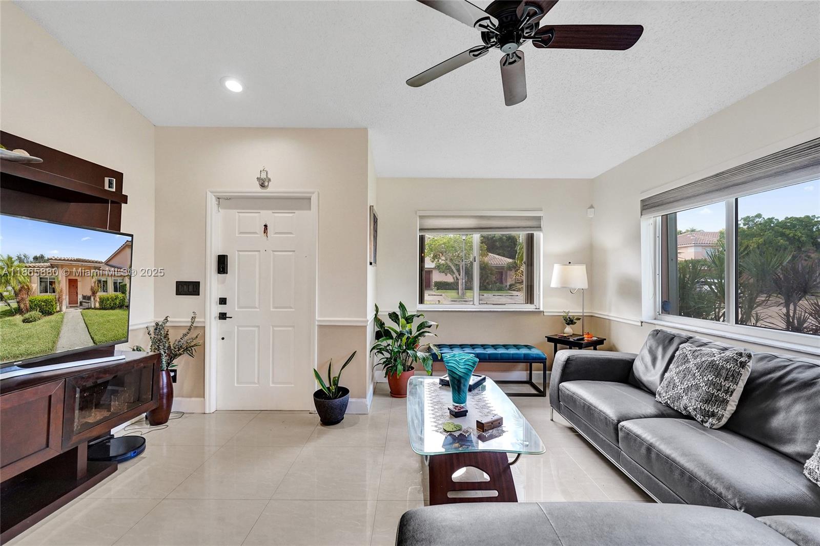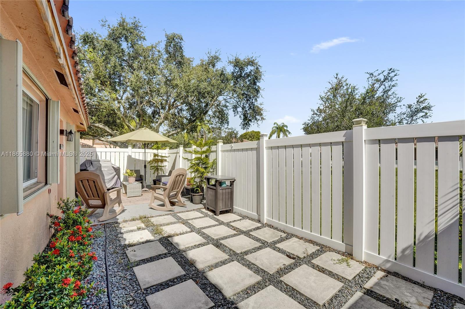 RARELY available one story corner unit in Malibu Bay, Chapel Trail. The HOA is currently painting the buildings, giving the community a fresh new look. Inside, this well-maintained home offers upgrades including porcelain tile floors, LVP in the bedrooms, renovated master bathroom, closet built-ins, recessed lighting throughout, modern blinds, fresh paint, and much more. Exterior features: new roof, accordion shutters, PVC patio fence, stamped concrete, and a large open grass area for kids or pets to enjoy. Two assigned spaces plus guest parking. Gated community with clubhouse, pool, jacuzzi, gym, game room. HOA covers exterior, landscaping, internet, and cable. Zoned for A-Rated public schools with Charter & Private options nearby.