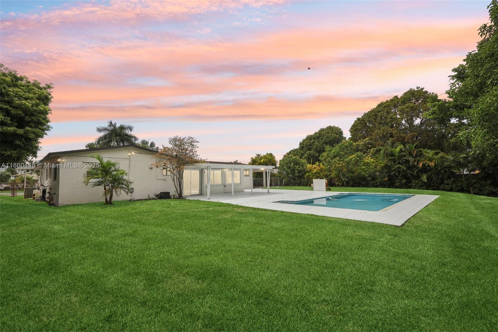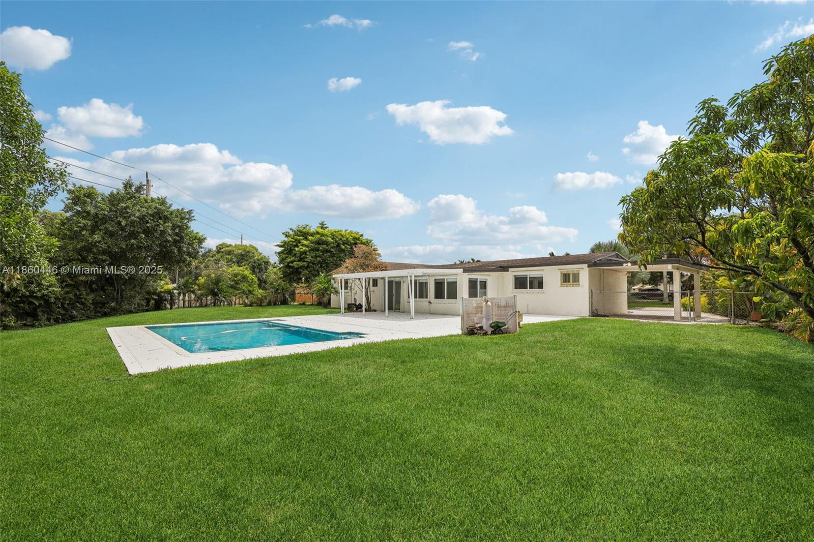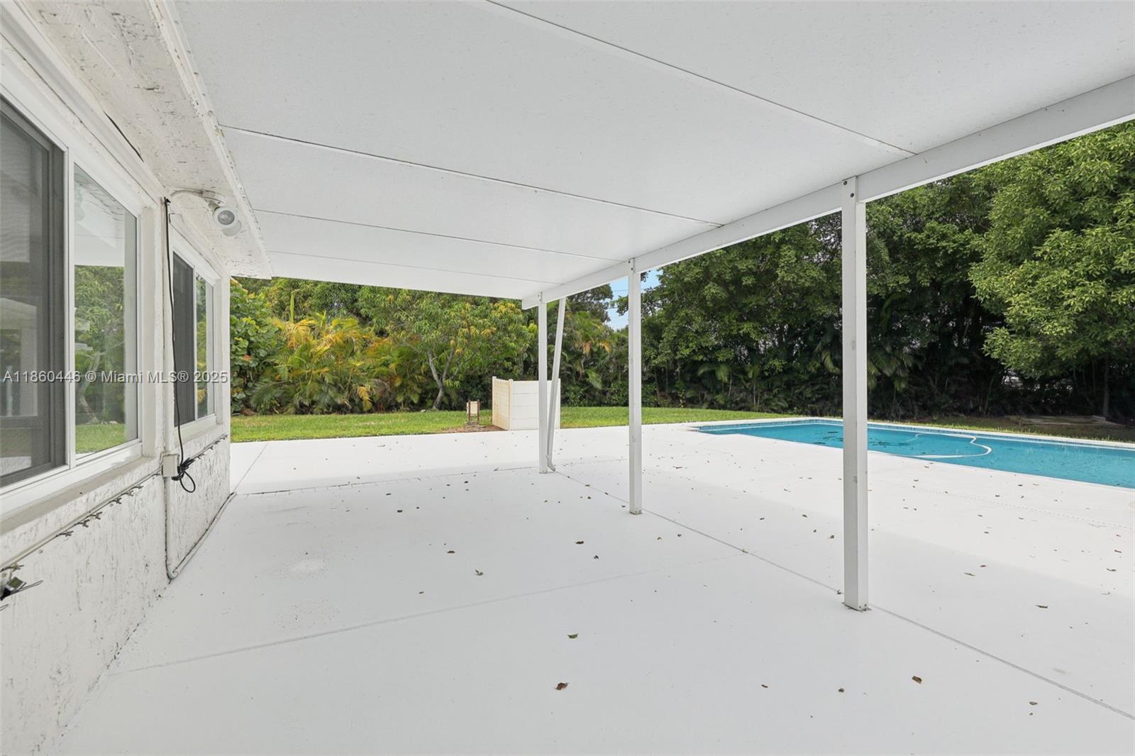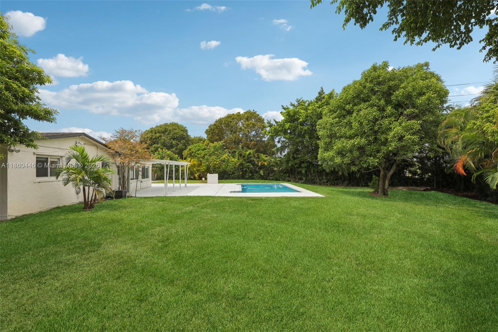 Beautifully maintained 3-bedroom, 2-bathroom, 1 car garage home offering 1,558 sq ft (as per appraisal) of comfortable living space on an incredible 18,491 sq ft lot. Enjoy a recently resurfaced oversized pool—perfect for relaxing or entertaining. Step inside to find an open layout boasting an updated kitchen with gas stove and beautiful porcelain and terrazzo floors. The bathrooms have been recently renovated with modern finishes. The home is secured with impact windows and doors throughout, with just three openings protected by accordion shutters, qualifying you for the full insurance discount. Additional highlights include a large driveway with stylish pavers redone in 2024, built in closets, gas water heater as well as a freshly painted exterior. This home in move in ready!