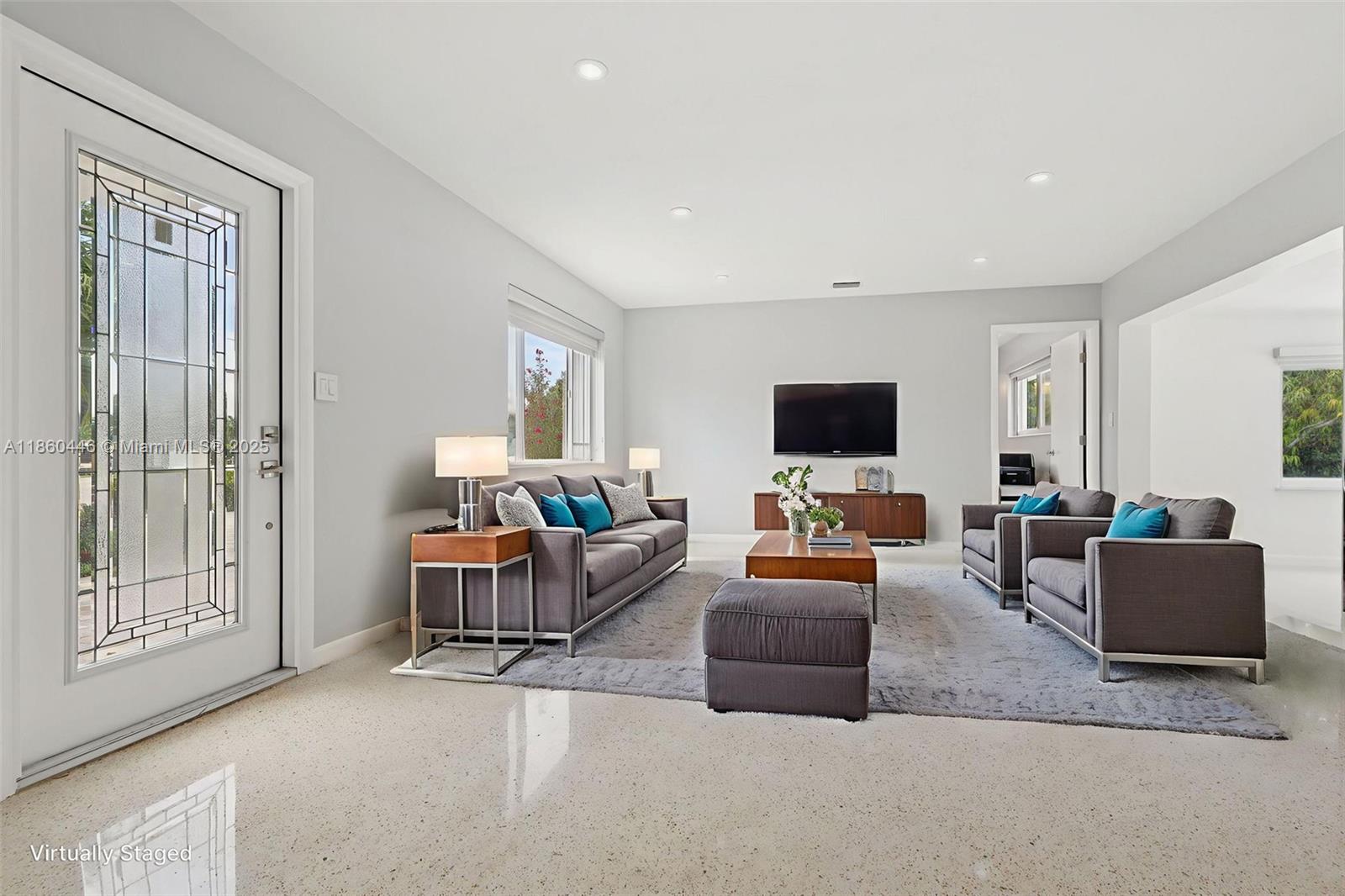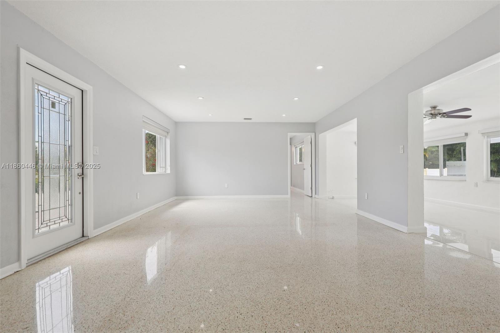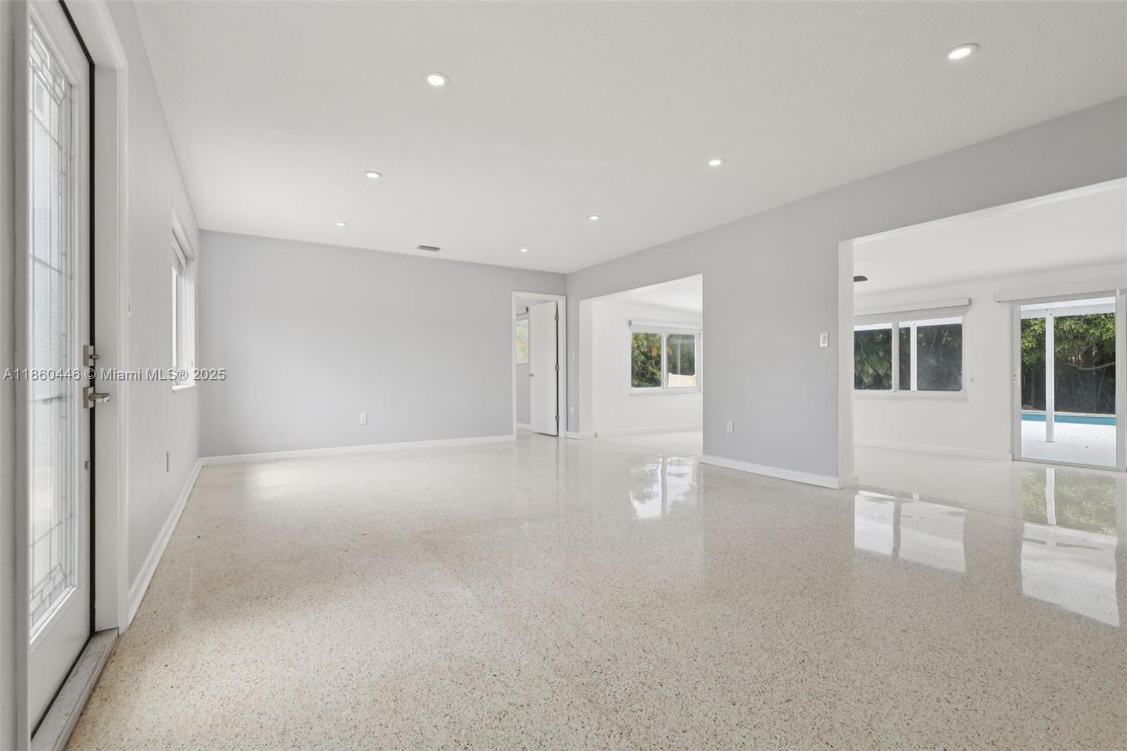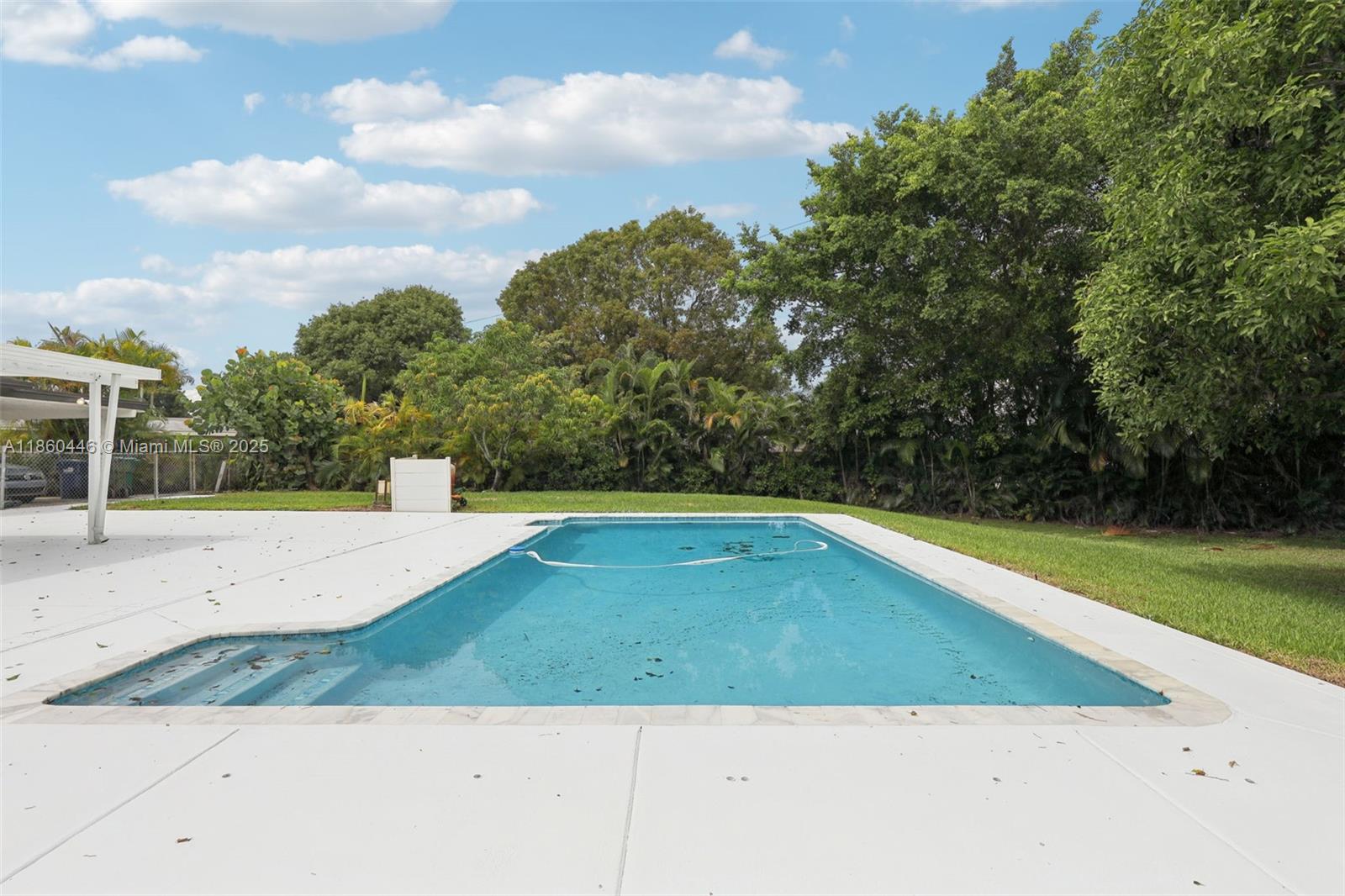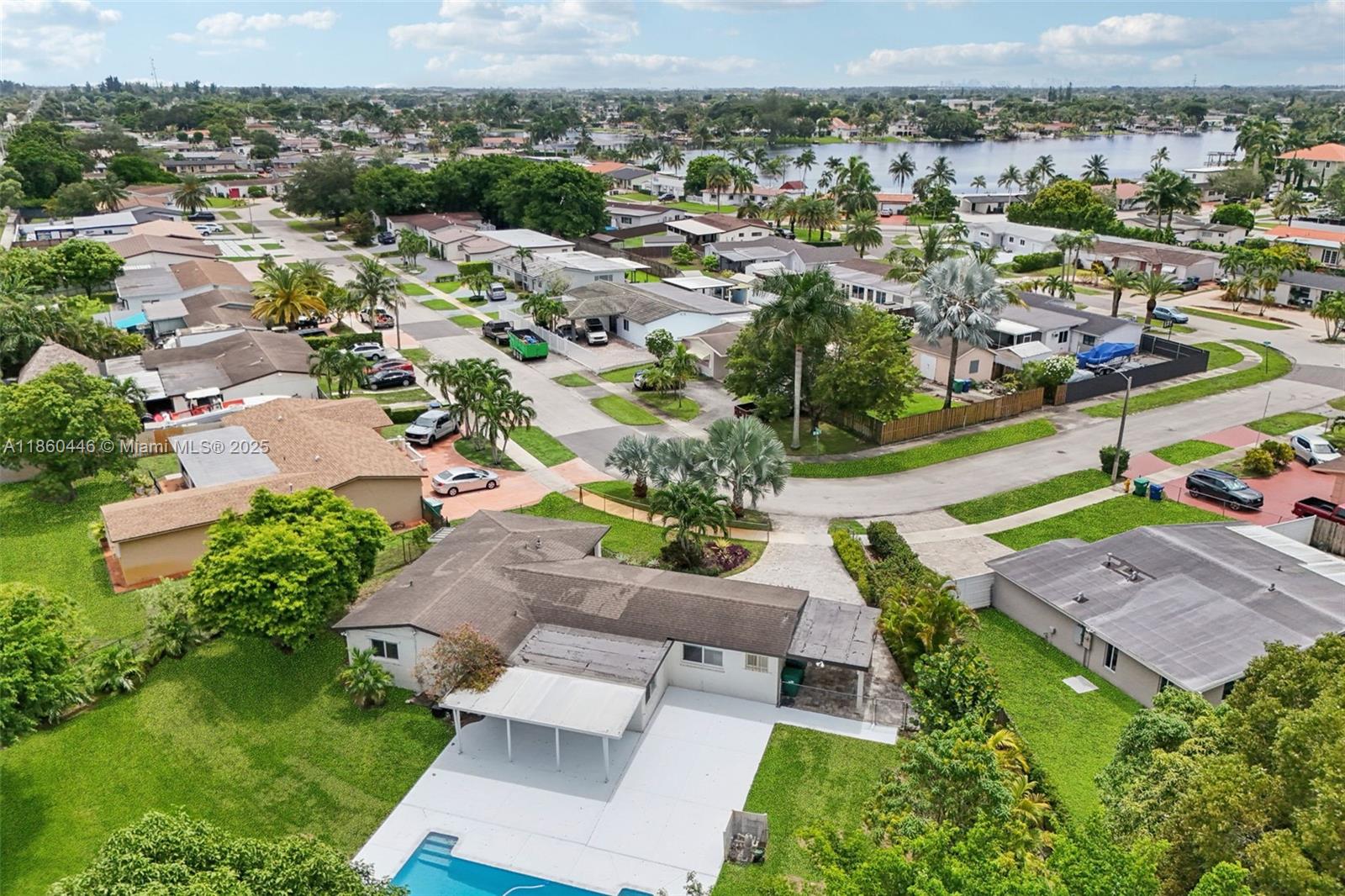 Beautifully maintained 3-bedroom, 2-bathroom, 1 car garage home offering 1,558 sq ft (as per appraisal) of comfortable living space on an incredible 18,491 sq ft lot. Enjoy a recently resurfaced oversized pool—perfect for relaxing or entertaining. Step inside to find an open layout boasting an updated kitchen with gas stove and beautiful porcelain and terrazzo floors. The bathrooms have been recently renovated with modern finishes. The home is secured with impact windows and doors throughout, with just three openings protected by accordion shutters, qualifying you for the full insurance discount. Additional highlights include a large driveway with stylish pavers redone in 2024, built in closets, gas water heater as well as a freshly painted exterior. This home in move in ready!