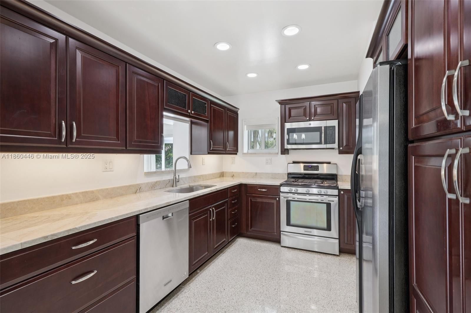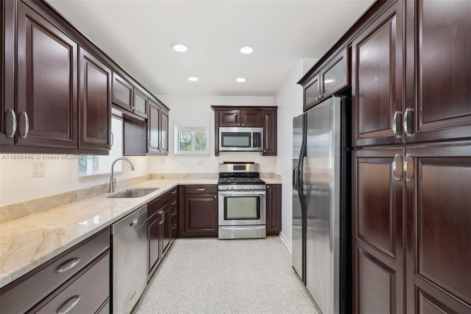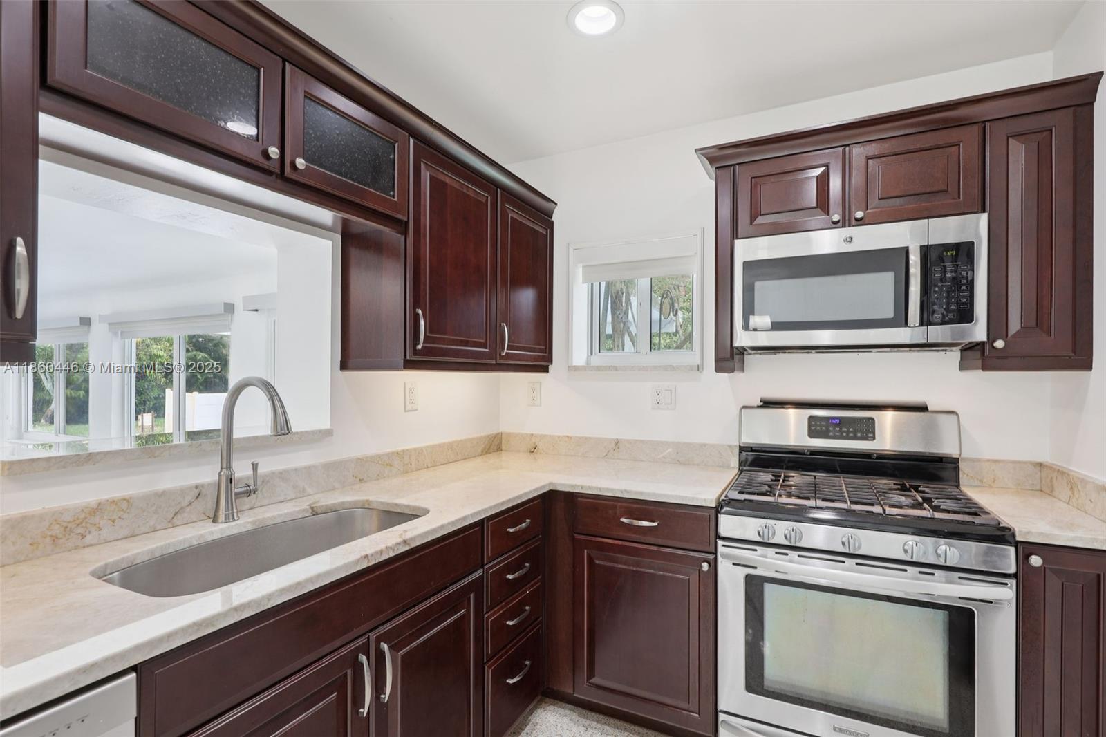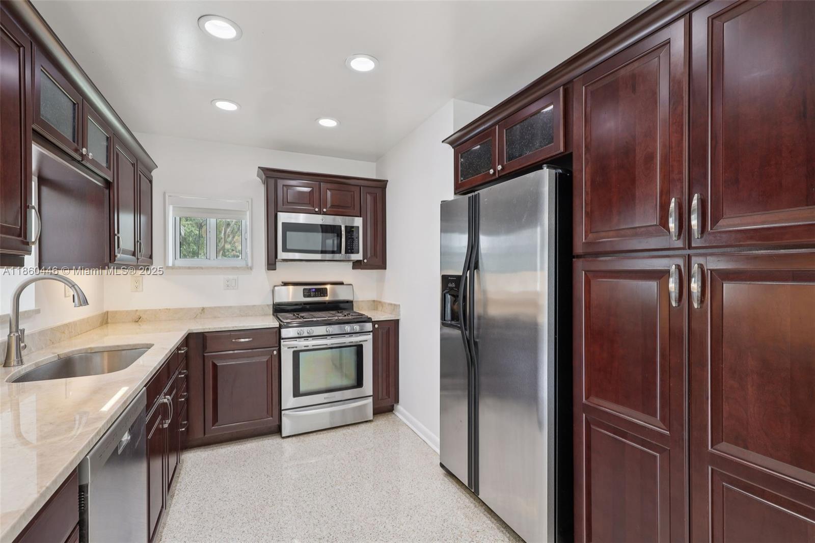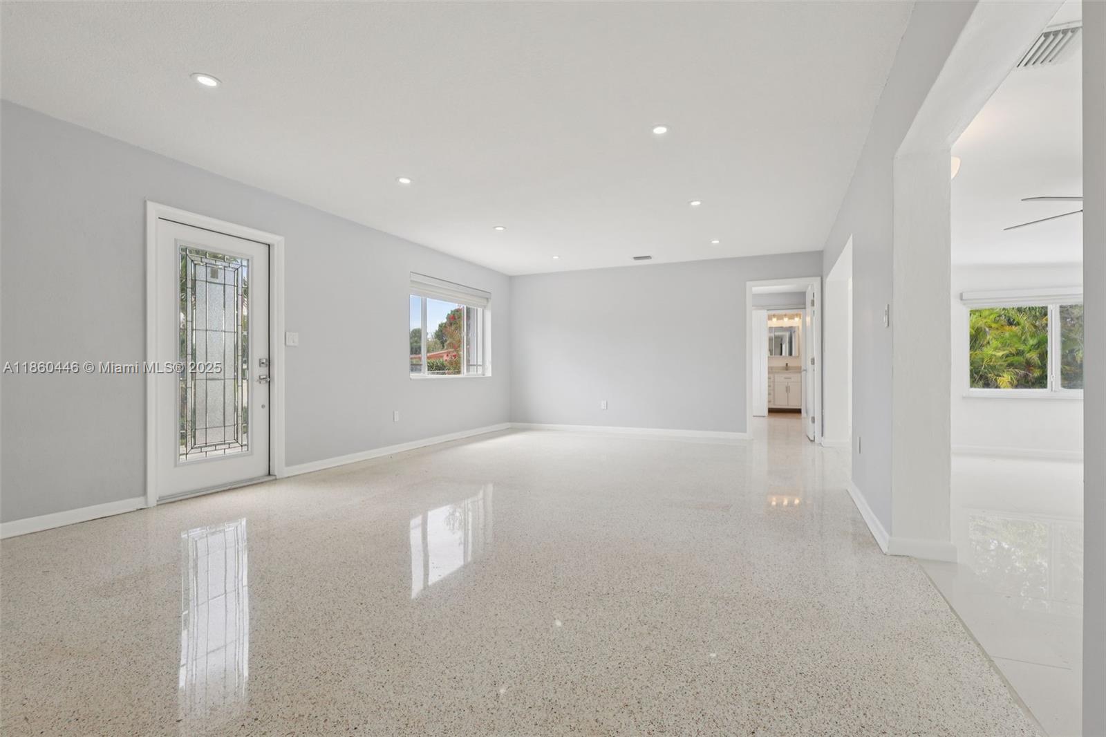 Beautifully maintained 3-bedroom, 2-bathroom, 1 car garage home offering 1,558 sq ft (as per appraisal) of comfortable living space on an incredible 18,491 sq ft lot. Enjoy a recently resurfaced oversized pool—perfect for relaxing or entertaining. Step inside to find an open layout boasting an updated kitchen with gas stove and beautiful porcelain and terrazzo floors. The bathrooms have been recently renovated with modern finishes. The home is secured with impact windows and doors throughout, with just three openings protected by accordion shutters, qualifying you for the full insurance discount. Additional highlights include a large driveway with stylish pavers redone in 2024, built in closets, gas water heater as well as a freshly painted exterior. This home in move in ready!