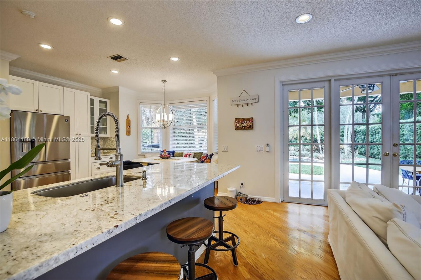 Discover your dream home on a quiet cul-de-sac! This stunning 4BR home impresses with soaring ceilings and a modern, open layout. The renovated gourmet kitchen is a chef's delight, featuring new stainless steel appliances, a custom breakfast bench, and a magnificent handcrafted wine cellar. Unwind in the expansive master suite, complete with a flex room and a spa-like renovated bath with a soaker tub. Step outside into your private backyard oasis with a lush landscape, a heated saltwater pool, and a custom cooking station built for your Kamado-style grill (The Big Green Egg)—perfect for entertaining! An extended driveway offers ample guest parking. This meticulously updated home is the perfect blend of modern luxury and family comfort. Your Weston lifestyle awaits!