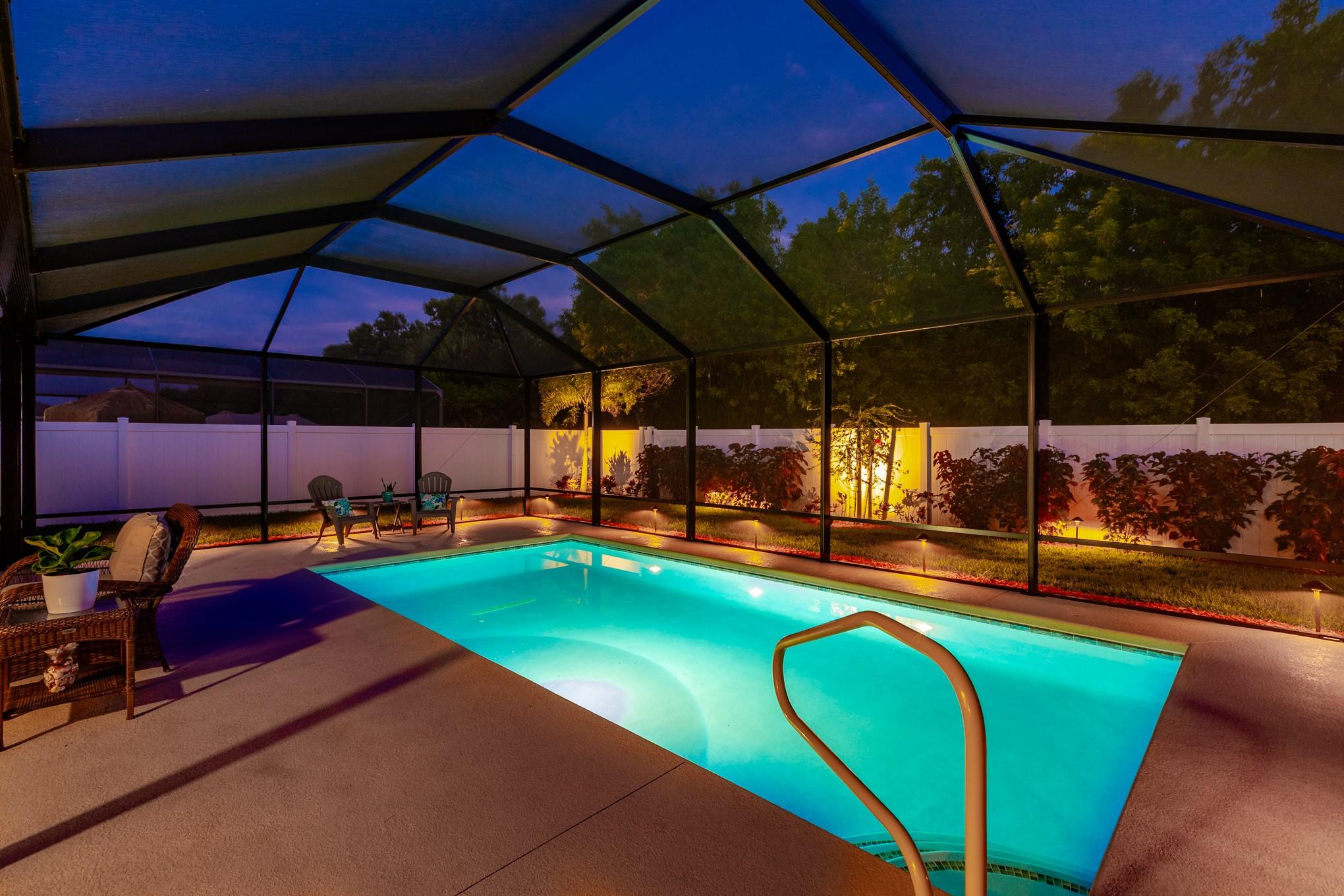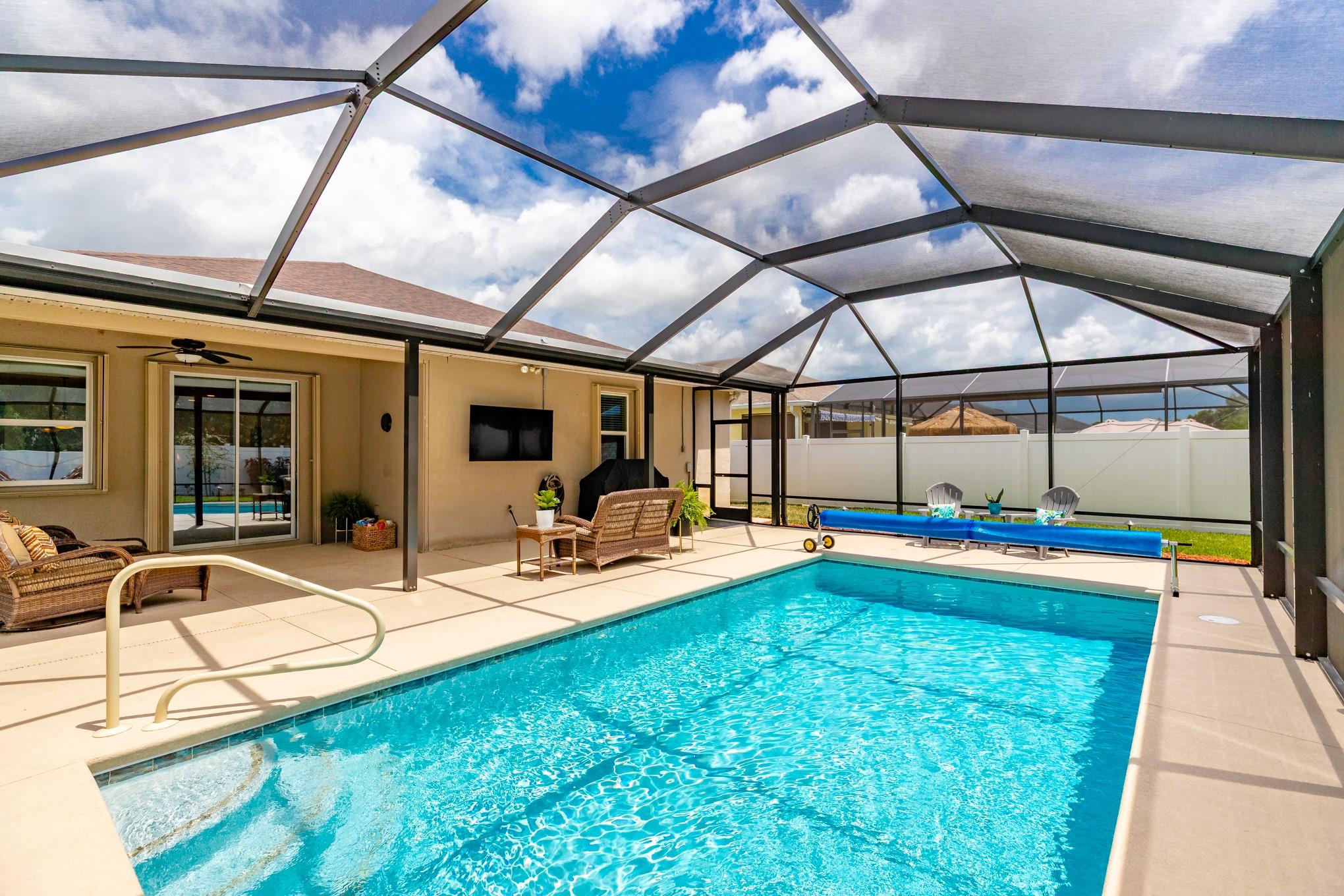 Spacious 4BR/2BA pool home in Sebastian River Landing! Fenced backyard, preserve view, covered lanai, new 2023 heated saltwater pool, screen enclosure, covered patio & landscape lighting give you the perfect opportunity to relax or entertain. Features an open-concept, split-bedroom floor plan, island kitchen w/ breakfast bar, SS appliances w/ new 2024 range, granite countertops, newly painted main living area & new 2025 washer & dryer. Community pool, clubhouse, tennis & basketball court. Start exploring all Sebastian, Florida has to offer - beaches, parks, waterfront dining & more!