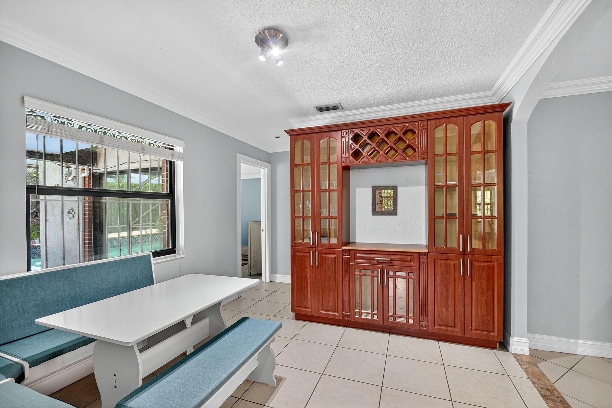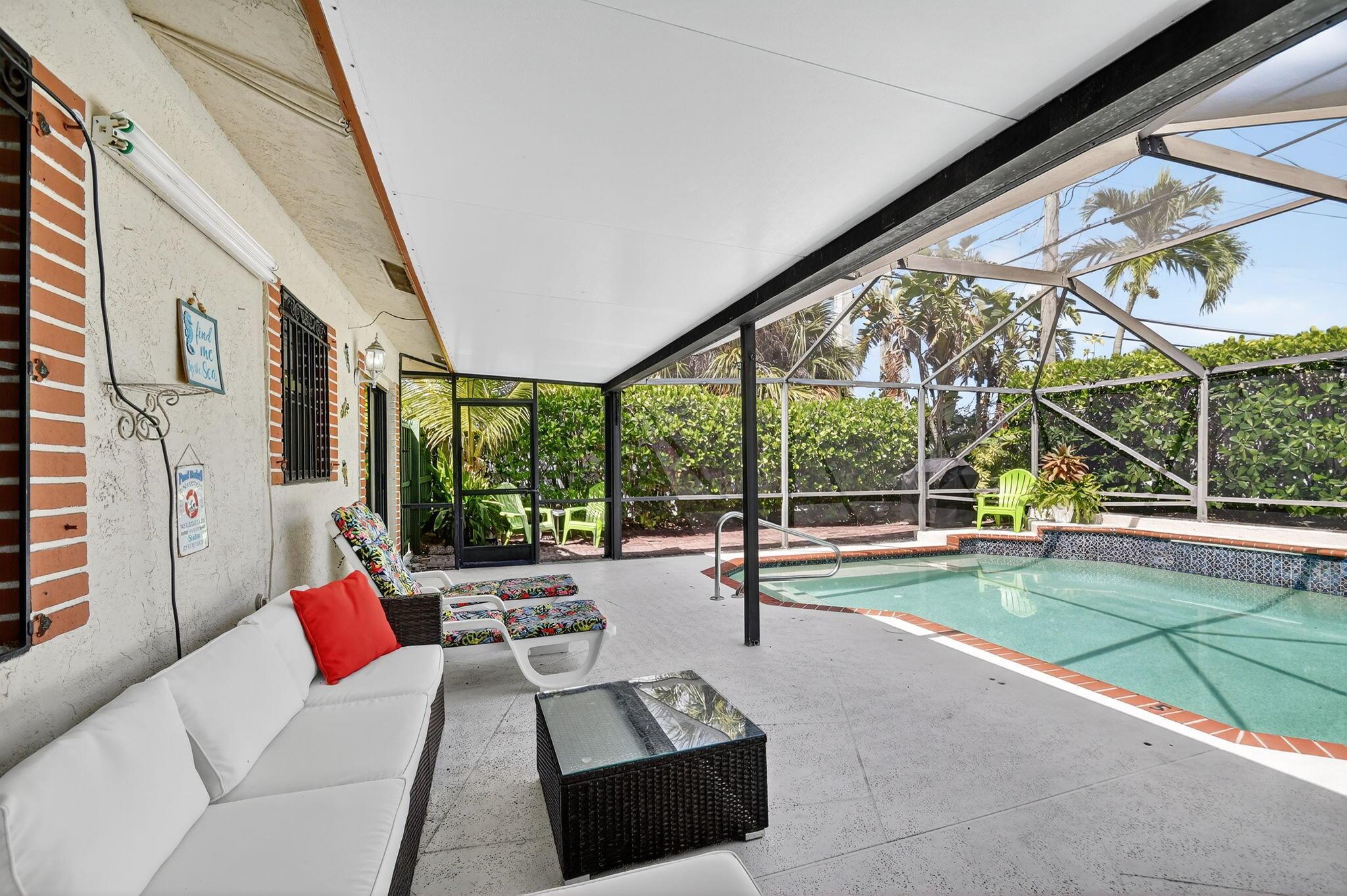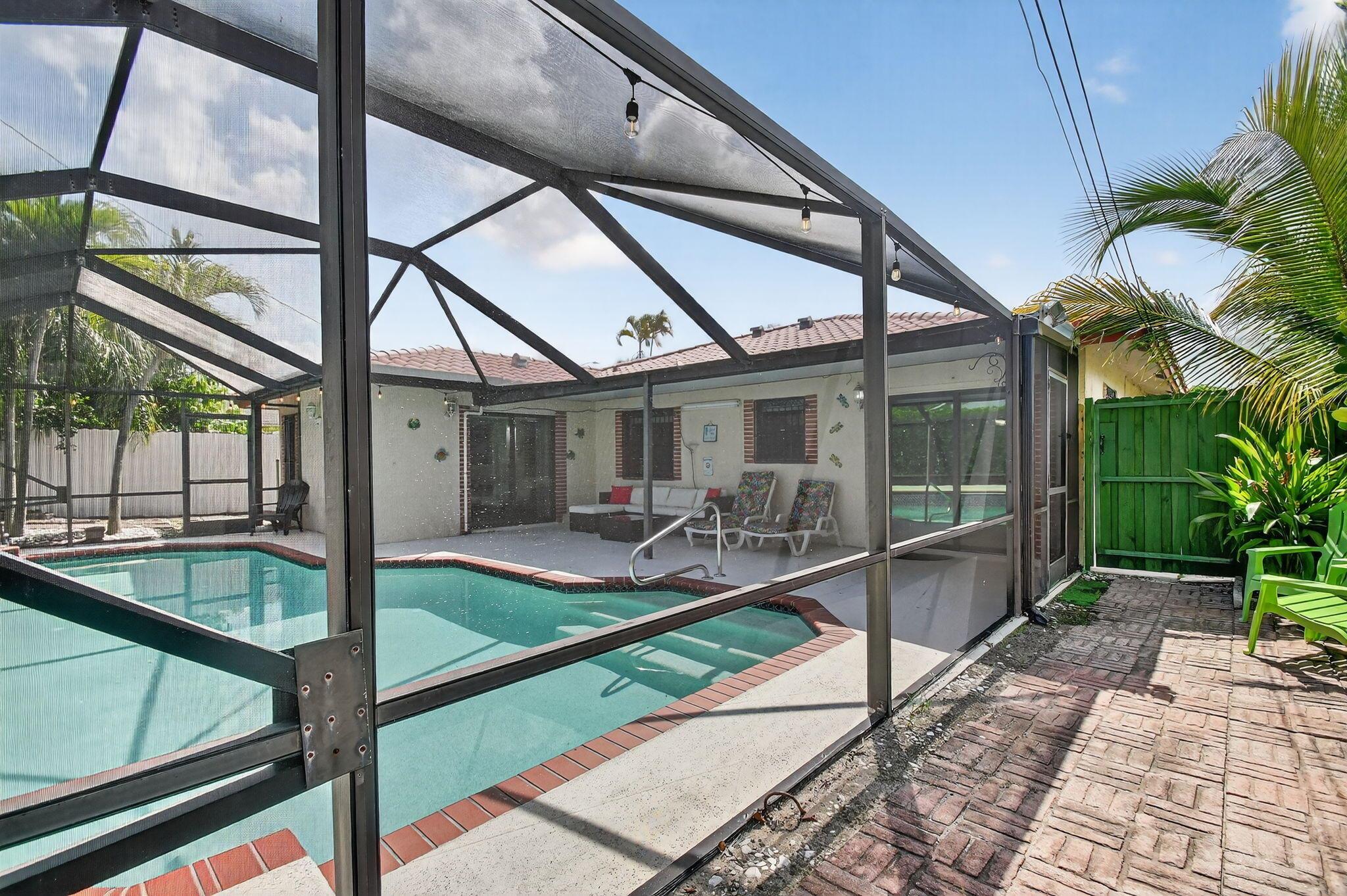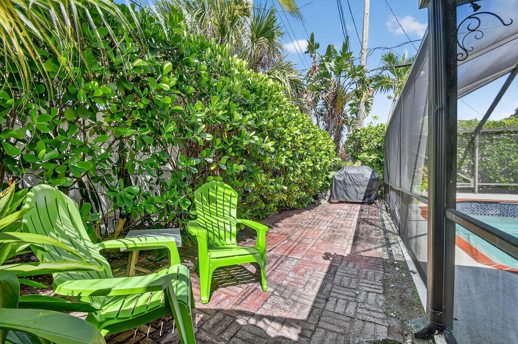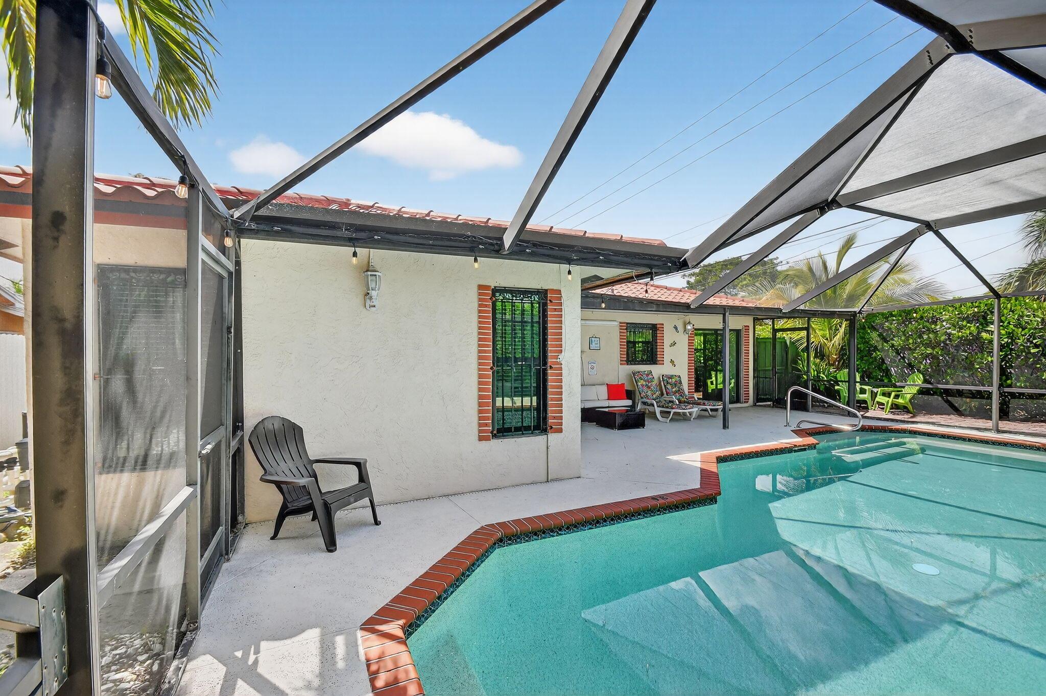 Turnkey vacation rental or family home at the end of the street, no through traffic, next to Dreher Park. A new roof (2022), new water heater, and impact windows, all tile floors home is move-in ready and built for peace of mind. The open-concept layout offers a bright and airy feel, with a large eat-in island kitchen showcasing granite countertops and stainless steel appliances. The split-bedroom floor plan ensures privacy, while the master suite includes a generous walk-in closet and a large bathroom. Sliding impact-glass doors provide direct access to the screened, heated pool w/seating, a waterfall, fenced yard clusia hedges!