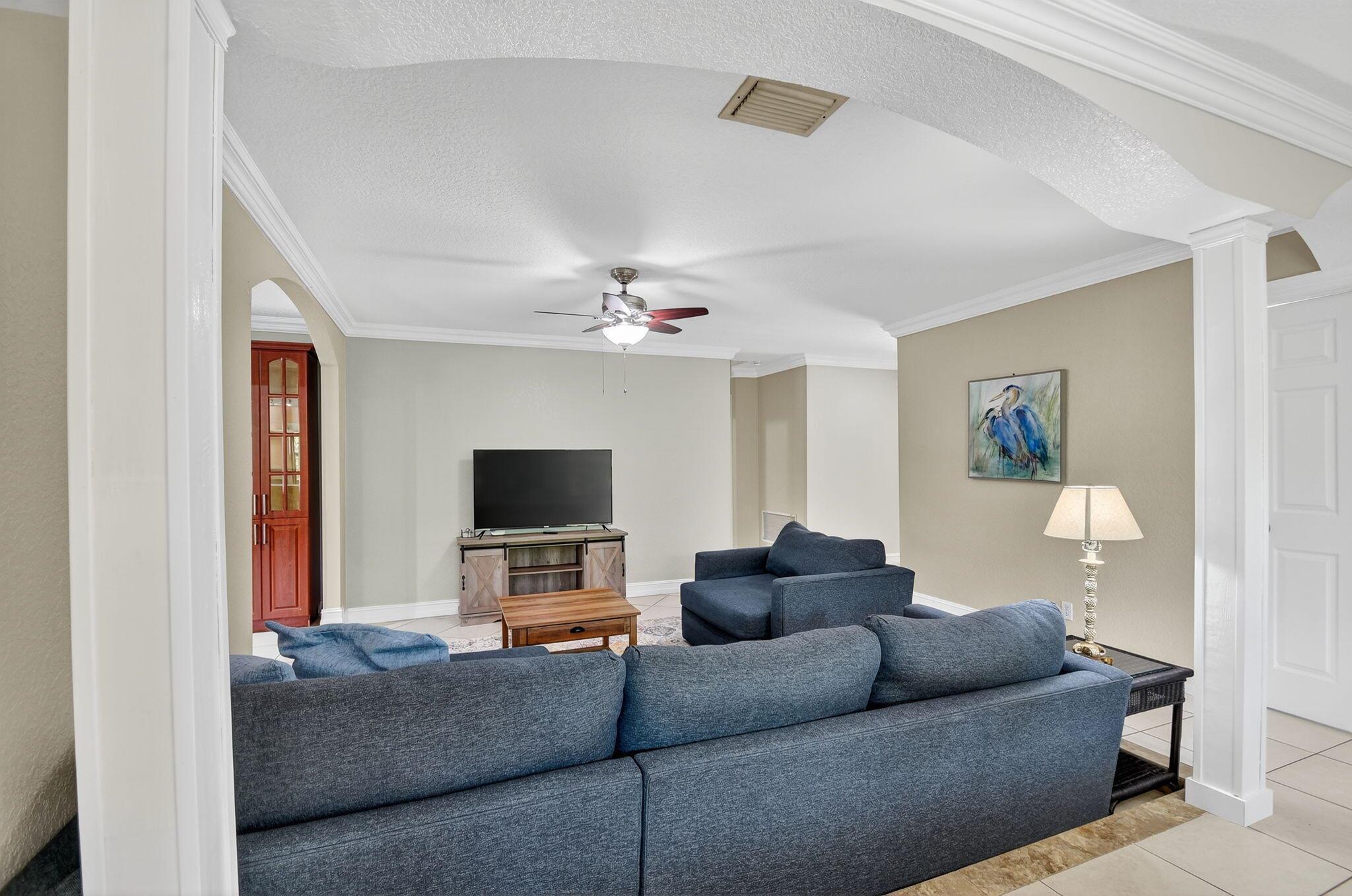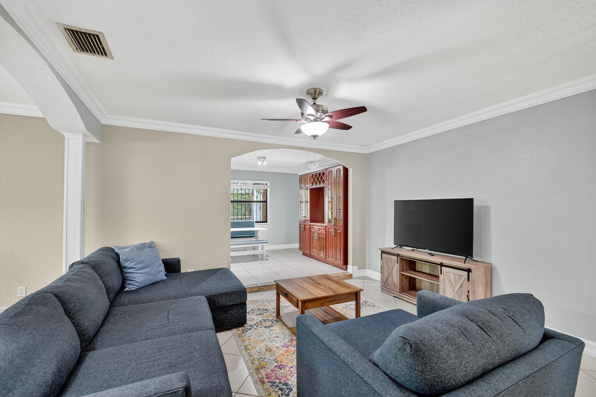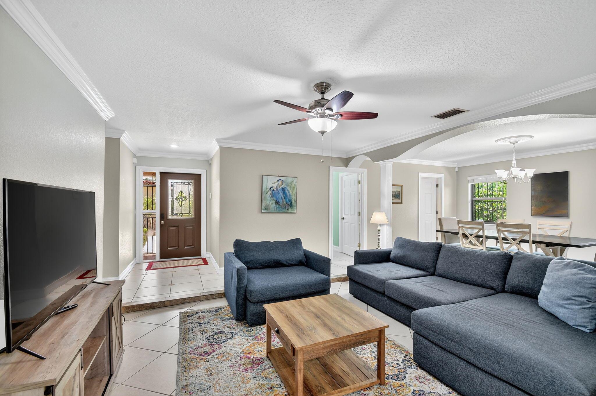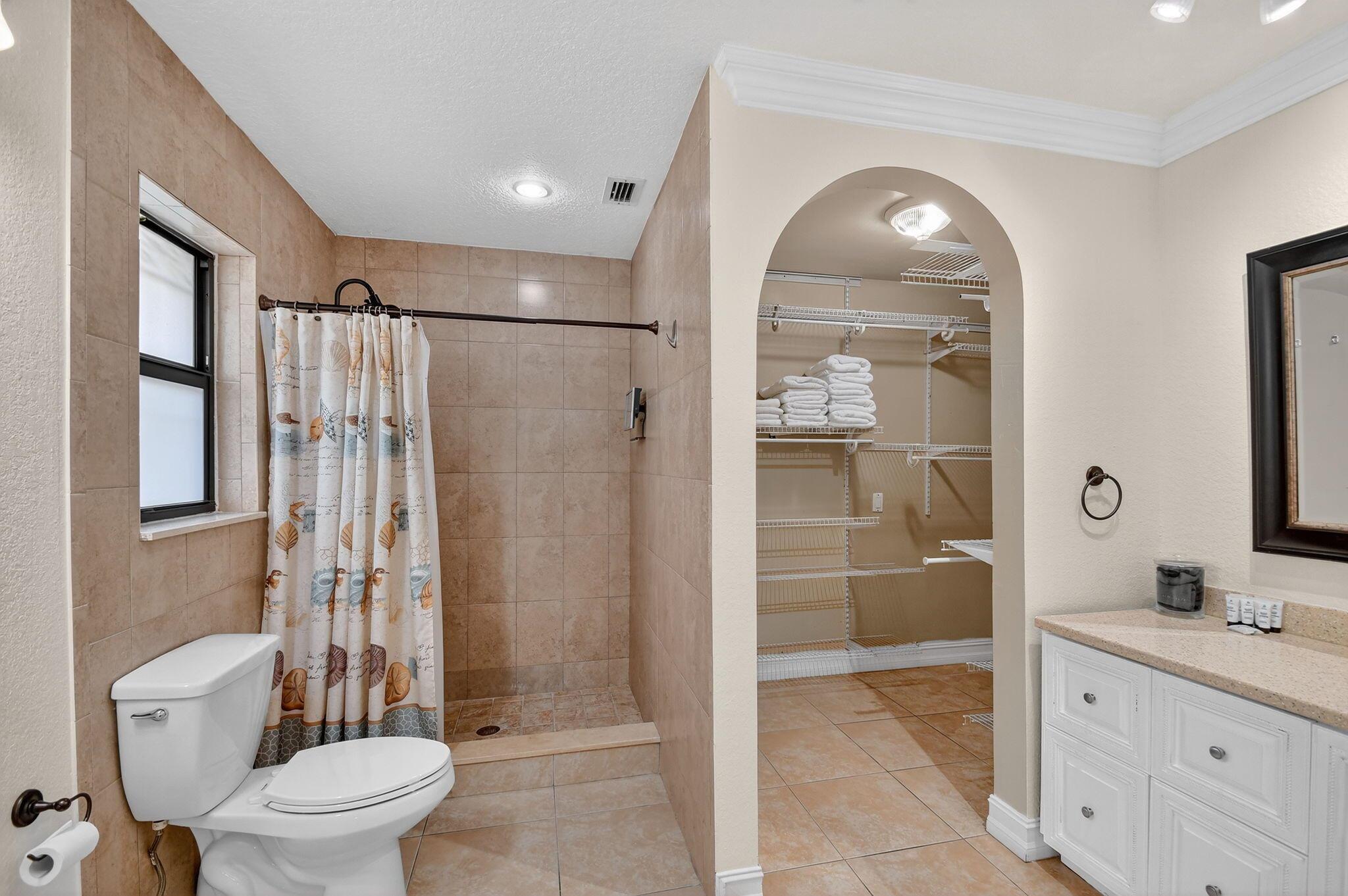 Turnkey vacation rental or family home at the end of the street, no through traffic, next to Dreher Park. A new roof (2022), new water heater, and impact windows, all tile floors home is move-in ready and built for peace of mind. The open-concept layout offers a bright and airy feel, with a large eat-in island kitchen showcasing granite countertops and stainless steel appliances. The split-bedroom floor plan ensures privacy, while the master suite includes a generous walk-in closet and a large bathroom. Sliding impact-glass doors provide direct access to the screened, heated pool w/seating, a waterfall, fenced yard clusia hedges!