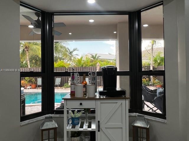 Ready to move in. 4 bedroom, 3 bathrooms, fully tiled throughout. 1 bedroom, 1 bathroom on the first floor currently being used as an office. High ceilings throughout, Open kitchen/dining room with all stainless steel appliances. Metal roof, impact windows, doors and garage door installed in 2025, 2-car garage with lots of storage, newer 5-ton air conditioner unit, newer washer and dryer (dryer is gas). Noritz gas water heater. Huge master bedroom that can accommodate a sitting area as well. Recently remodeled large master bathroom. Resort style pool with gazebo for vast entertaining. Gas pool heater and brand new salt water chlorinator. Low HOA quarterly fees. Ready for immediate occupancy.