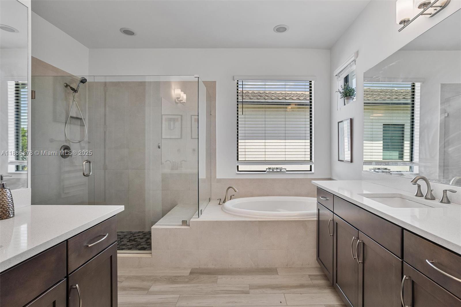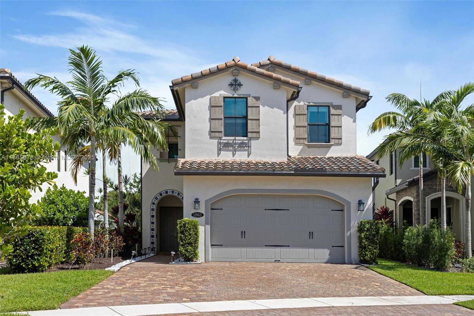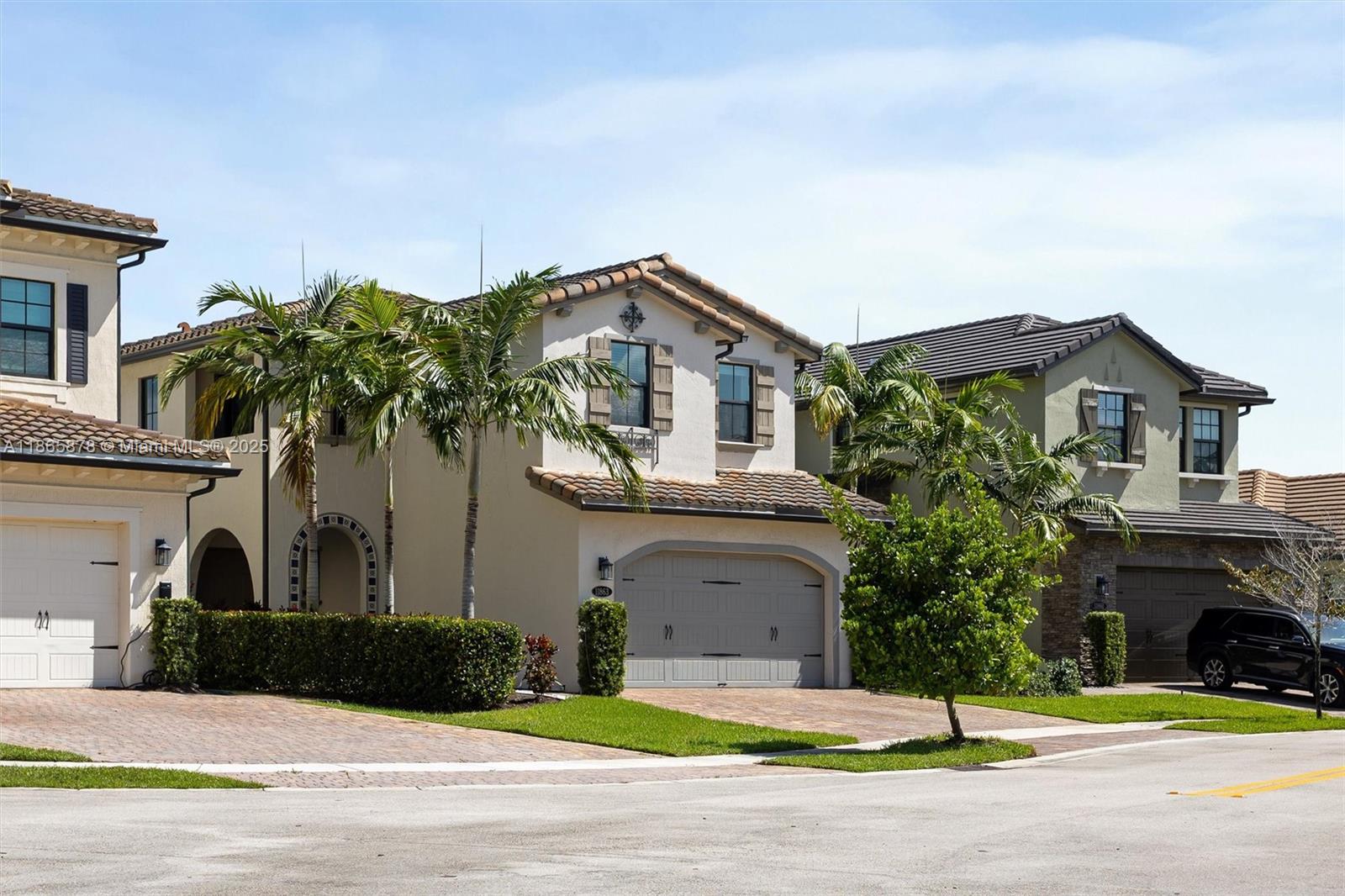Gorgeous 2019 lakeside 4Bed/3Bath home on cul-de-sac in the coveted Raintree community. Enter foyer to 20’ ceiling & chandelier & marvel at a clear view of the lake. Open concept great area is filled with natural light & anchored with kitchen of white quartz, dark wood, countertop stove, wall ovens and SS GE Profile apps. Exotic center isle & huge pantry. Downstairs has bedroom & full bath & is finished with ceramic (wood) tiles. Upstairs has vinyl floors & very nice master with custom closet, lake view, double basins, soak tub & glass enclosed shower. Laundry is upstairs with wash tub & counter. Home has 2 car garage with epoxy floor, hanging racks, storage room & shelves. Driveway was extended to accommodate 3 cars. Screened lanai. Community heated pool, gym, events room & picnic area.