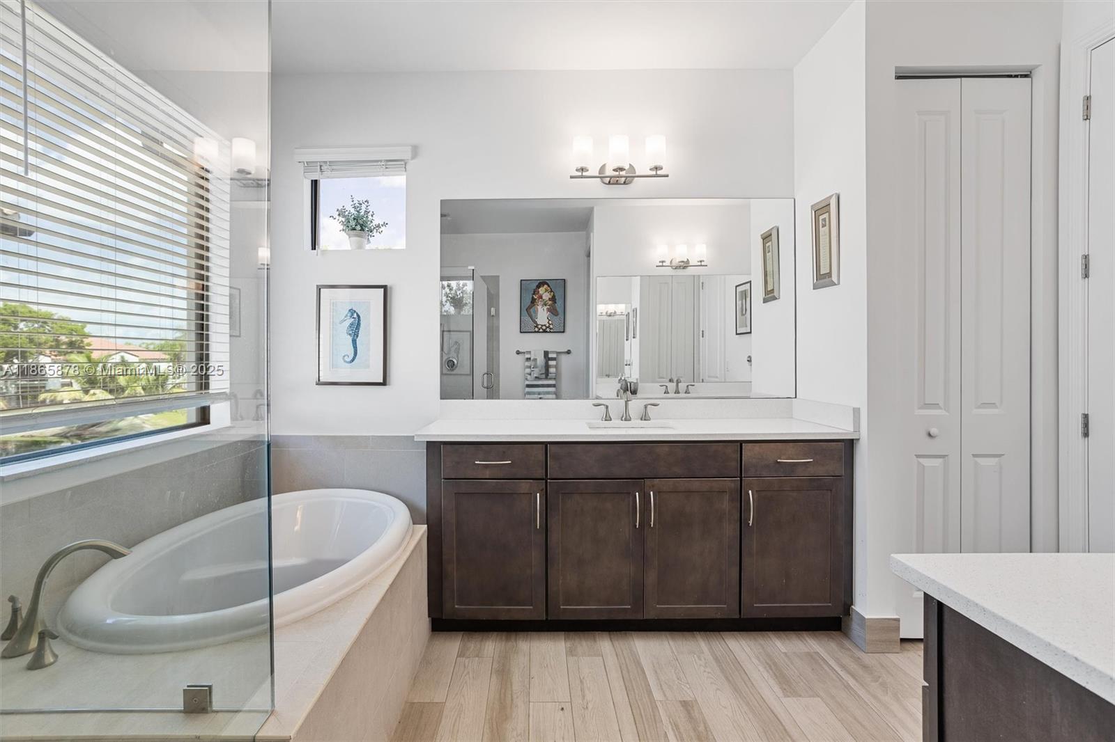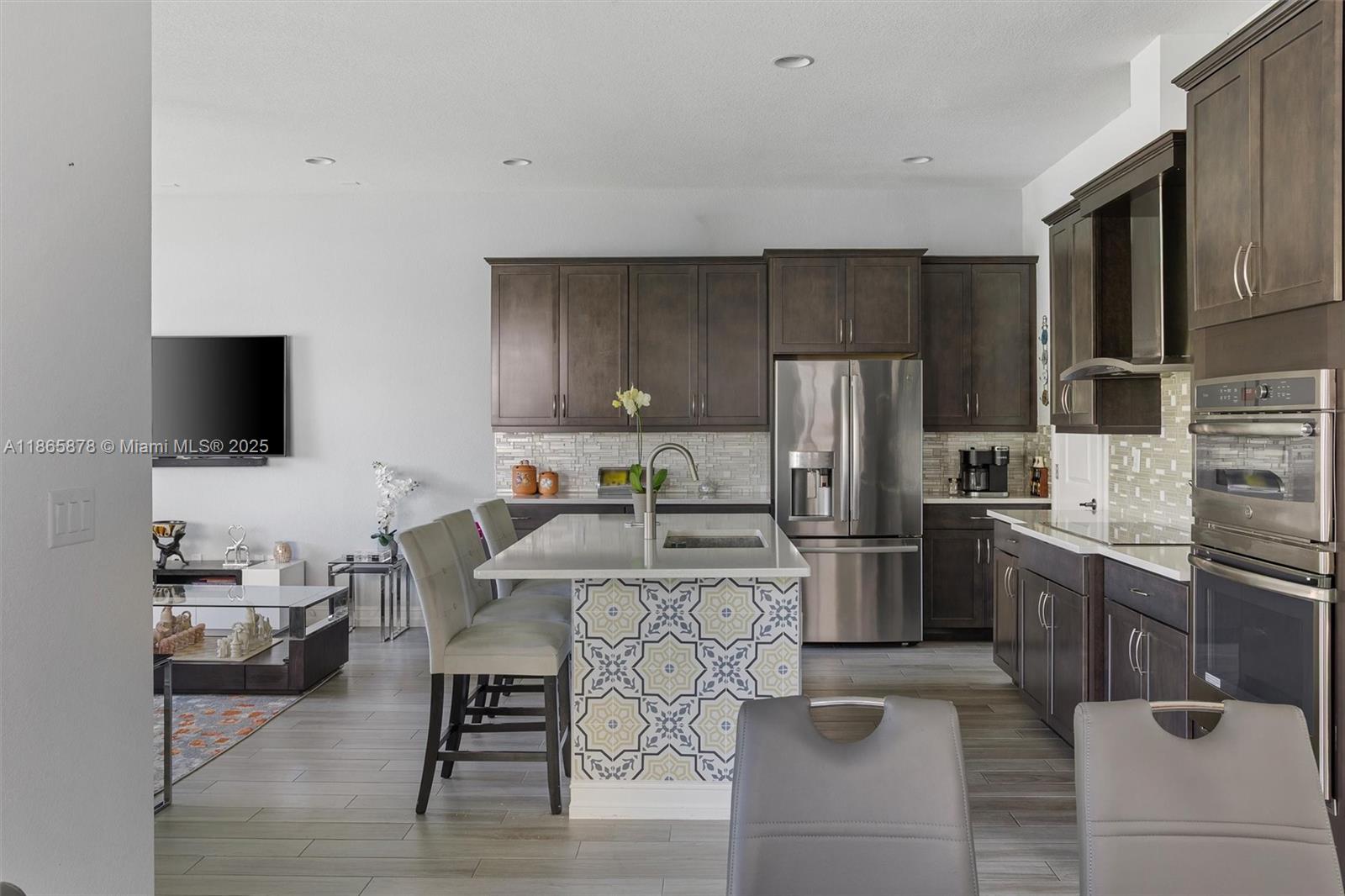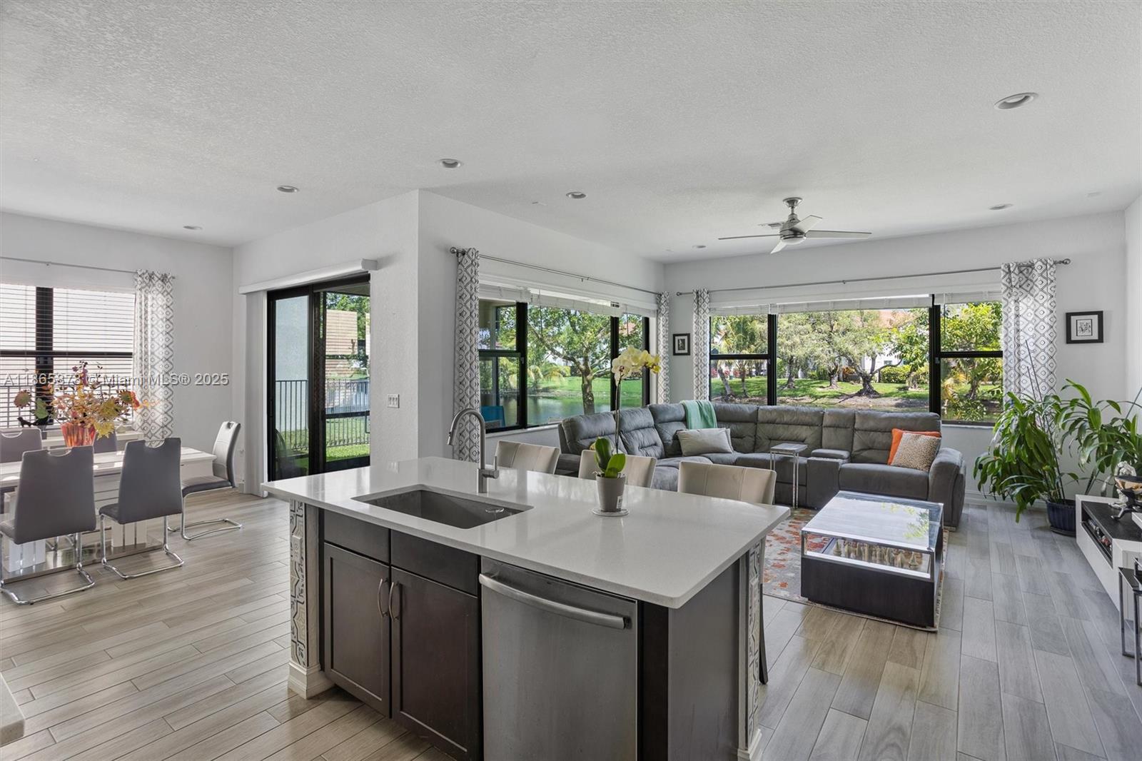 Gorgeous 2019 lakeside 4Bed/3Bath home on cul-de-sac in the coveted Raintree community. Enter foyer to 20’ ceiling & chandelier & marvel at a clear view of the lake. Open concept great area is filled with natural light & anchored with kitchen of white quartz, dark wood, countertop stove, wall ovens and SS GE Profile apps. Exotic center isle & huge pantry. Downstairs has bedroom & full bath & is finished with ceramic (wood) tiles. Upstairs has vinyl floors & very nice master with custom closet, lake view, double basins, soak tub & glass enclosed shower. Laundry is upstairs with wash tub & counter. Home has 2 car garage with epoxy floor, hanging racks, storage room & shelves. Driveway was extended to accommodate 3 cars. Screened lanai. Community heated pool, gym, events room & picnic area.