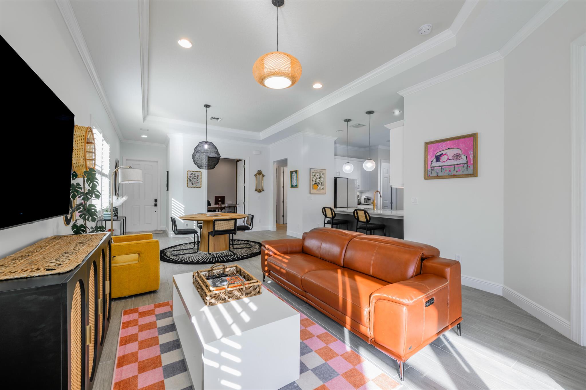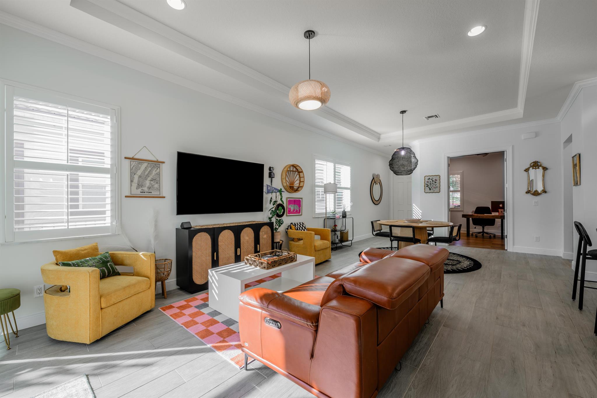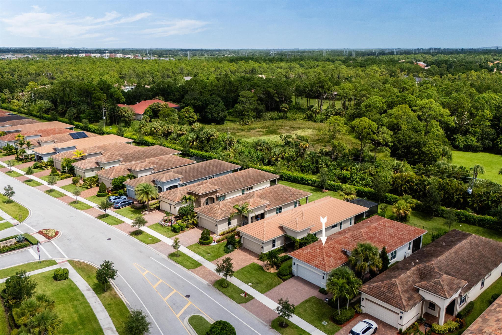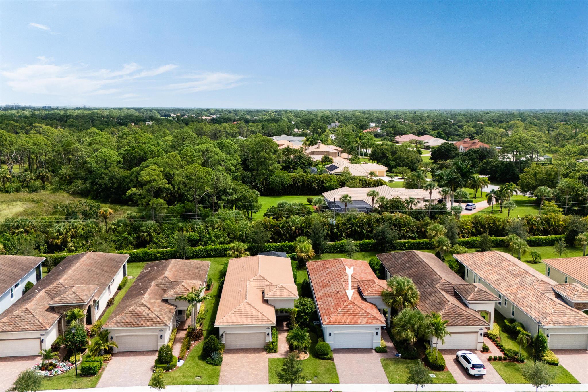 Welcome to 11341 SW Visconti Way, a stunning Arezzo model villa in the prestigious PGA Verano community of Port Saint Lucie. This meticulously maintained 2-bedroom, 2-bathroom home, plus a versatile den, offers 1,515 square feet of elegant living space, built in 2020 with modern finishes and thoughtful design throughout.Step inside to an open and airy floor plan flooded with natural light, featuring 10-foot coffered ceilings, crown molding, custom closets, plantation shutters and hurricane impact-resistant windows for peace of mind. The gourmet kitchen is a chef's dream, boasting white shaker-style cabinets, gleaming quartz countertops, a stylish tile backsplash, pendant lighting, bespoke appliances, and a custom walk in pantry.