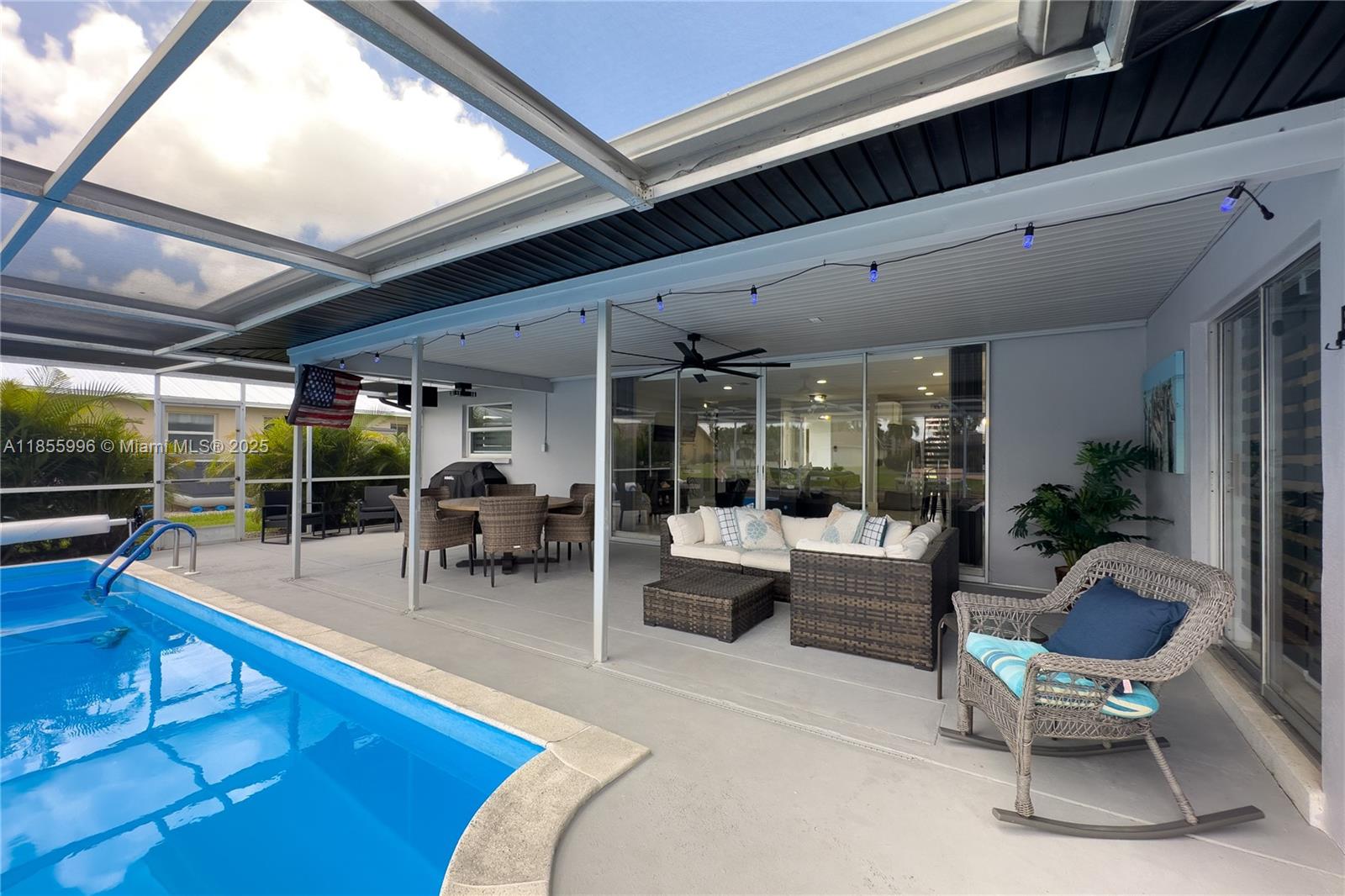 Welcome to your dream oasis in the Palaco Grande neighborhood on the scenic Rainbow Canal. This fully remodeled turnkey pool home is in Flood Zone X500. Upgrades include new roof, AC, impact windows, flooring, quartz kitchen, updated baths, window treatments, landscaping, and exterior paint. Open floor plan with stylish furnishings flows to massive sliders and lanai overlooking the canal. Perfect for boaters with sailboat access, no bridges, and oversized pilings for a large yacht. Entertain under truss or relax at the dock with patio seating. Features a 2-car garage, proven rental history, and utilities paid. Move-in ready—just bring your suitcase!