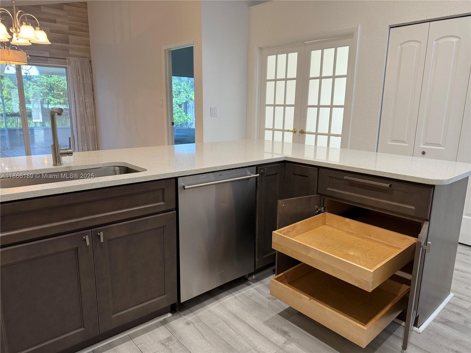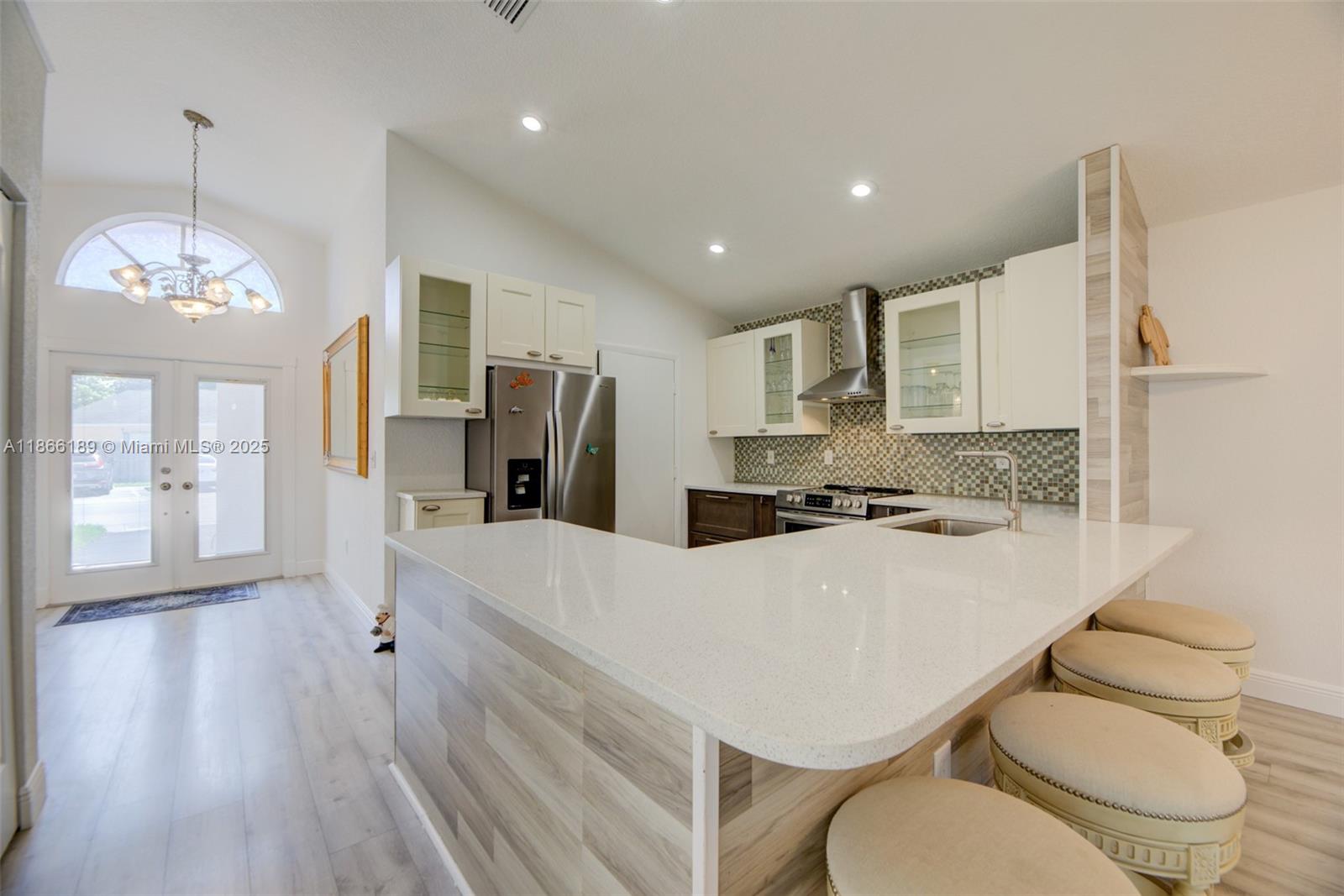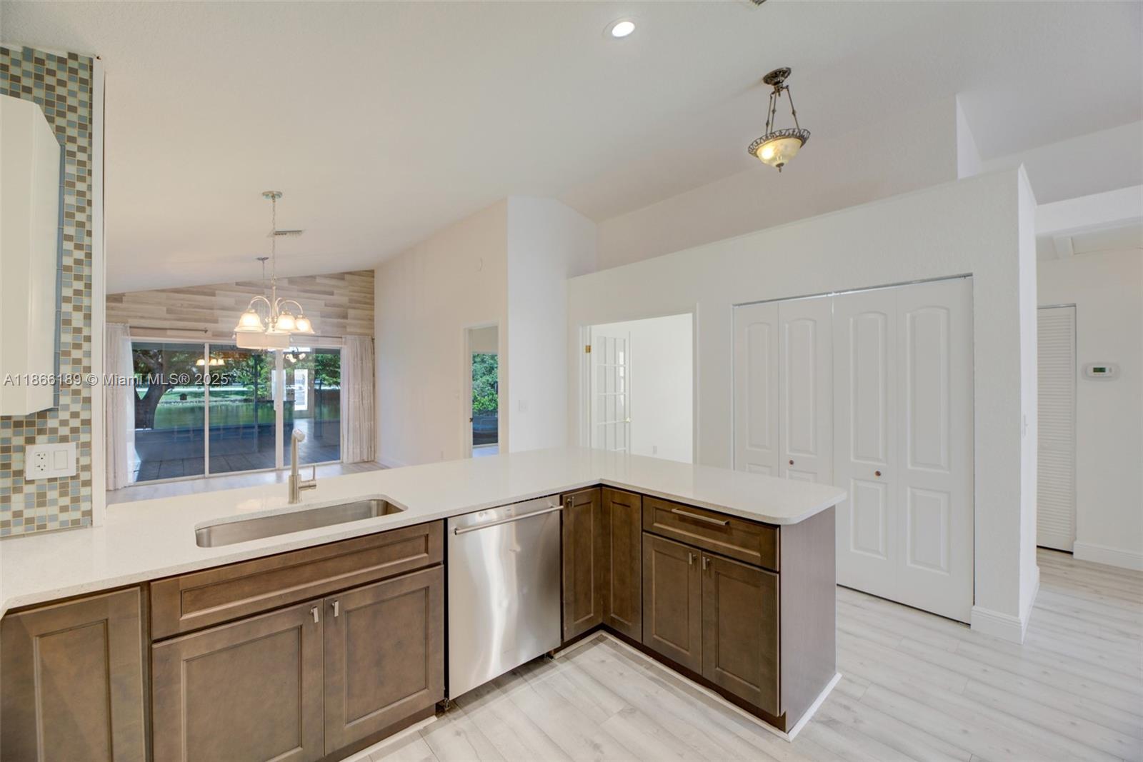 Welcome to this beautifully remolded 3 bedroom, 2 bath, lakefront home. The kitchen has crisp white quartz countertops and is equipped with high end stainless steel appliances and matching hood placed over the range. The cabinets are high quality, two tone, made of solid wood w pull out spice racks, lazy Susan, and pull out draws. The open bright and airy floor plan welcomes you w stylish durable luxury vinyl plank flooring. Relax in the oversized screen patio which provides uninterrupted peaceful views of the lake. Hampton Lakes offers an excellent school system and peaceful living quaters with a community pool for your enjoyment.