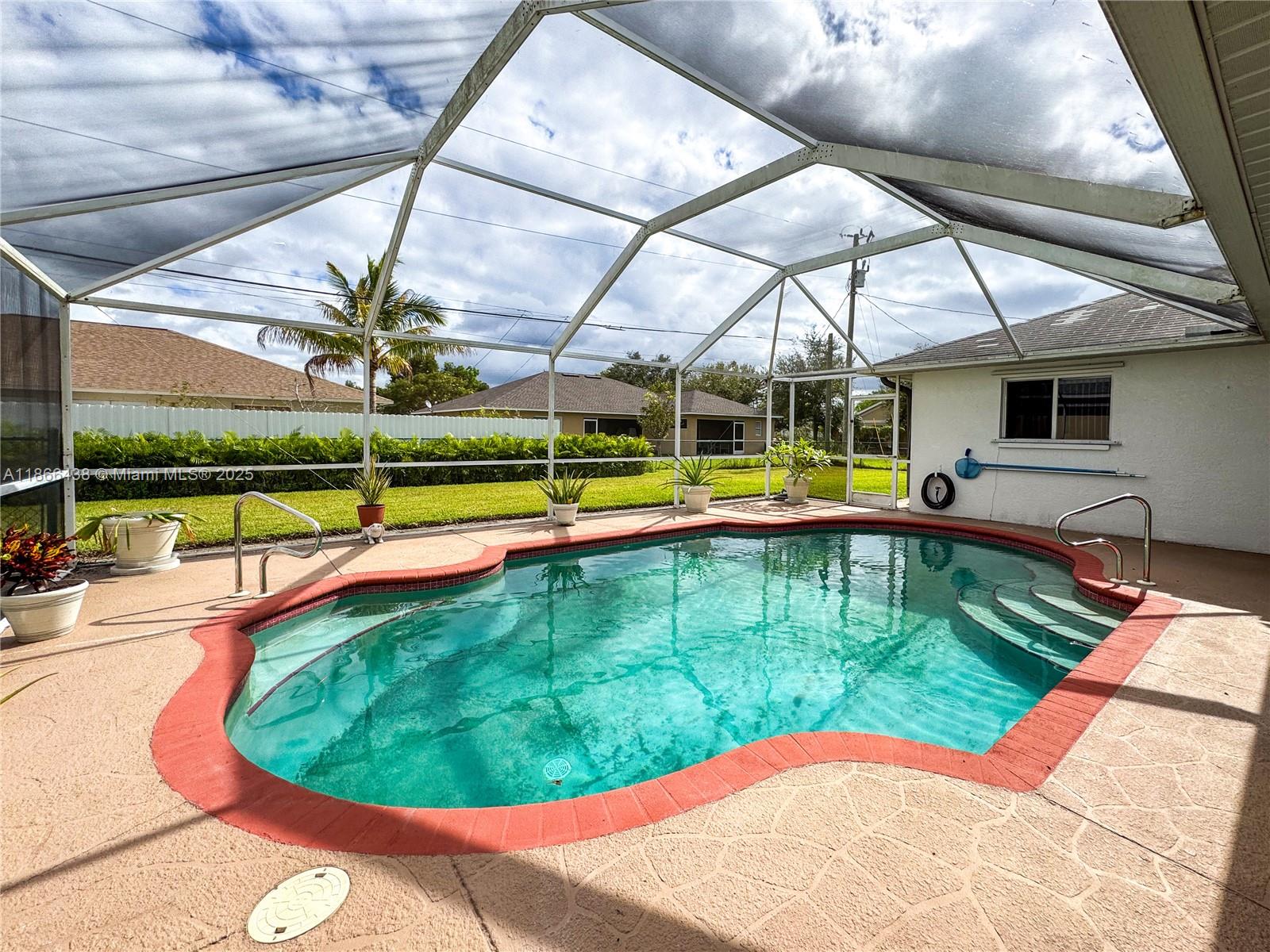 New roof completed March 2025. Flood Zone X500. Come and see the Florida living at its best. With the oversized pool, fenced area for your favorite pet. The massive under truss lanai will handle all your outdoor meals and has room to entertain. The under truss lanai measures 14' X 34'. This 3 bed two bath home is a tad over 2000 sq ft. The electric panel is a Square D, the water is supplied by a high end Manabloc system. The AC was updated in 2024 and the home comes with a full set of Aluminum (easy to handle) storm shutters. Favorable flood zone X500.