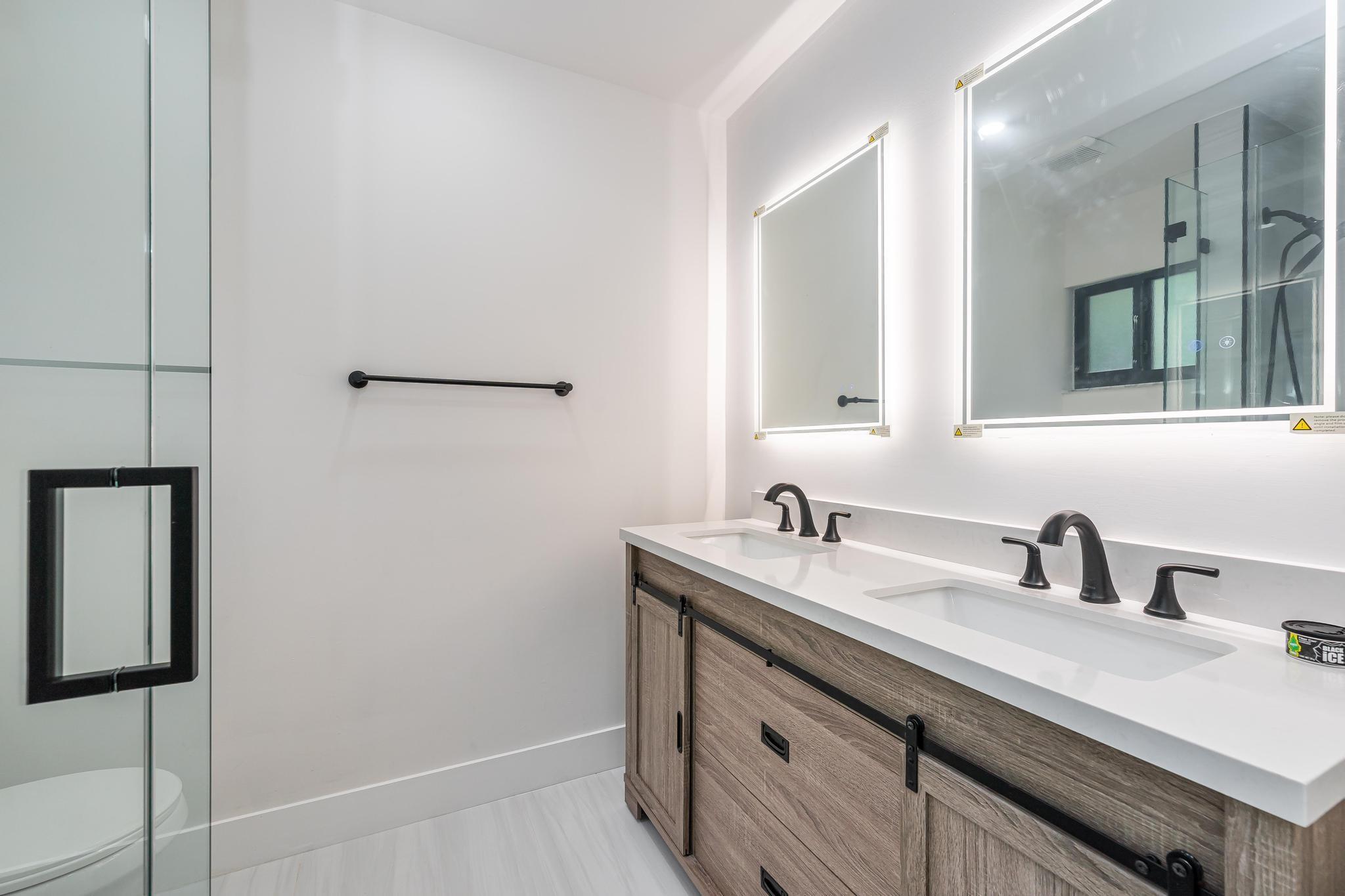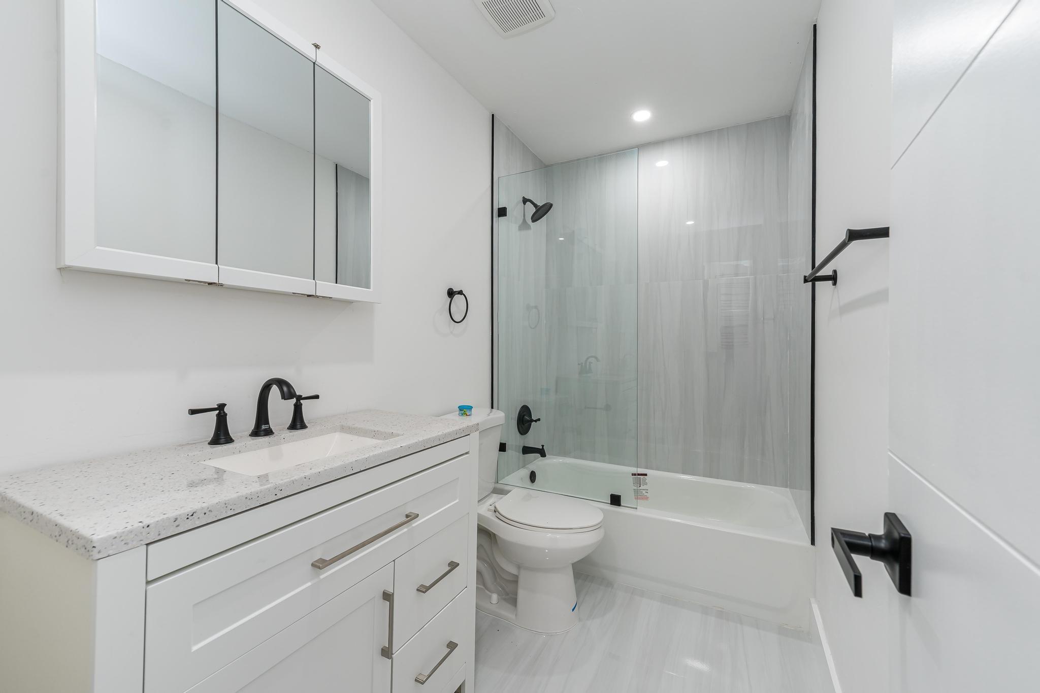 Nothing to do but bring your furniture! This home is fee simple, so you won't face the typical financing restrictions and headaches of condos. Low HOA fees that includes water give you peace of mind and affordability. This stunning 3-bed, 2.5 -bath townhouse has is turn key, offering modern finishes and a fresh, inviting feel. This home features all hurricane impact windows and doors. Step into a sleek, contemporary kitchen featuring modern cabinetry and quartz countertops. The bathrooms have been beautifully upgraded with luxurious 24"x48" tiles, new vanities, and LED mirrors, creating a spa-like atmosphere. Enjoy new vinyl flooring throughout for a clean and cohesive look, plus a spacious private screened patio perfect for entertaining or relaxing outdoors.