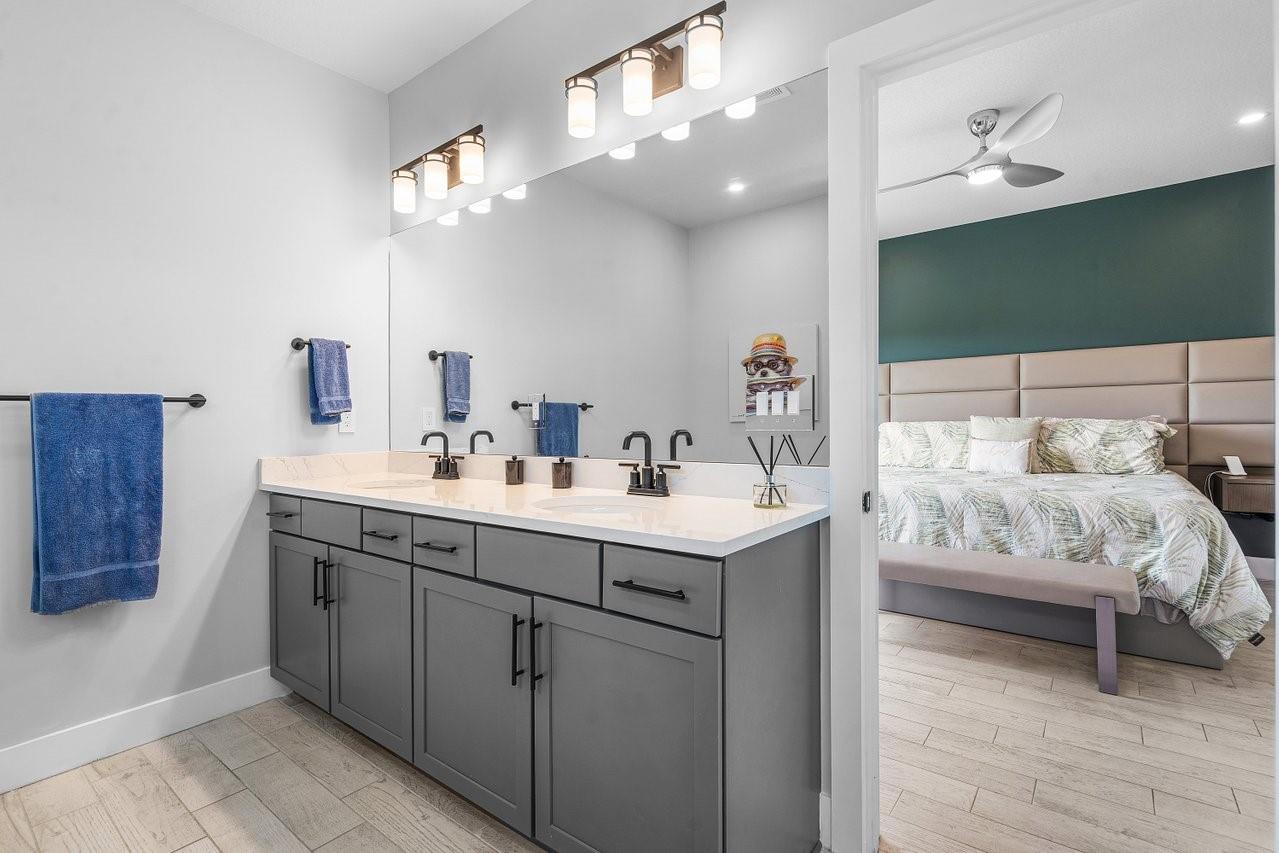 Welcome Home to this "better than new' 3 bedroom 2.5 bath townhome in the gated community of Oak Tree. This home features open concept living on the main level including a gourmet kitchen, Kitchen-Aid appliances, large island. built-in pantry with extra storage and wood grained tile floors throughout. The new wood and metal staircase leads up to your large primary bedroom with custom walk-in closets and a primary bath with separate tub and glass enclosed shower. The separate laundry room, second bath and two other bedrooms, with custom closets, share the upstairs floor. This is a complete "smart" home with motorized shades, LED smart recessed lighting throughout, built-in rear speakers in living room, Ecobee thermostat and tankless water heater. Call today for your private showing.