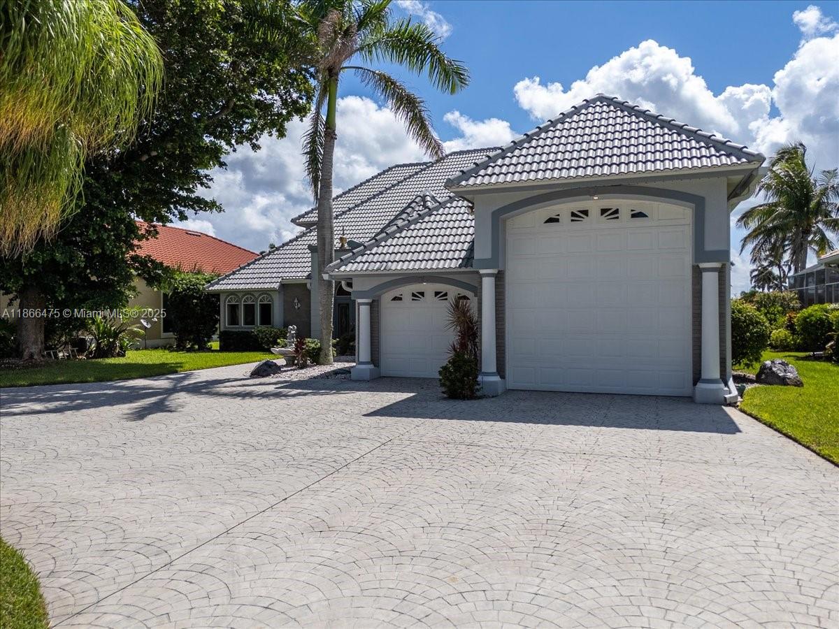 Custom-Built Estate with Lake & Golf Course Views! Nestled in the gated Water’s Edge community along the Caloosahatchee, this 3,238 sq. ft. 3BD/3.5BA home blends elegance with comfort. Built in 1994 and meticulously cared for by its original owner, it boasts soaring ceilings, an open layout, and breathtaking views. The spacious screened lanai offers an inground spa, built-in grill, and serene lakefront vistas. The primary suite is on the main level, while two ensuite bedrooms upstairs open to a private balcony. Additional features include a home office (or 4th bedroom), RV garage with hookups, updated tile roof (2023), 2 HVAC systems, hurricane shutters, and lush landscaping. Partially furnished if desired. HOA amenities include boat slips, storage, launch to the river, pool and more!
