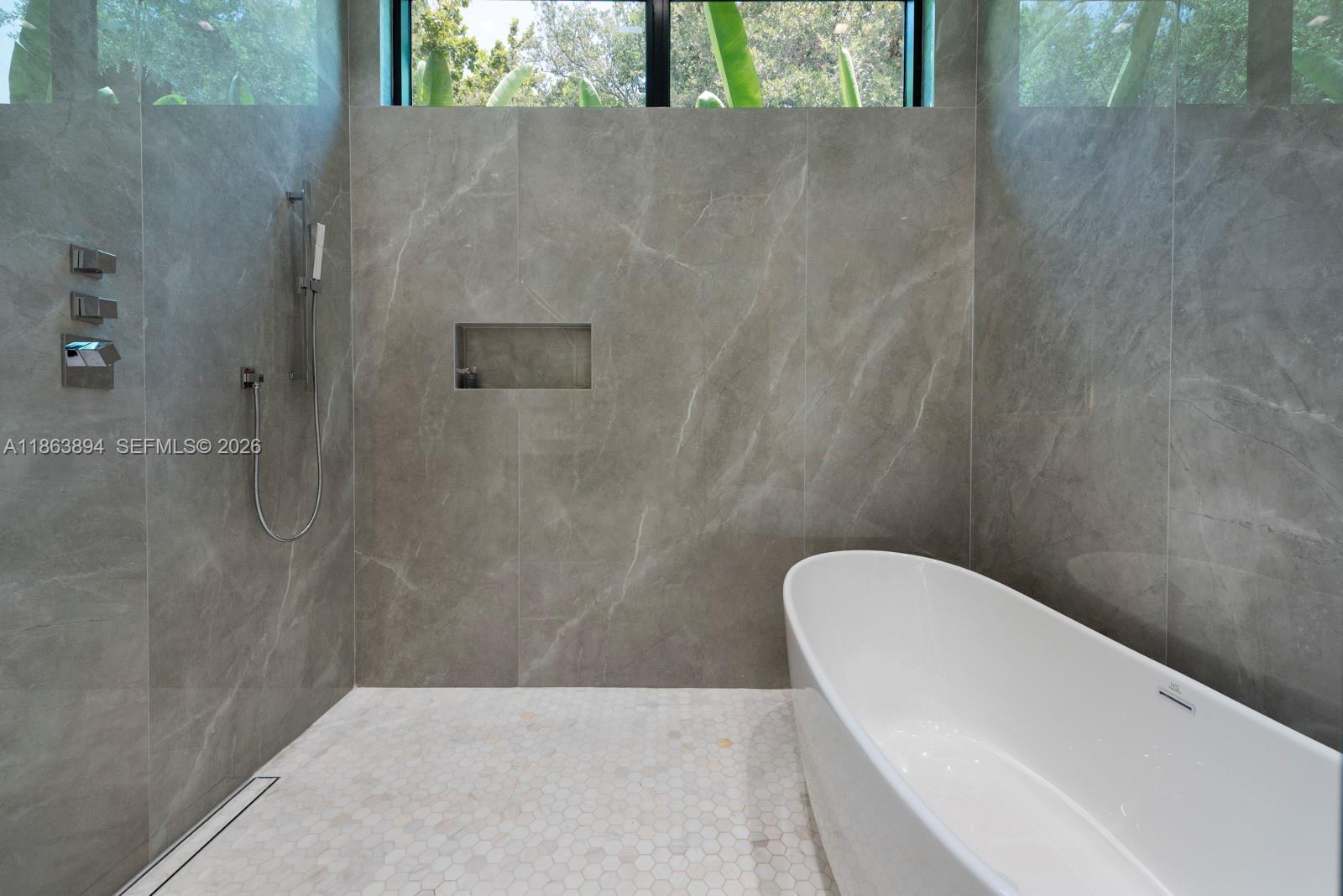 Brand New impeccably designed 5/5.5 home w/ grand indoor-outdoor living. Step through the front door to find yourself in your own private retreat nestled in deep green foliage. Every room is its own suite w/ spa like bathrooms, walk-in closets & bright open design. Enjoy flawless attention to detail w/ top of the line designer finishes incl a gourmet Eat-In Kitchen made for entertaining, Wine Storage, giant walk-in Pantry, Media Room & Open Dining overlooking lushly landscaped outside entertainment area. Nothing beats the resort feel of this saltwater pool, summer kitchen & cabana bath, all secluded in your own private Tropical Oasis. Lutron, Sonos, Smart Blinds/Doors, Security, Air conditioned 2-car garage. All in desirable Miami Shores, near MiMO shops, restaurants, A+ schools, parks