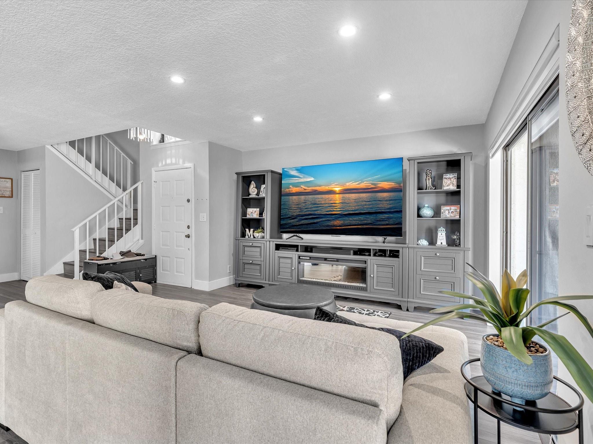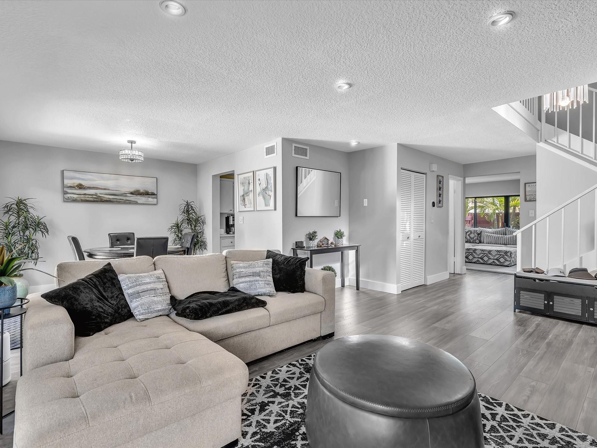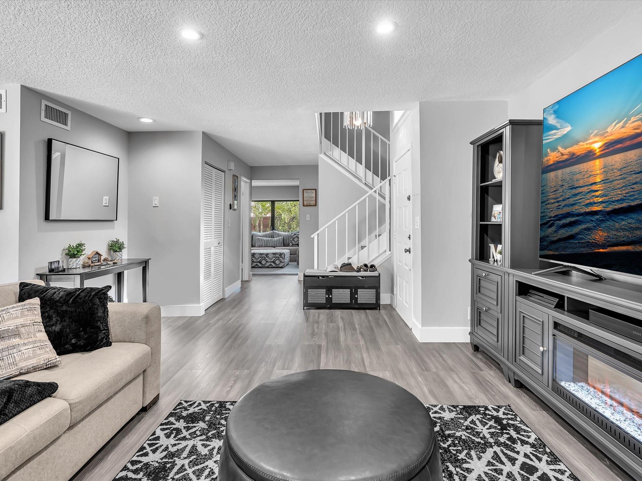 Beautifully Updated Corner Unit Townhome in the Lakes of Emerald Hills. Over $100,000 in recent renovations. Unit features two patios and a balcony; dedicated theater room with 120 inch ambient light rejection projector screen, theater grade 4K laser projector, and premium sound system; 3 fully renovated bathrooms with modern finishes; new waterproof laminate wood flooring and new baseboards throughout; new kitchen appliances; brand new stackable washer & dryer combo (upstairs); AC 2 years old; roof replaced in 2017. Prime location in the highly desirable Lakes of Emerald Hills community. Location Highlights: directly across from a park with playground, dog park, and walking trail; just steps from the community pool; walking distance to places of worship.