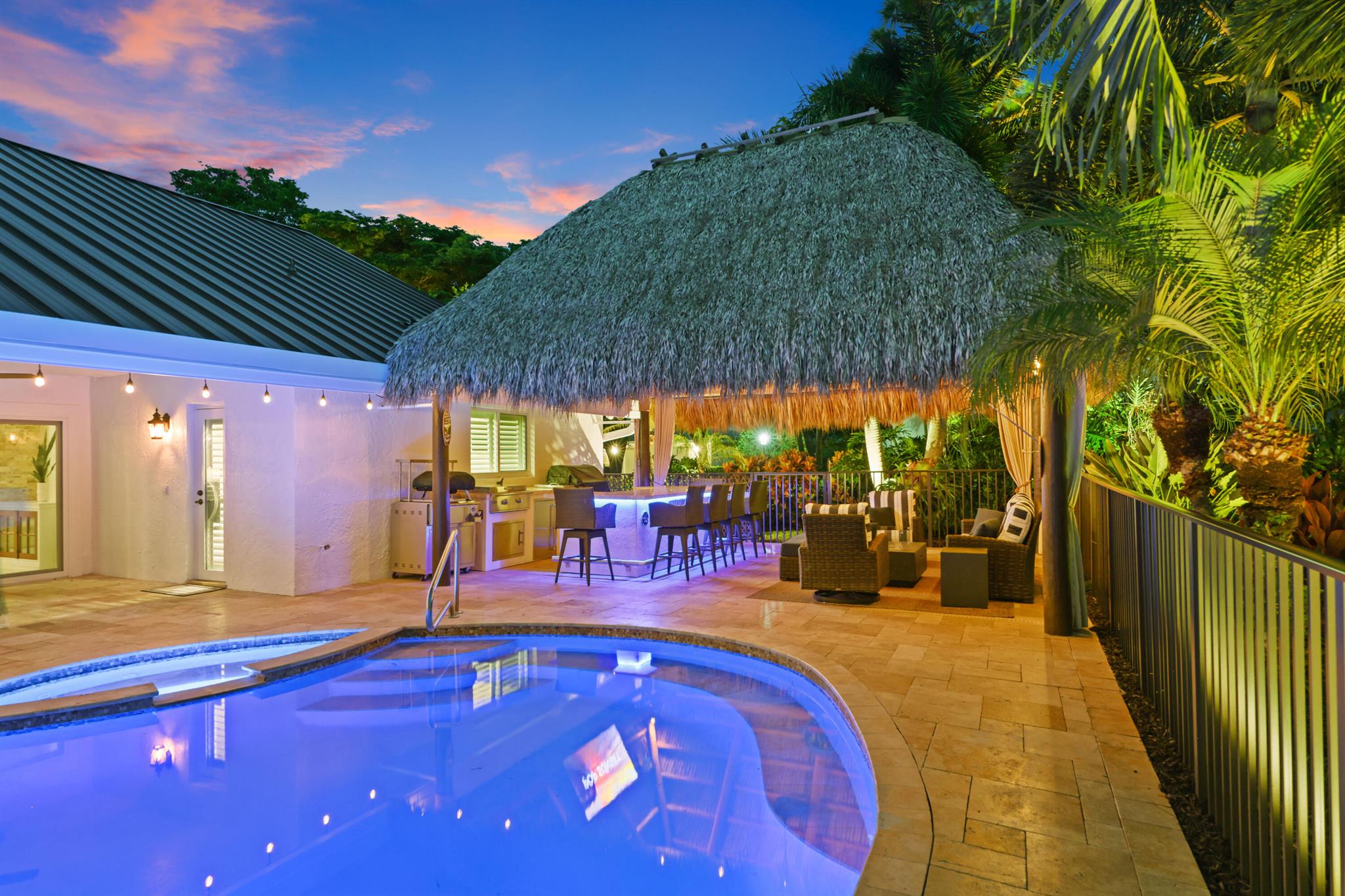 One of a kind! Nestled on a private cul-de-sac in the desirable Millpond community, this home truly checks all the boxes. Set on an oversized lot, it offers resort-style living and the ultimate Florida lifestyle. Featuring 4 bedrooms, 3.5 bathrooms, and a 2-car oversized garage, the home boasts a brand-new 2025 metal roof, impact windows and doors, and freshly painted interior and exterior.No expense has been spared, from lush landscaping with custom lighting to an upgraded circular travertine driveway and an outdoor living area designed for entertaining. The tiki hut includes a full Paradise grill bar, pizza oven, outdoor TV, Sonos system, and furniture, all conveying with the sale. In addition, the heated saltwater pool shines with 2023 Diamond Brite finish, new turf area,