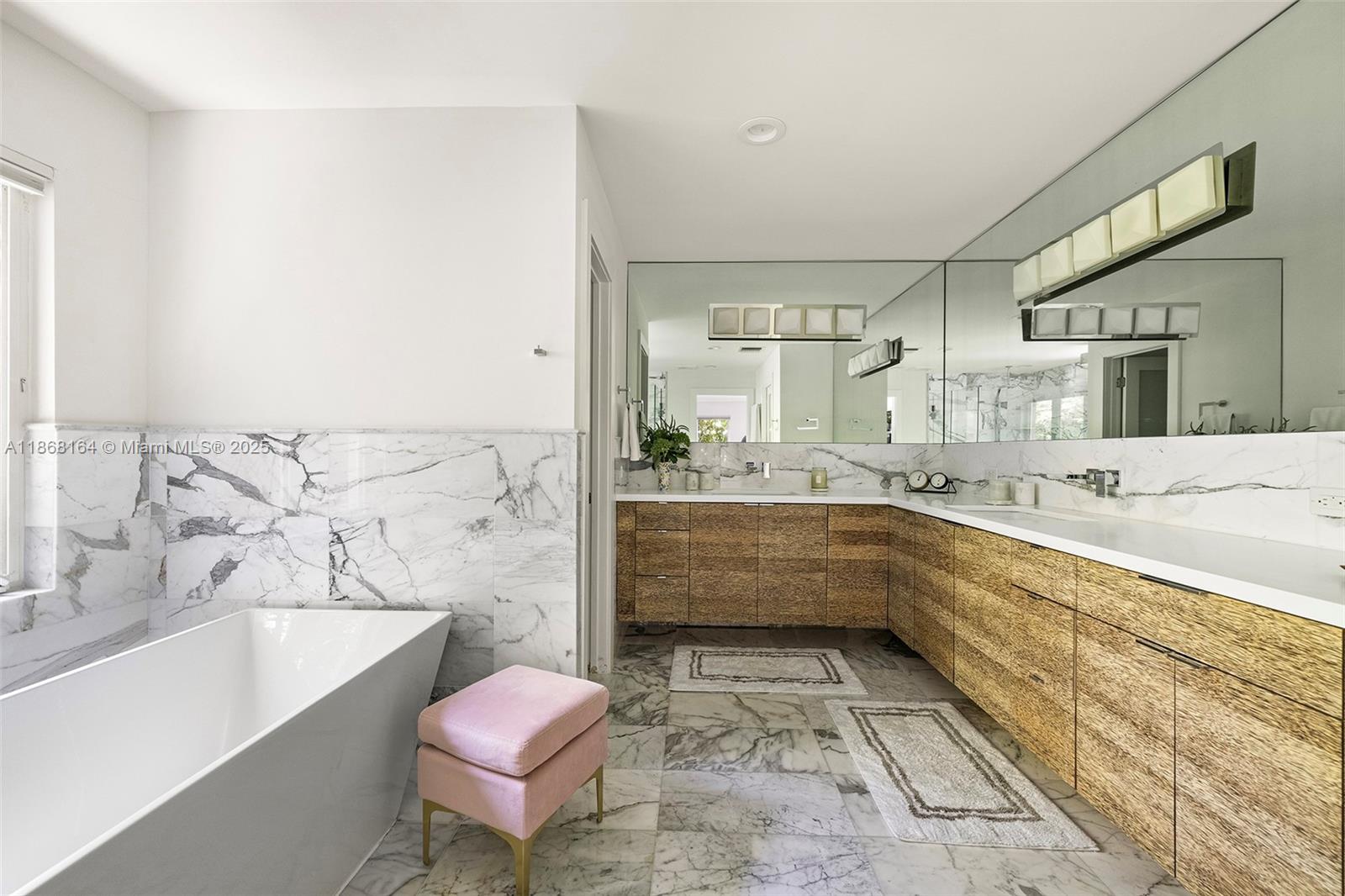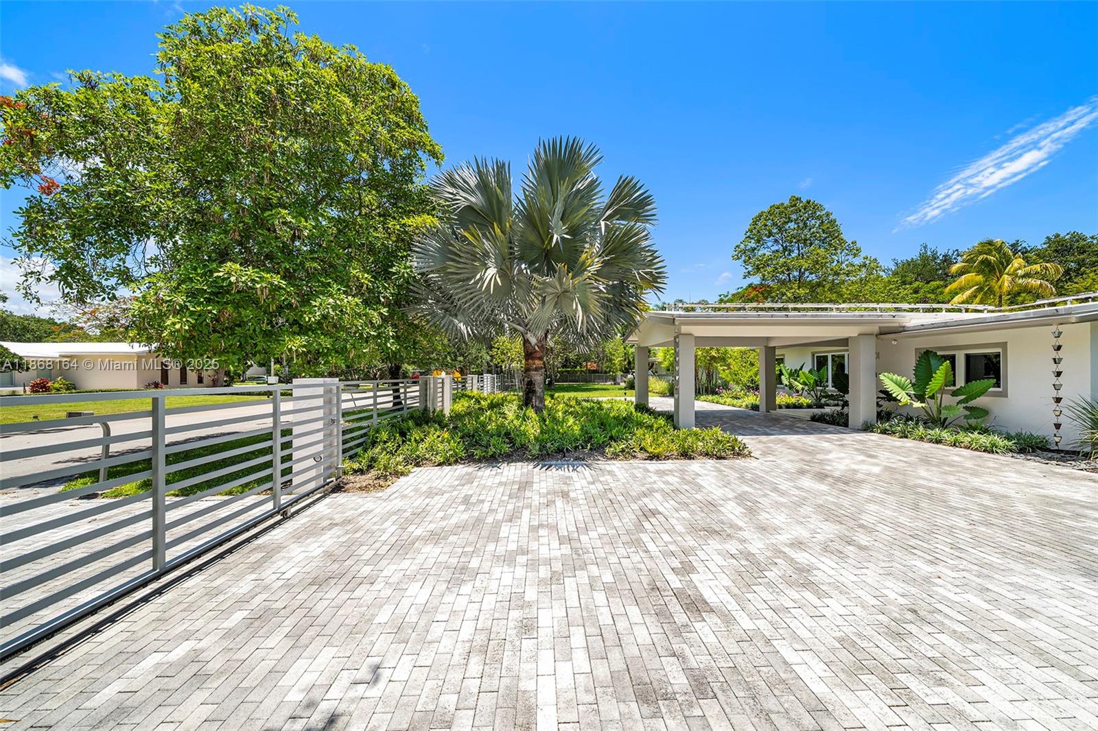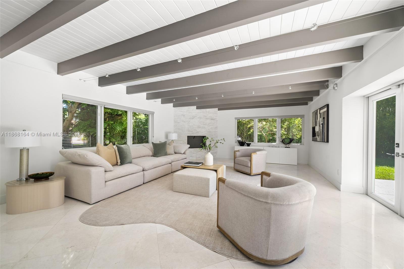 Positioned on a 34,000 SF corner lot in North Pinecrest, 11001 SW 64th Ave is a one-story 4,600 SF single-family home with 5 beds and 4 baths, currently configured as a 4-bed. The home features ceilings up to 10.5 ft, impact windows/doors, gated entry, and a covered driveway. Defining features include a renovated kitchen with high-end appliances, two distinct dining areas, a massive great room and family room with a brick fireplace, renovated baths, a large playroom, laundry, and a two-car garage. The backyard is turnkey with a heated pool, summer kitchen, dining area, and generous outdoor living space. Upgrades include an ENERGY STAR-rated cool roof for reduced cooling bills, a 10.8 KW solar array with the option to double capacity, and a 120-gal on-demand solar hot water system.