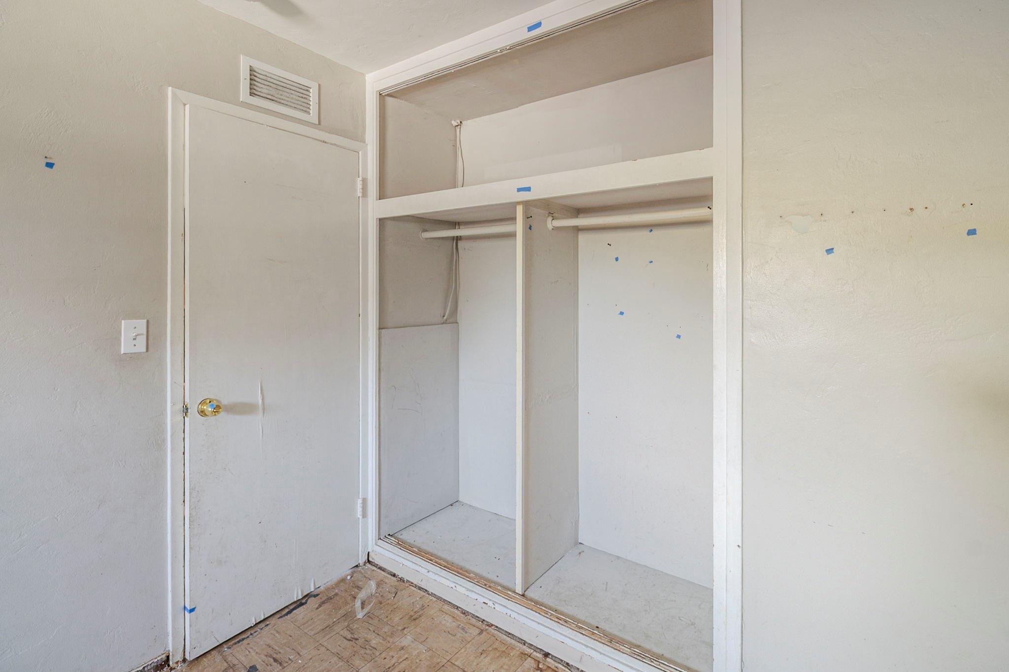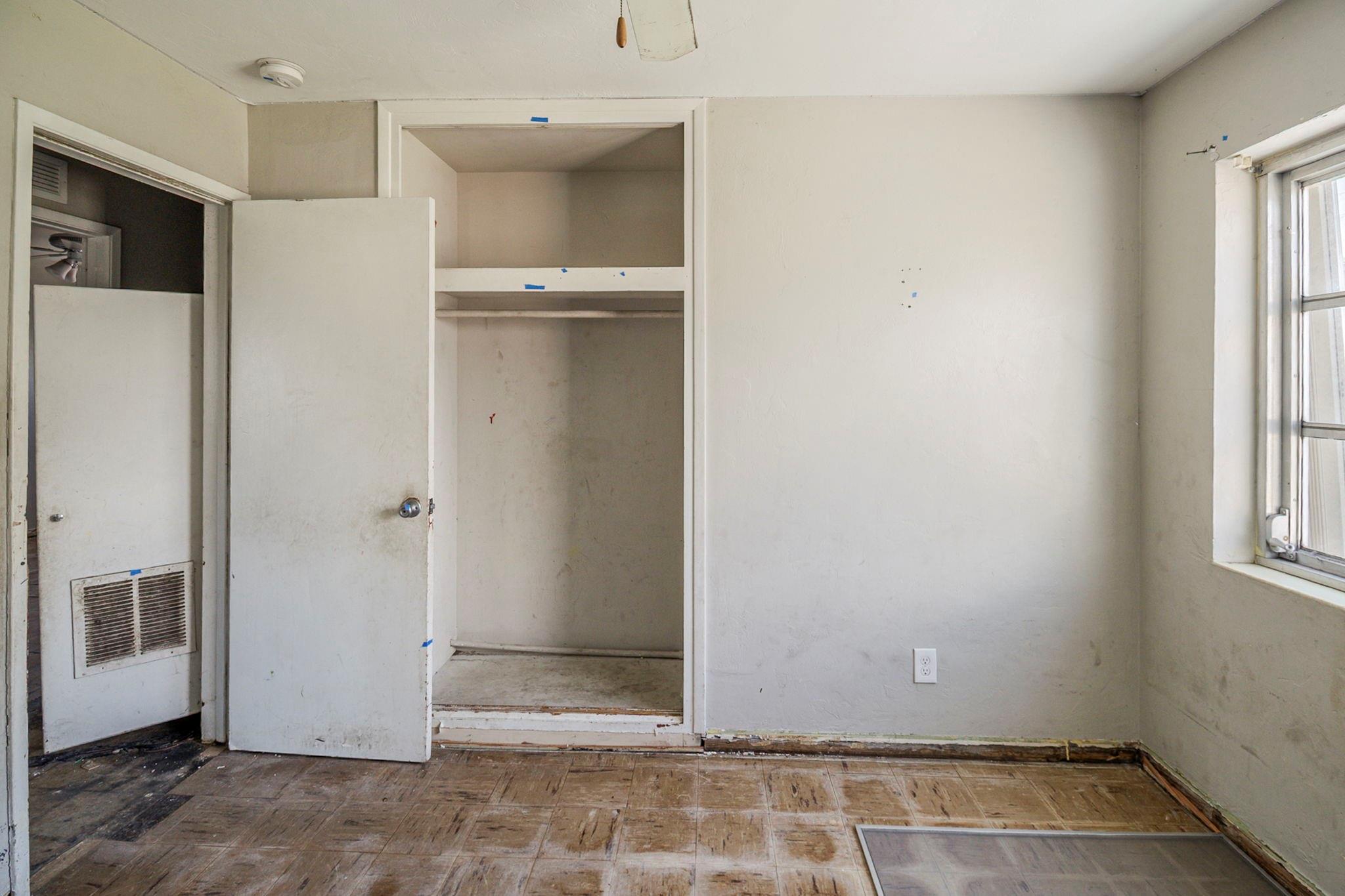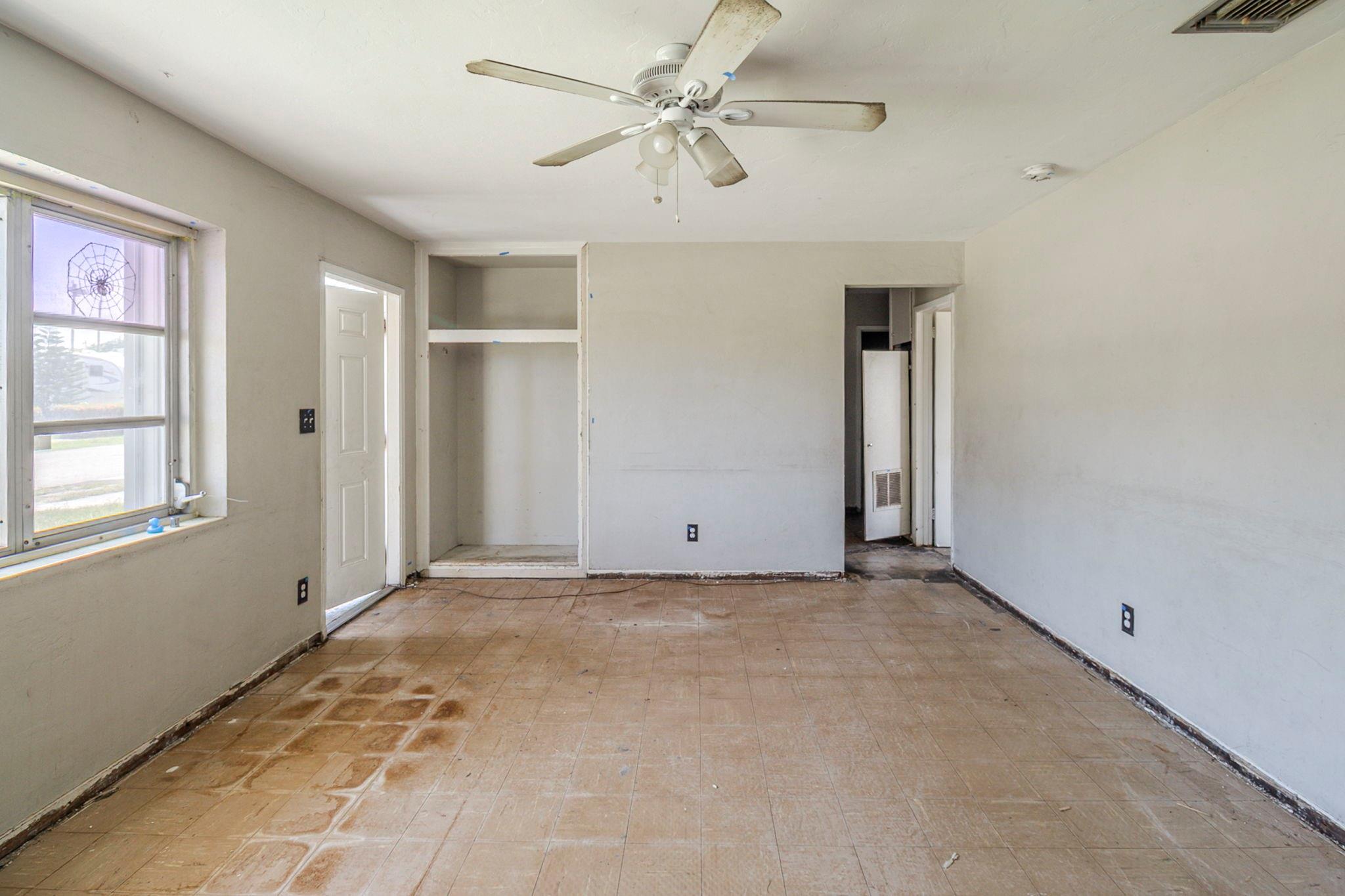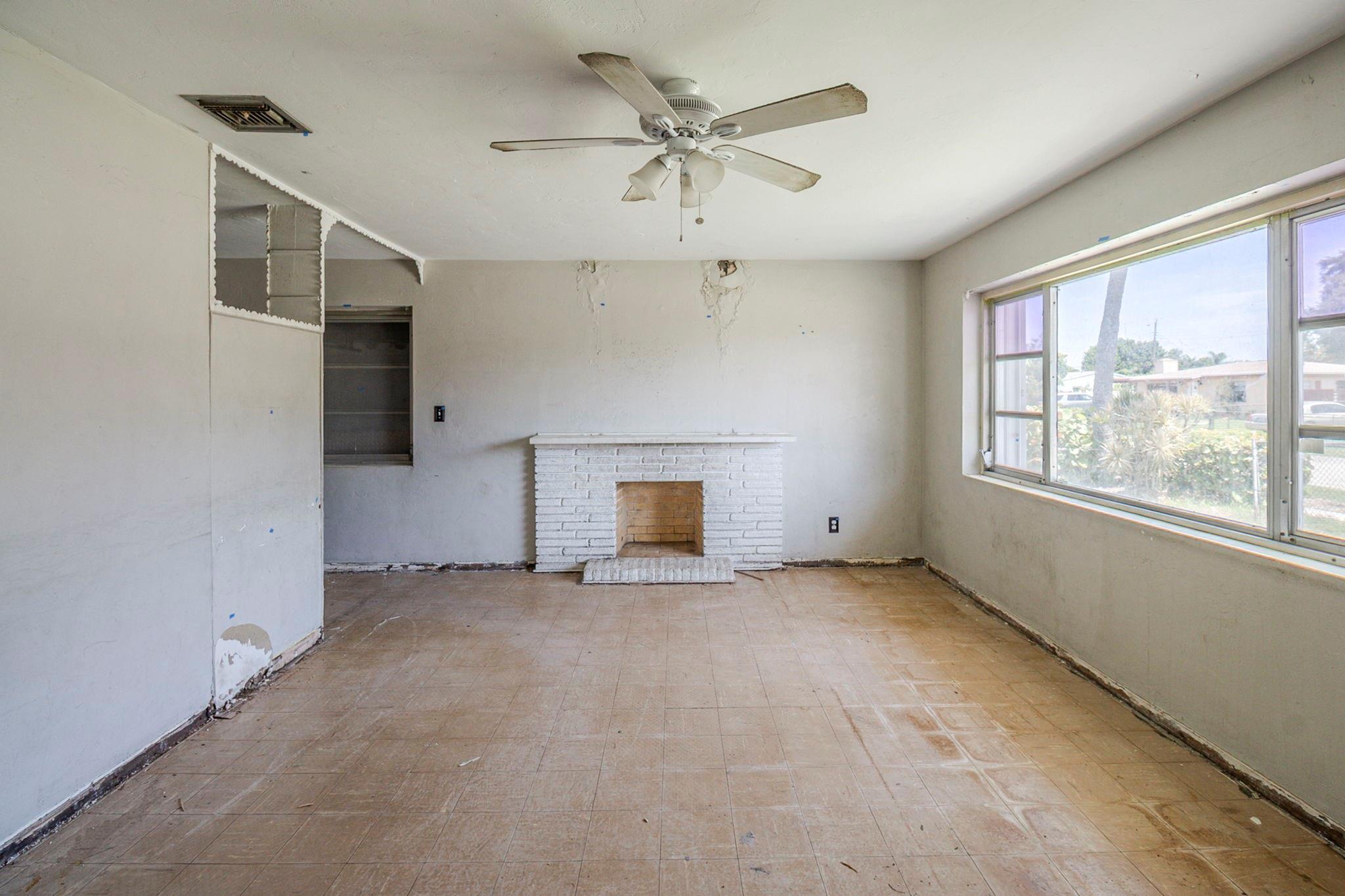This 1-story home offers 3 bedrooms and 1 bathroom with plenty of potential for the right buyer. Featuring a fireplace in the living room and fenced front and back yards, this property is ideal for those looking for a project. The home is in distressed condition and requires repairs, with appliances and cabinets missing, making it a great opportunity for renovation or investment. Schedule a showing today!