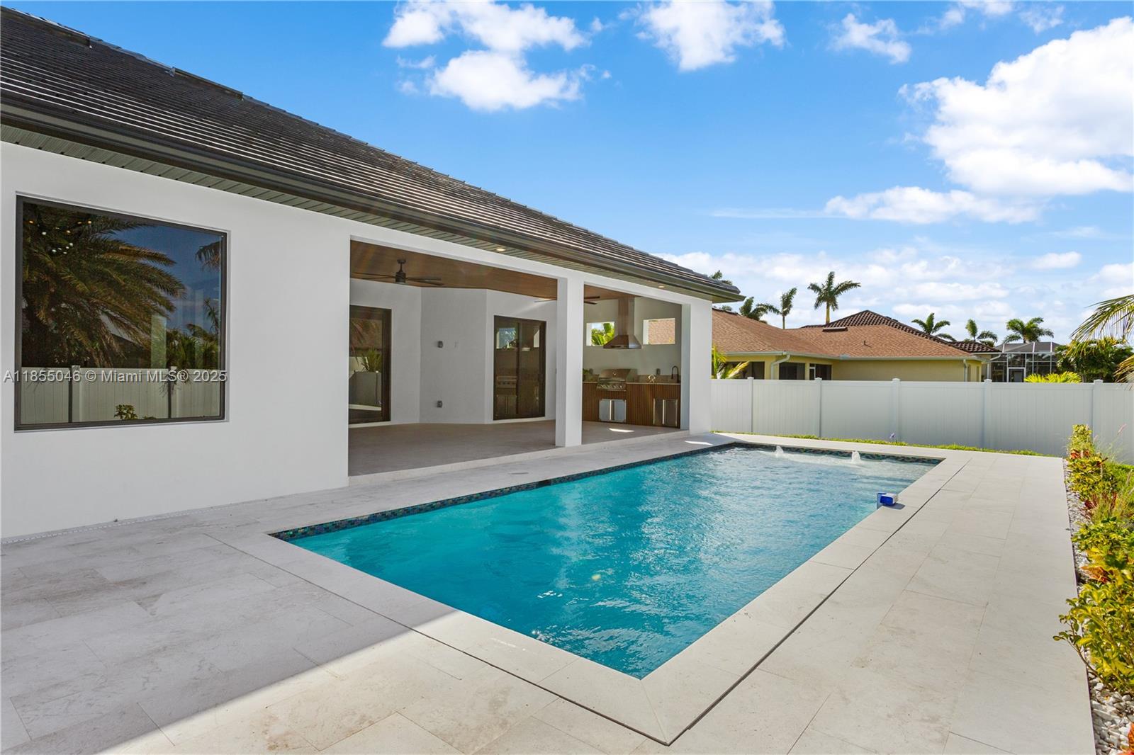 Fantastic opportunity to own this under-construction oasis—still time to choose your finishes for flooring, cabinetry, countertops, lighting, and more! Completion in 3–4 months with 1-year builder warranty. Prime location near the future Seven Islands Waterfront Community with marinas, dining, and resort-style amenities—an early investment opportunity with rising values! This 2,420 sq ft luxury home features 3 beds + den, 3.5 baths, soaring 16-ft ceilings, a chef’s kitchen with quartz counters, stainless appliances, and wine rack, plus an elegant master suite with spa-like bath. Outdoor living shines with pool, lanai, and full summer kitchen. Additional highlights: 3-car garage, privacy fence, Samsung smart laundry, and open floor plan designed for entertaining.