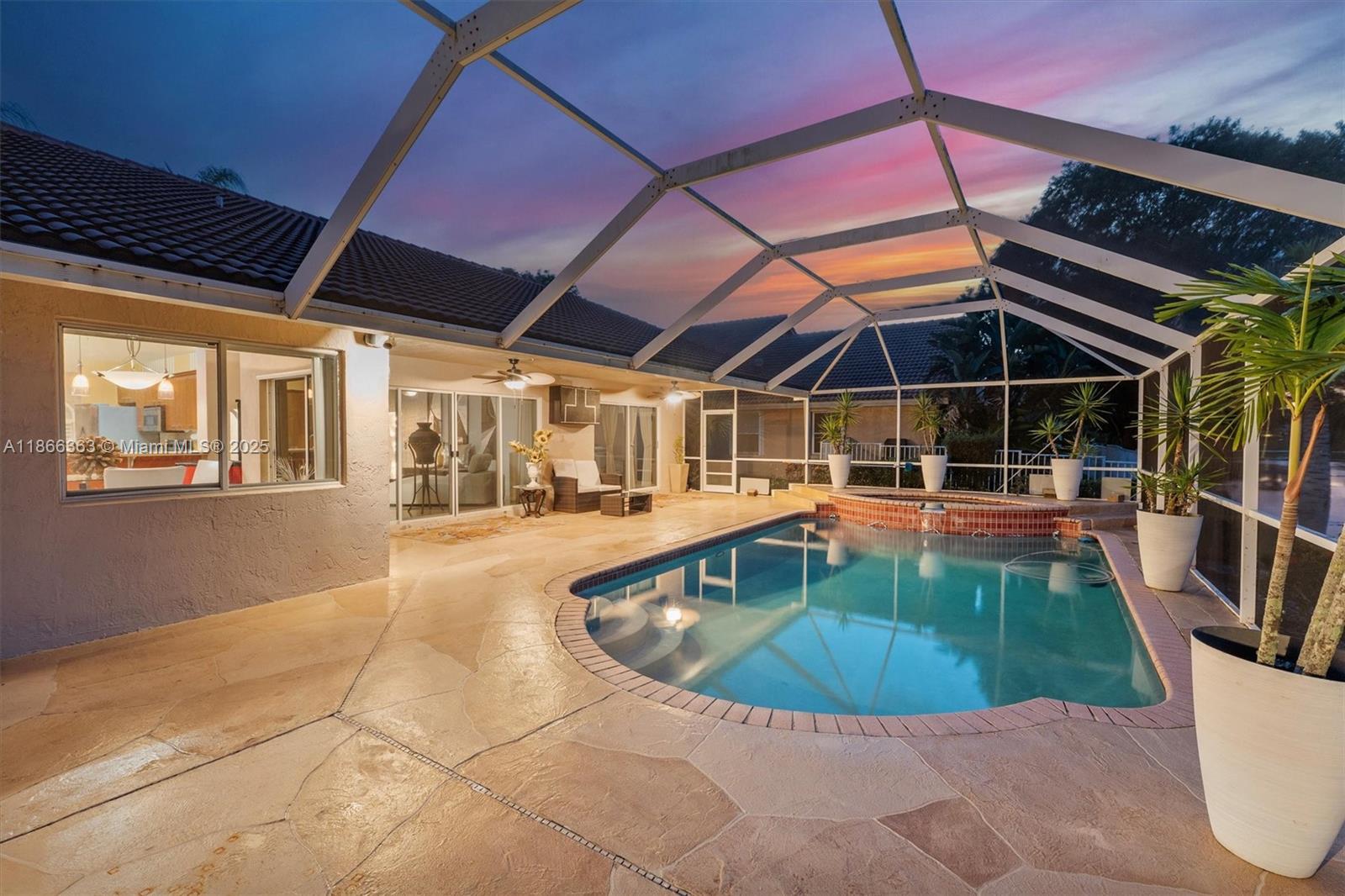 Beautiful 4-Bed, 2 Full & 2 Half Bath single-story home in gated Carriage Pointe Estate. Set on a large corner waterfront lot with lush landscaping, this residence offers an open layout with formal dining, living & family rooms. Gourmet kitchen features granite counters & stainless steel appliances. Light-filled interiors boast porcelain floors, laminate in bedrooms, custom closets, and upgraded baths. Primary suite includes a sitting area, dual sinks, Roman tub & shower. Screened, heated pool with covered patio, built-in BBQ bar & lake views. New A/C 2023, roof 5 yrs, water heater 2024. Large laundry & 2-car garage. Close to Sawgrass, schools, dining & parks. Mortgage savings may be available for buyers of this listing.