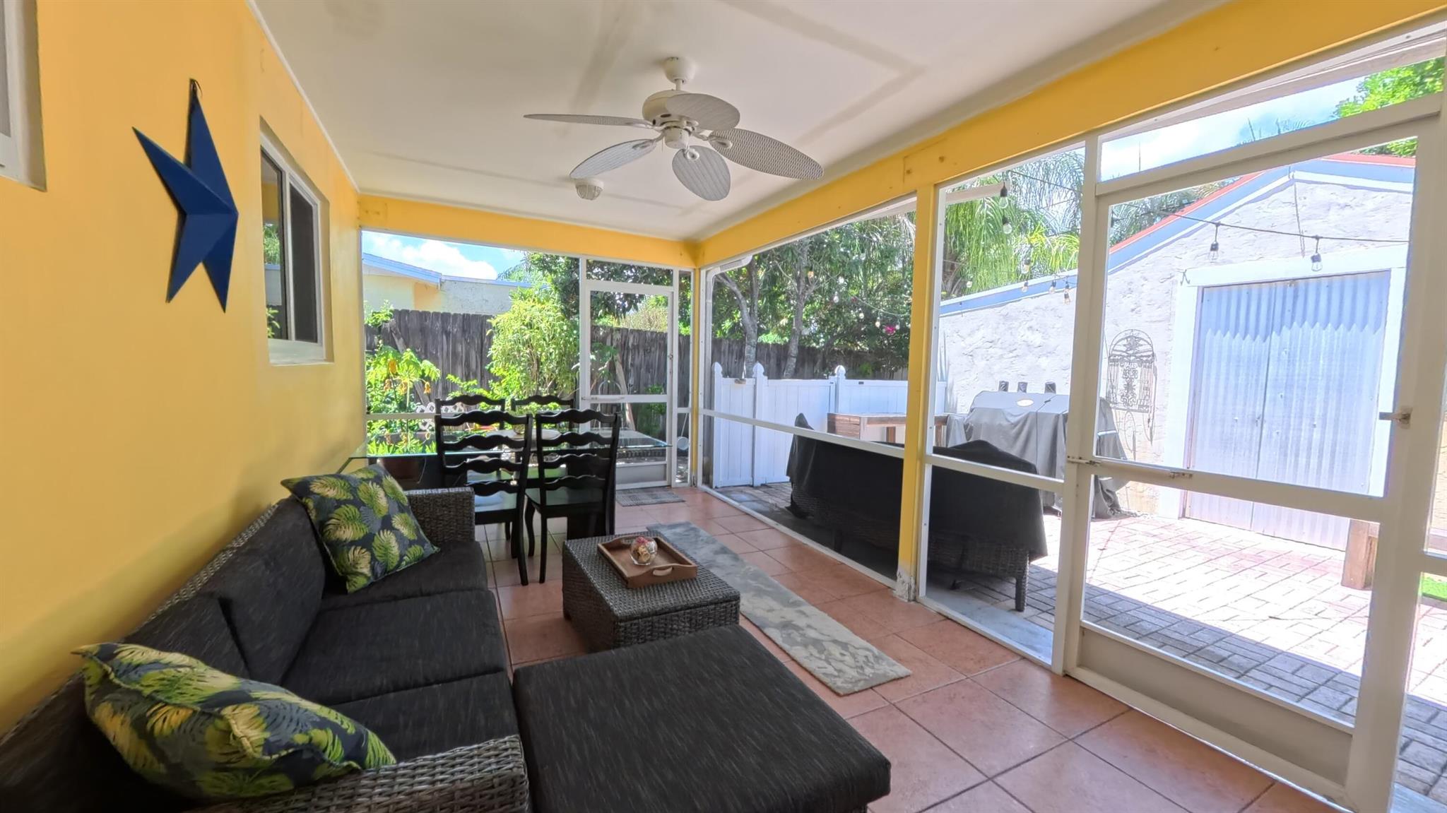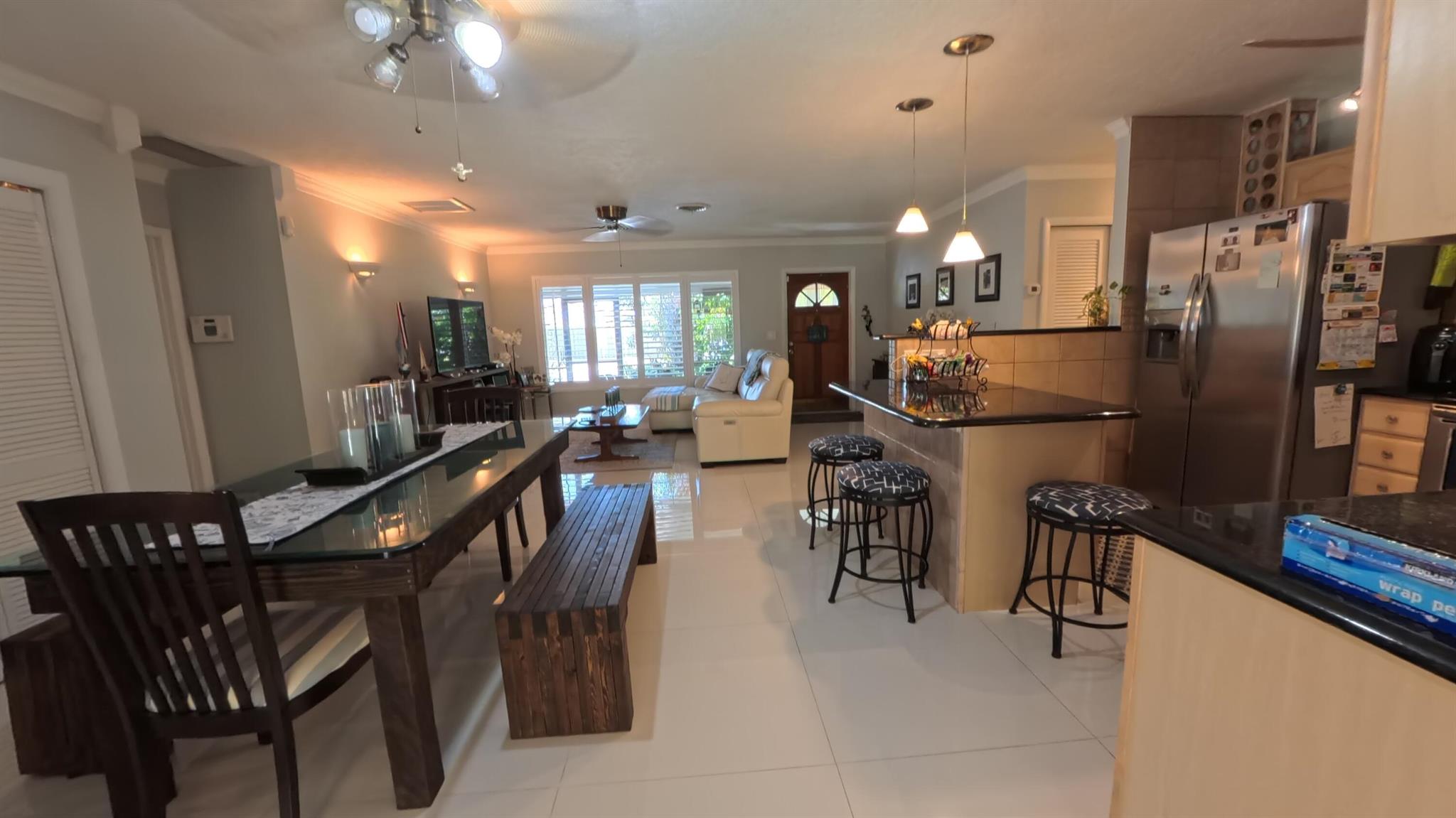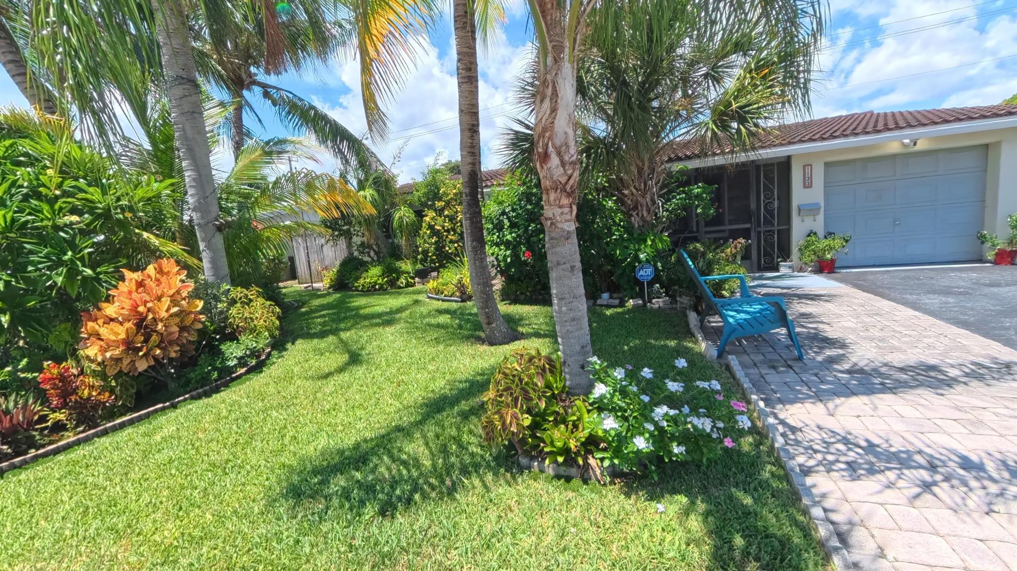Great Single Family pool home with excellent location under 10 minutes to the beach and no HOA fees or restrictions. Tastefully redone kitchen with Cambria Quartz, SS Appliances & white Shaker cabinets, updated baths, gleaming terrazzo floors and an open flowing layout that makes entertaining a joy! Owner has removed the popcorn ceilings, and added distressed wood accents, plantation shutters and converted the garage to a large bonus room that could be an office. Large family room can be easily converted to a third bedroom but Owner made as their fitness space. New flat roof 2019, new A/C w HALO air purification 2020, tankless water heater 2020; whole house water purification, keyless entry and hurricane rated shed. Come enjoy this great Swimming pool with a tiki bar to bring friends over