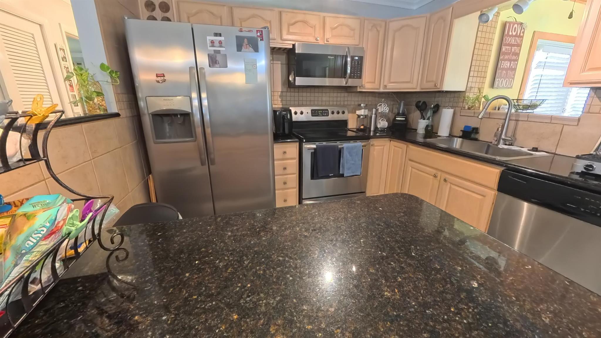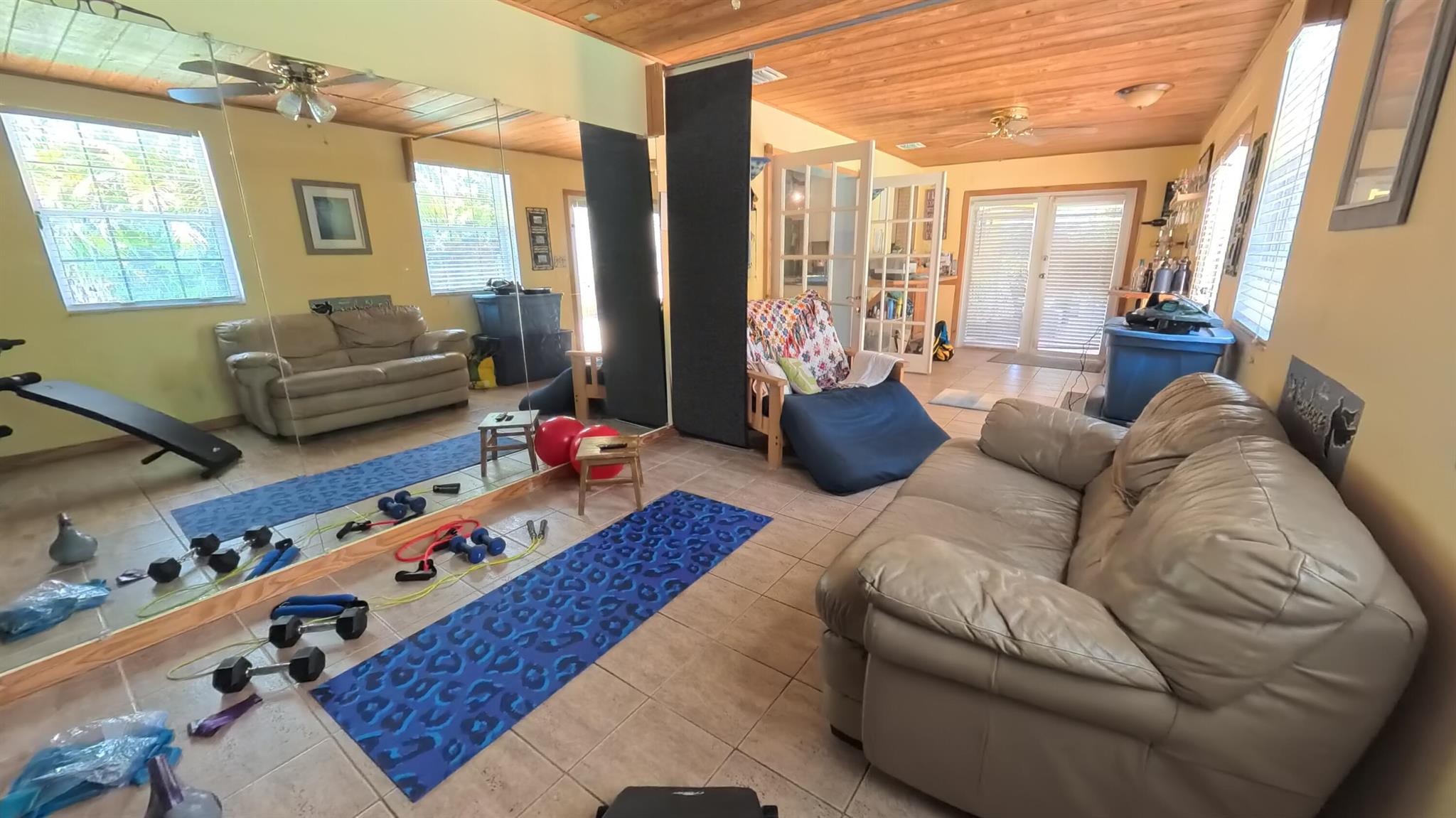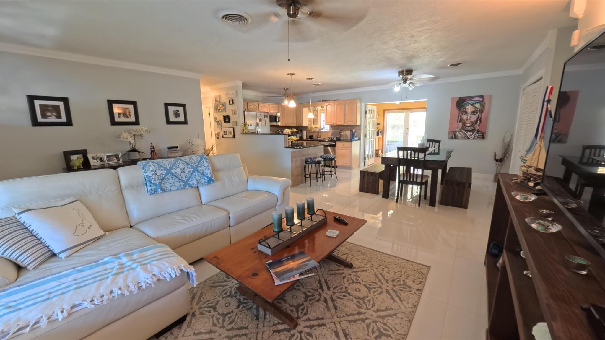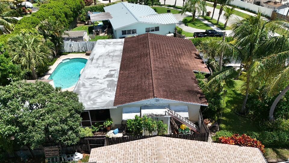 Great Single Family pool home with excellent location under 10 minutes to the beach and no HOA fees or restrictions. Tastefully redone kitchen with Cambria Quartz, SS Appliances & white Shaker cabinets, updated baths, gleaming terrazzo floors and an open flowing layout that makes entertaining a joy! Owner has removed the popcorn ceilings, and added distressed wood accents, plantation shutters and converted the garage to a large bonus room that could be an office. Large family room can be easily converted to a third bedroom but Owner made as their fitness space. New flat roof 2019, new A/C w HALO air purification 2020, tankless water heater 2020; whole house water purification, keyless entry and hurricane rated shed. Come enjoy this great Swimming pool with a tiki bar to bring friends over