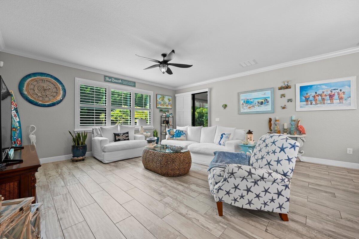Discover coastal luxury in this partially furnished 2-bedroom, 2-bathroom home with a den--designed with comfort and elegance at every corner. The den offers versatility and can easily be converted into a 3rd bedroom, as seen in other homes within the community.Step inside and enjoy the open floor plan, upscale finishes, and a thoughtfully designed interior that blends style with function. The primary suite features a large walk-in closet and dual vanity, while the home's coastal-inspired decor creates a true move-in-ready retreat.Highlights include an enclosed patio perfect for entertaining, abundant storage, and a 2-car garage. Built with energy-efficient features and hurricane protection, this home combines peace of mind with luxury living.